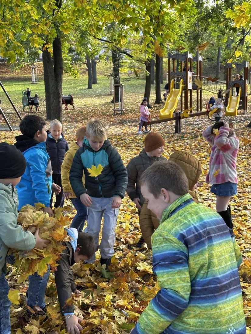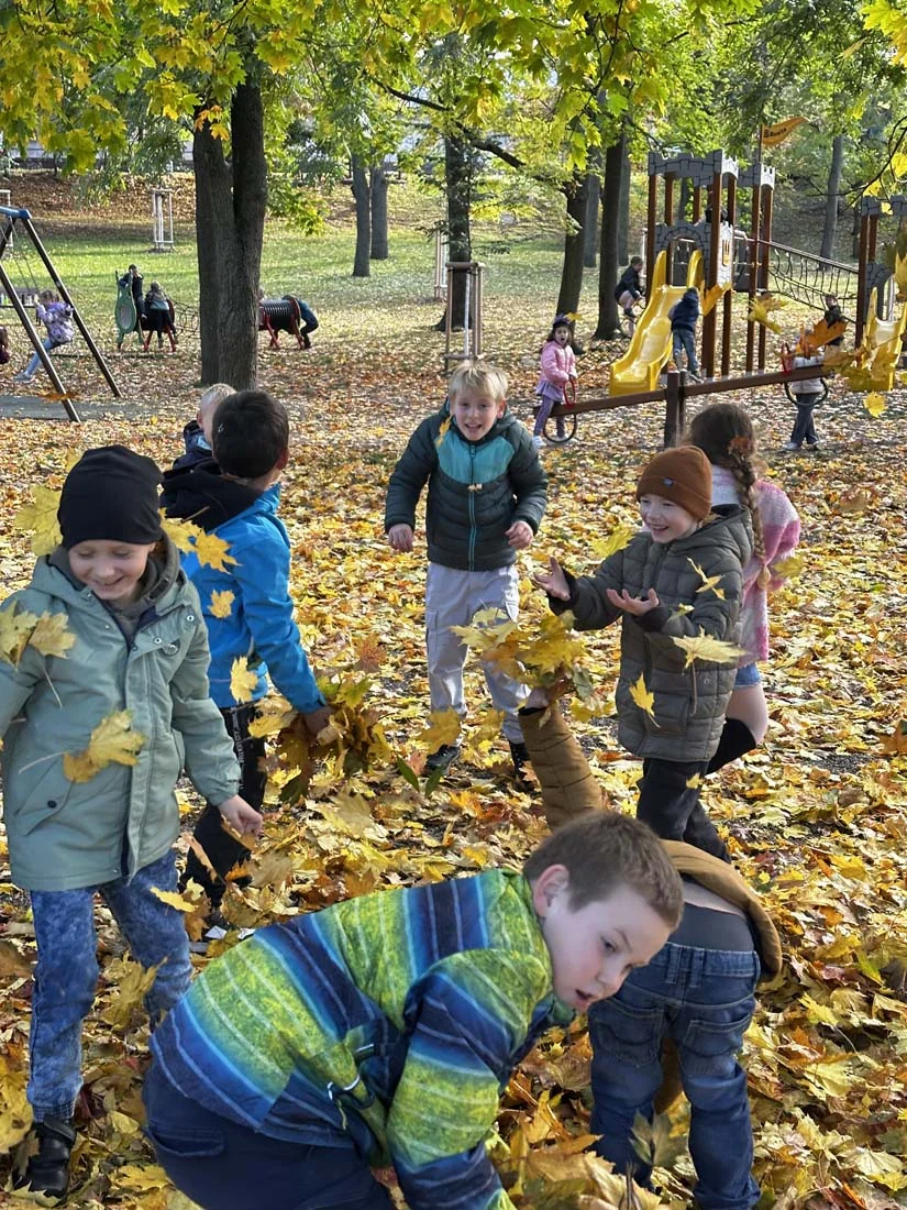 V říjnu jsme si užívali barev a plodů podzimu. Tvoření, hry s přírodninami a dovádění venku……