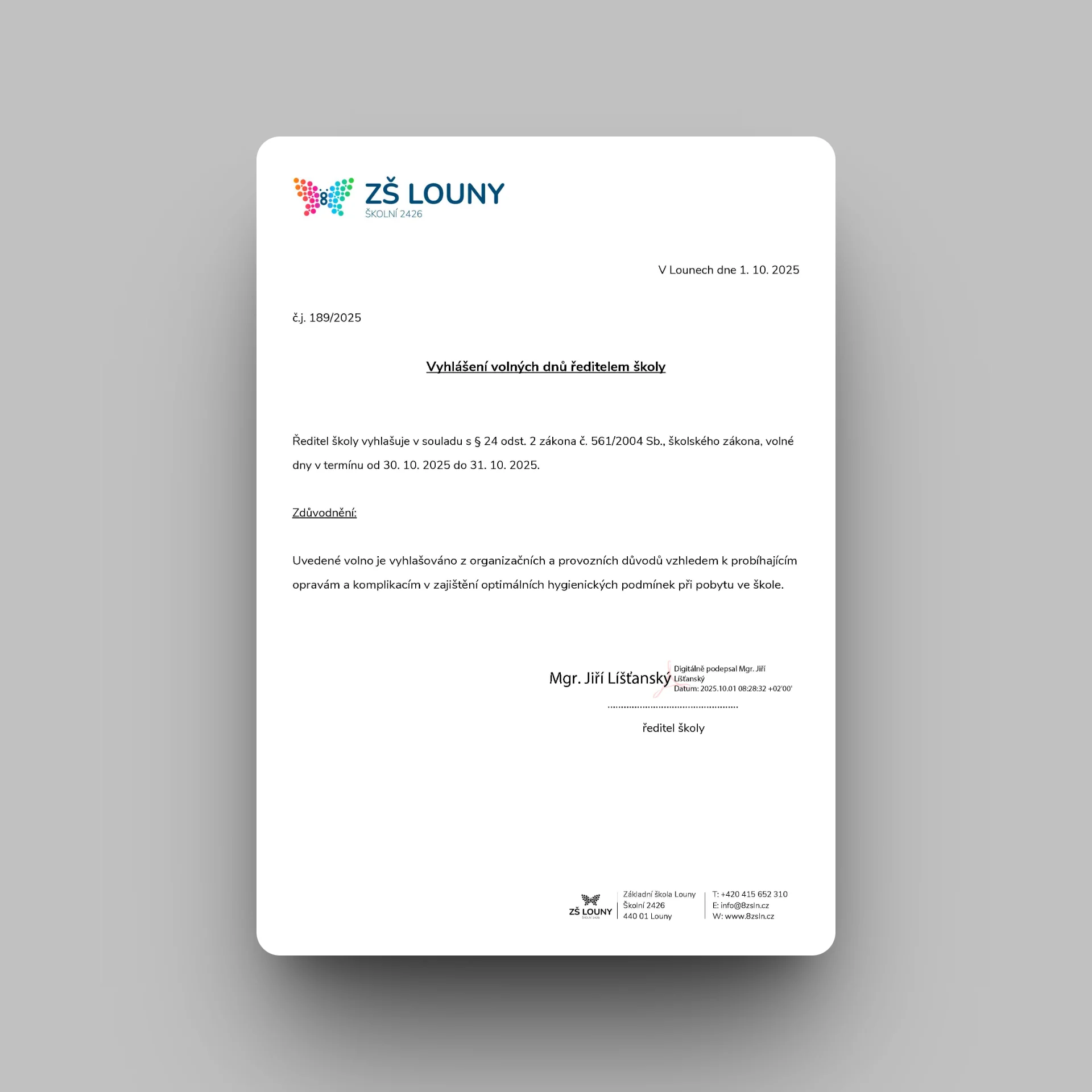 Uvedené volno je vyhlašováno z organizačních a provozních důvodů vzhledem k probíhajícím