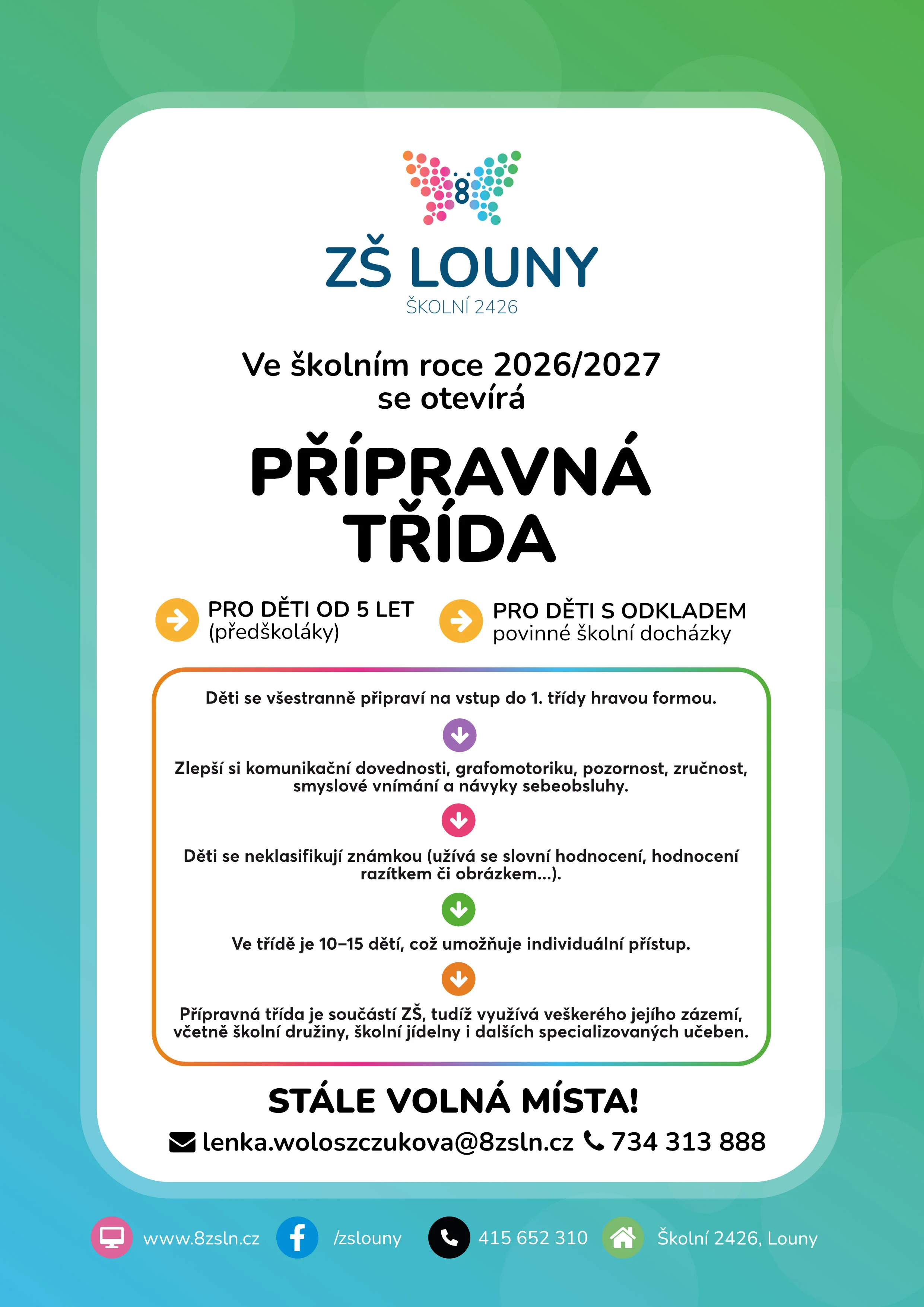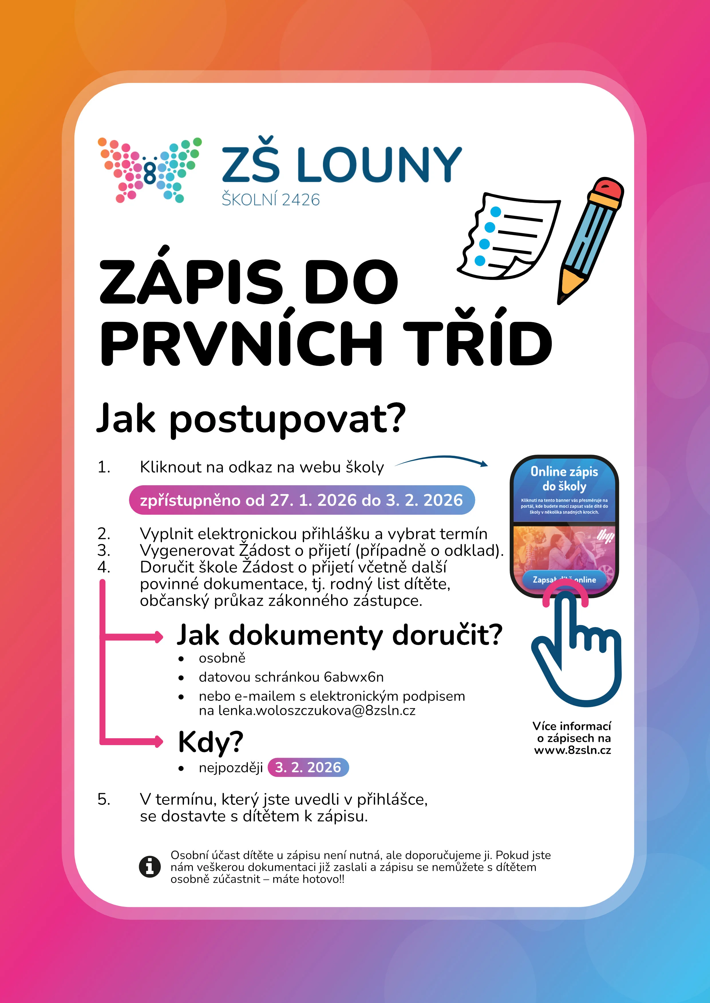Termín prezenčního zápisu: Úterý 3. 2. 2026 od 14:00 do 18:00 hodin