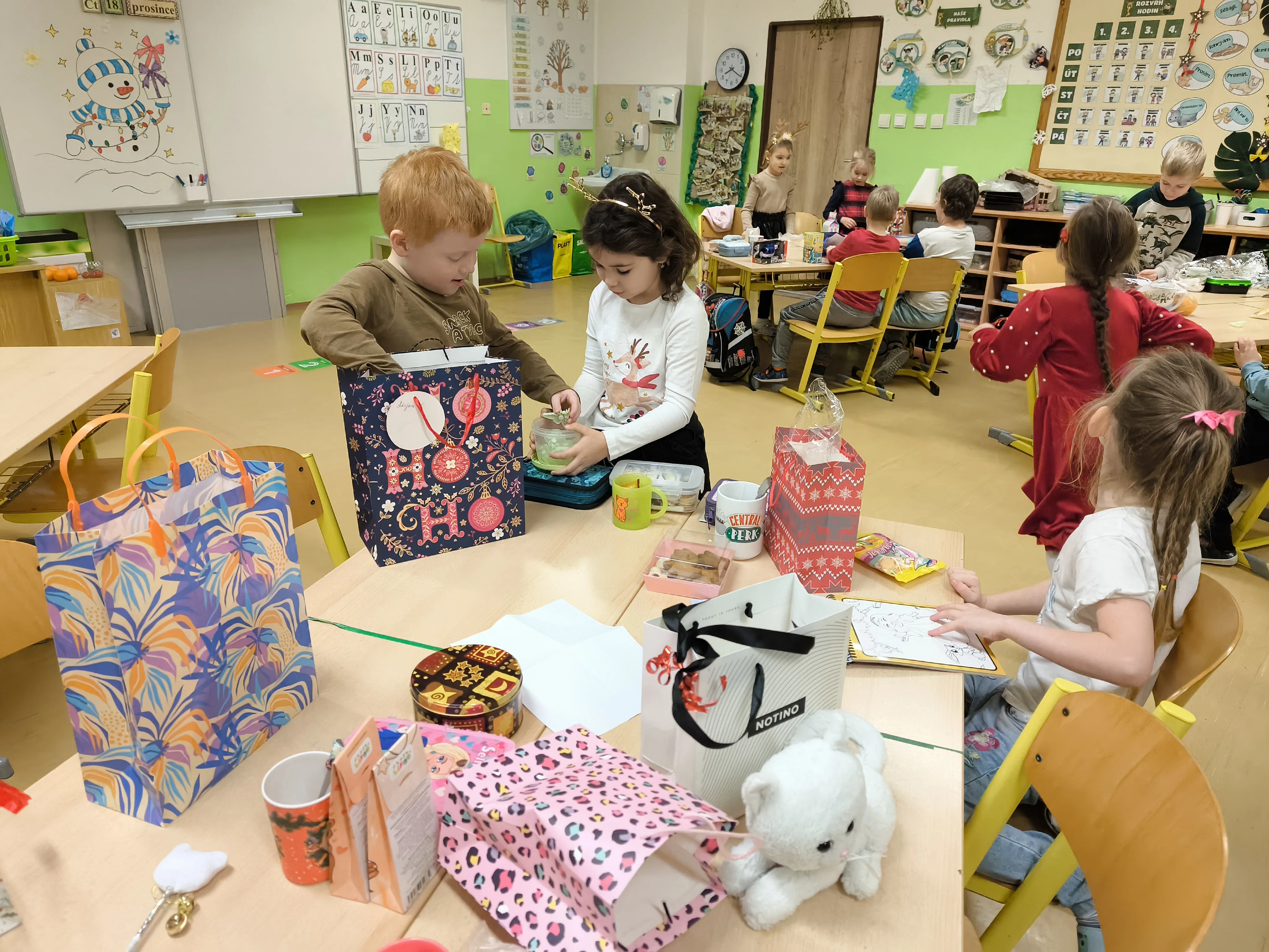 Poslední den ve škole před vánočními prázdninami se nesl v příjemné a slavnostní atmosféře. Povídali jsme si o Vánocích, vánočních zvycích a tradicích, společně jsme vybarvili poslední okénka adventního kalendáře a nechybělo ani předávání malých dárečků, které dětem vykouzlily úsměv na tváři. S radostí jsme se věnovali také výrobě vánočních přáníček, do nichž děti vložily svou fantazii i srdečná přání.