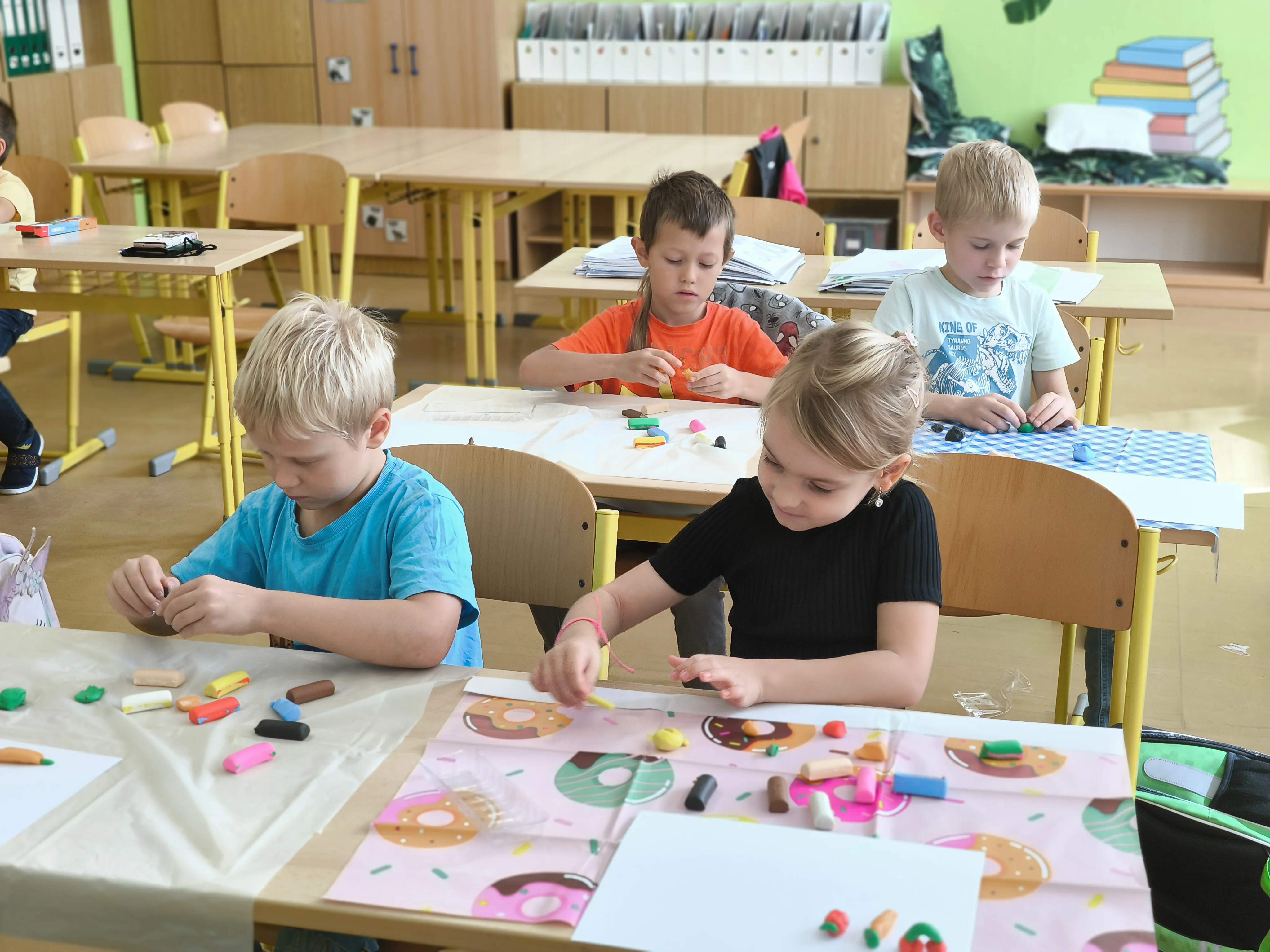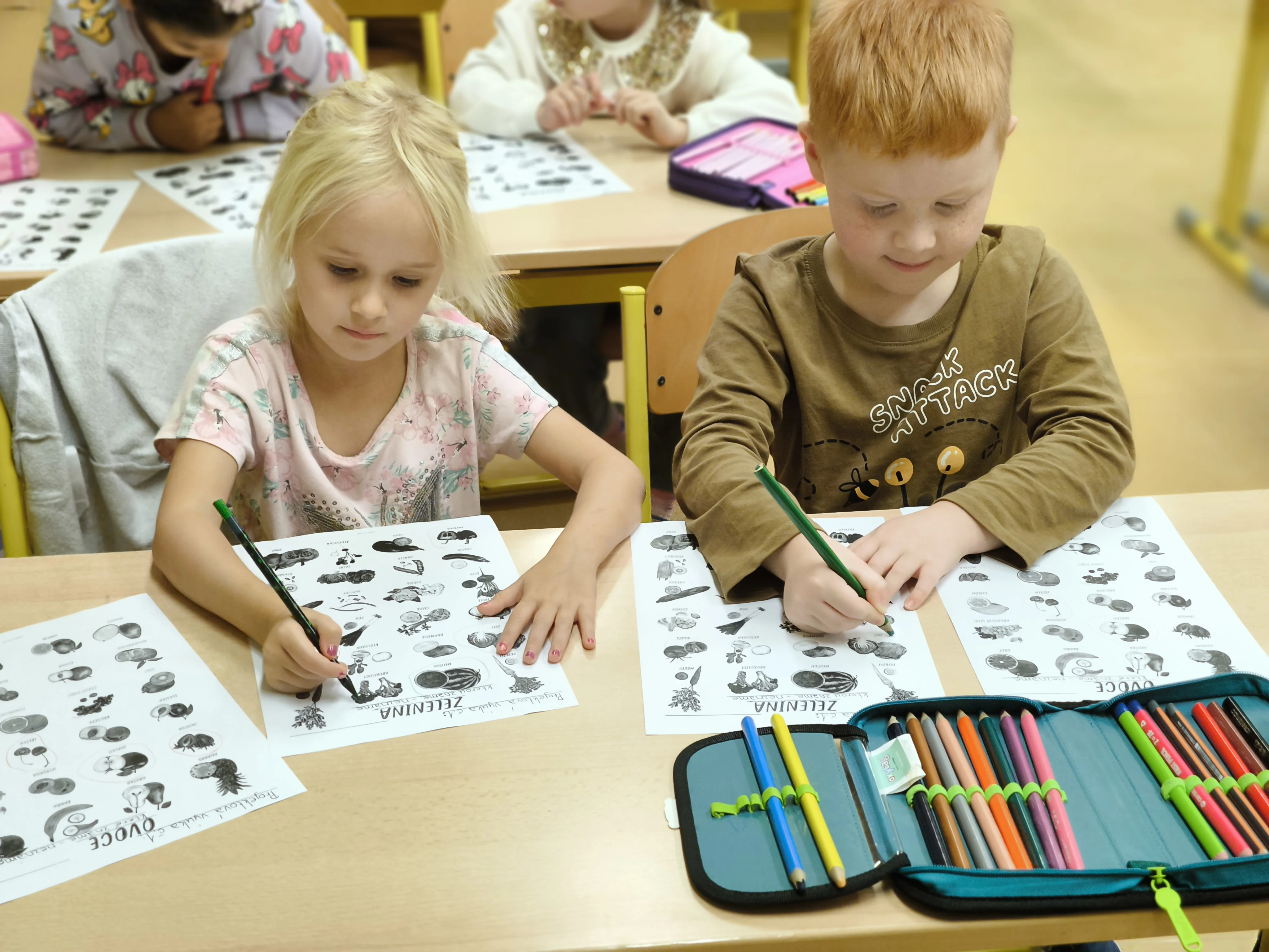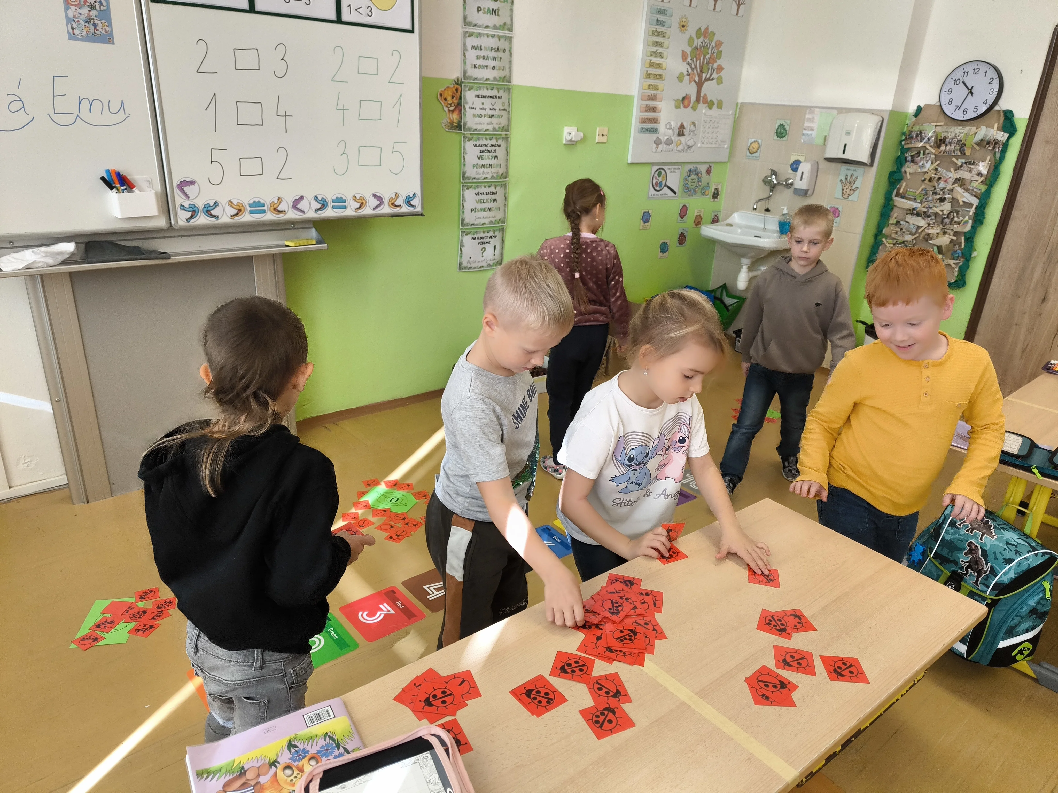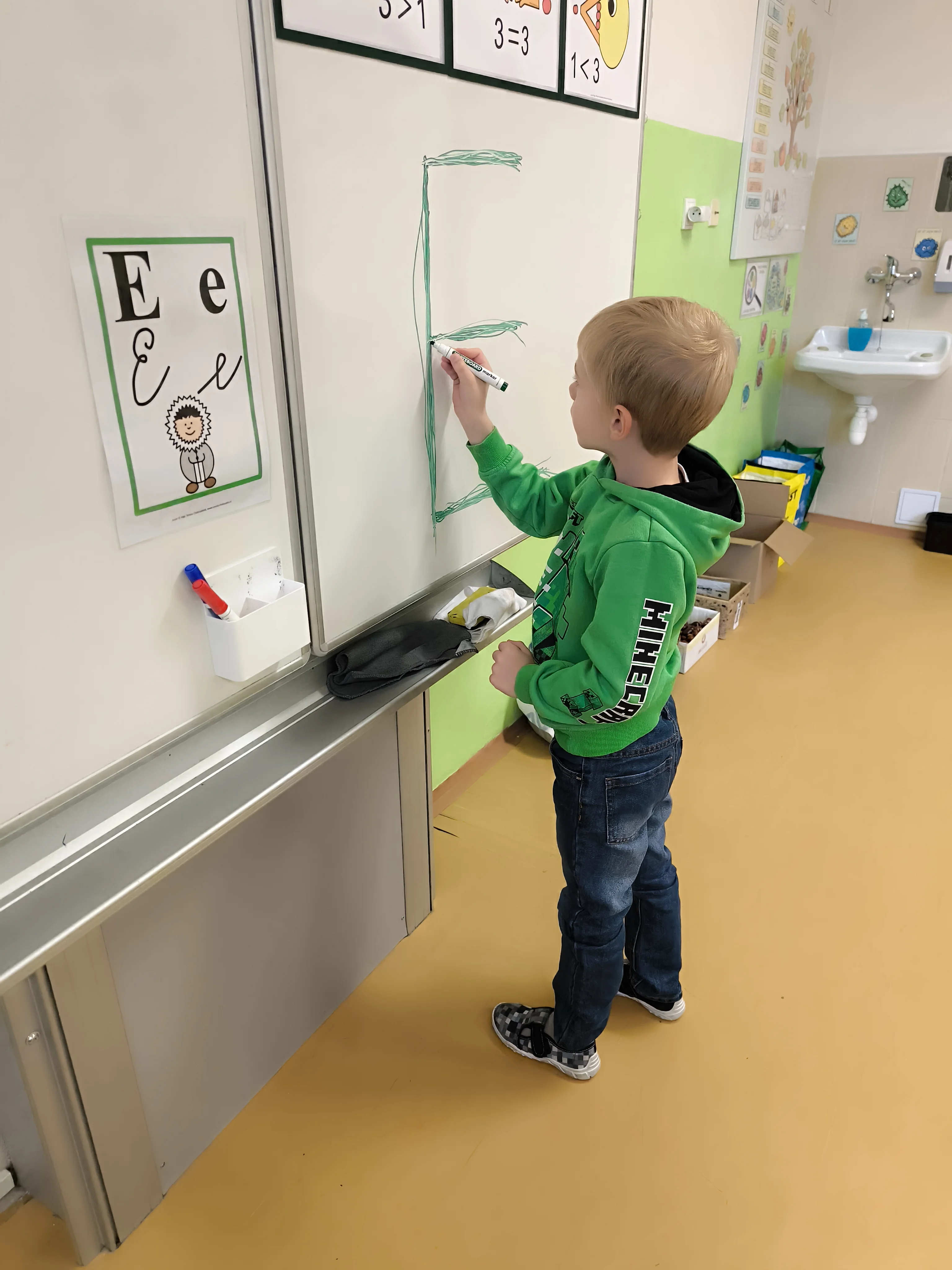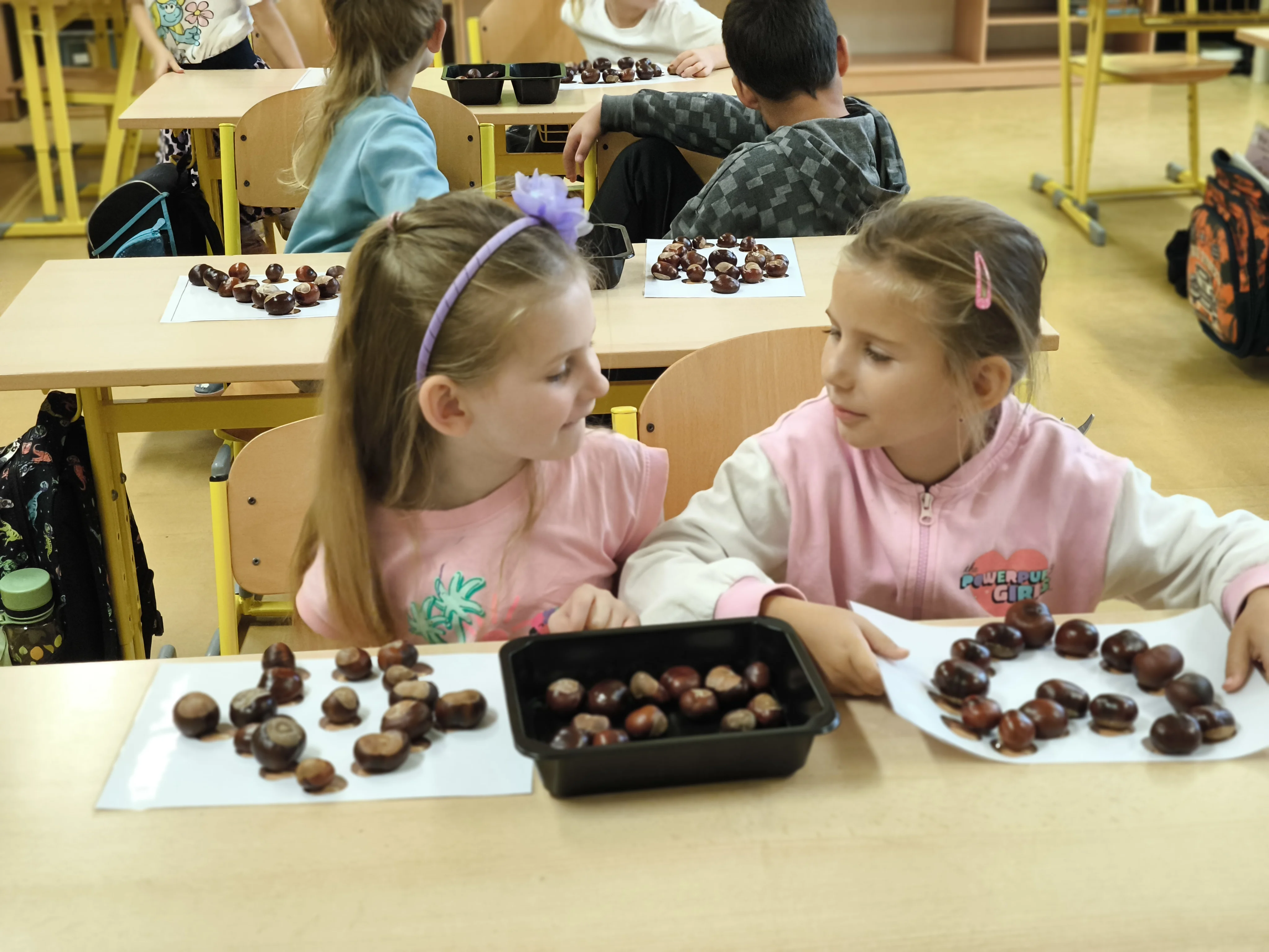 Naši prvňáčci prožili své první školní týdny plné nových zážitků, kamarádů a objevování. V září jsme se seznámili se školou i třídou, učili jsme se pravidlům, spolupráci a společně s maskotem Hrošíkem Hugem objevovali, jak to ve škole chodí. V matematice trénujeme počítání do pěti, porovnávání a orientaci v prostoru. V českém jazyce rozvíjíme sluchové vnímání, poznáváme první písmena a číslice a učíme se správně psát. Říjen prožíváme v podzimní náladě a už se ve škole cítíme jako doma.