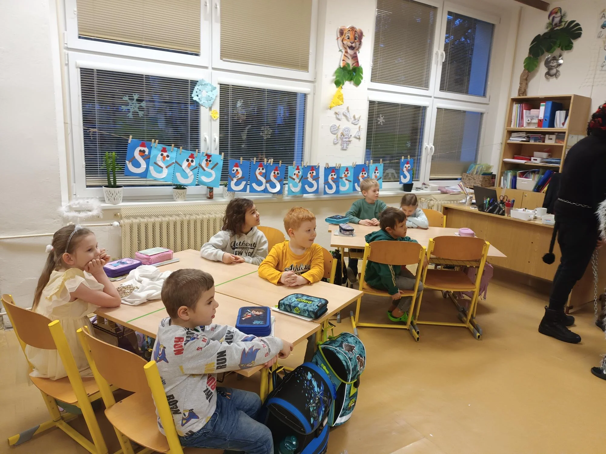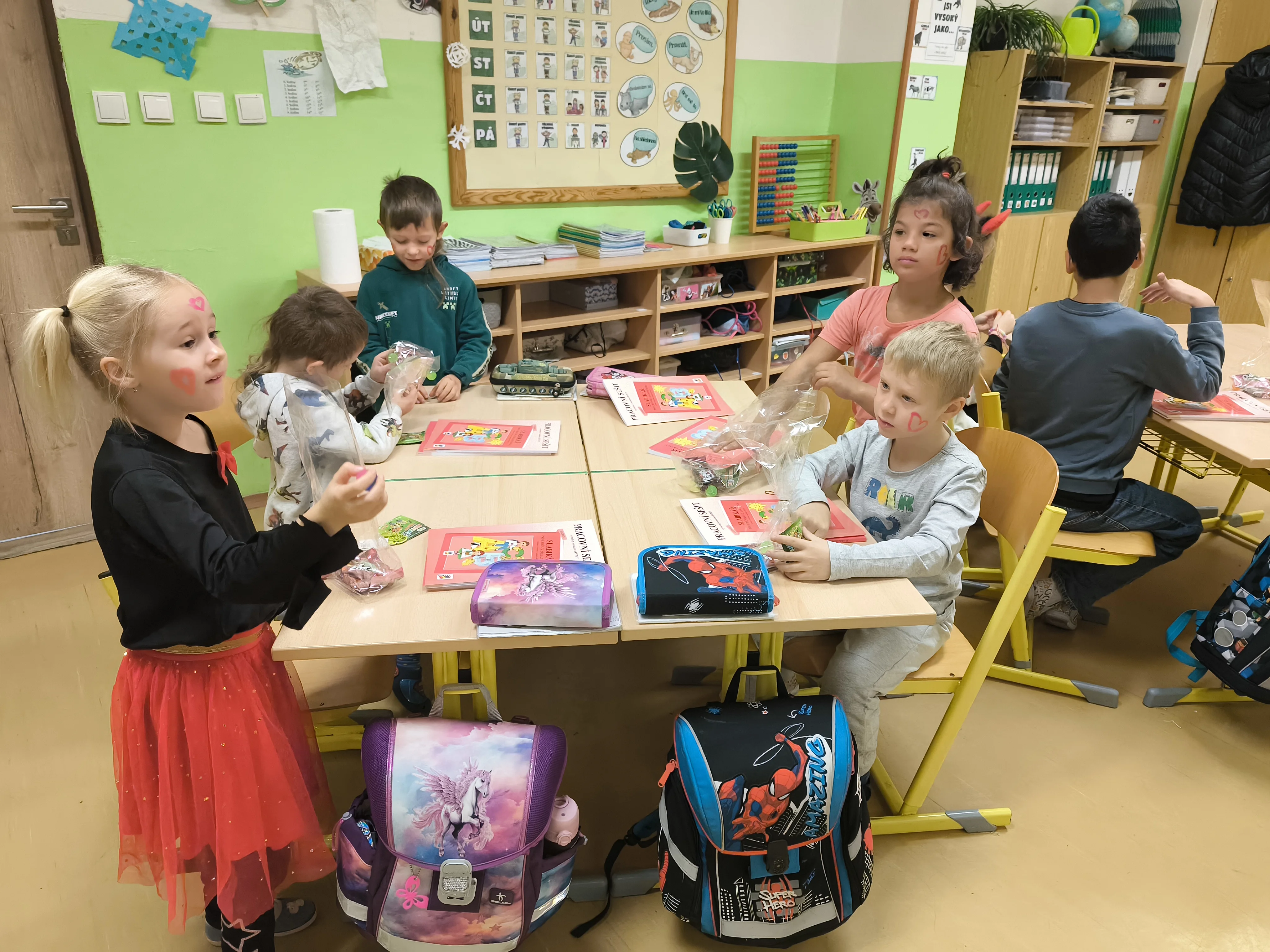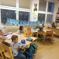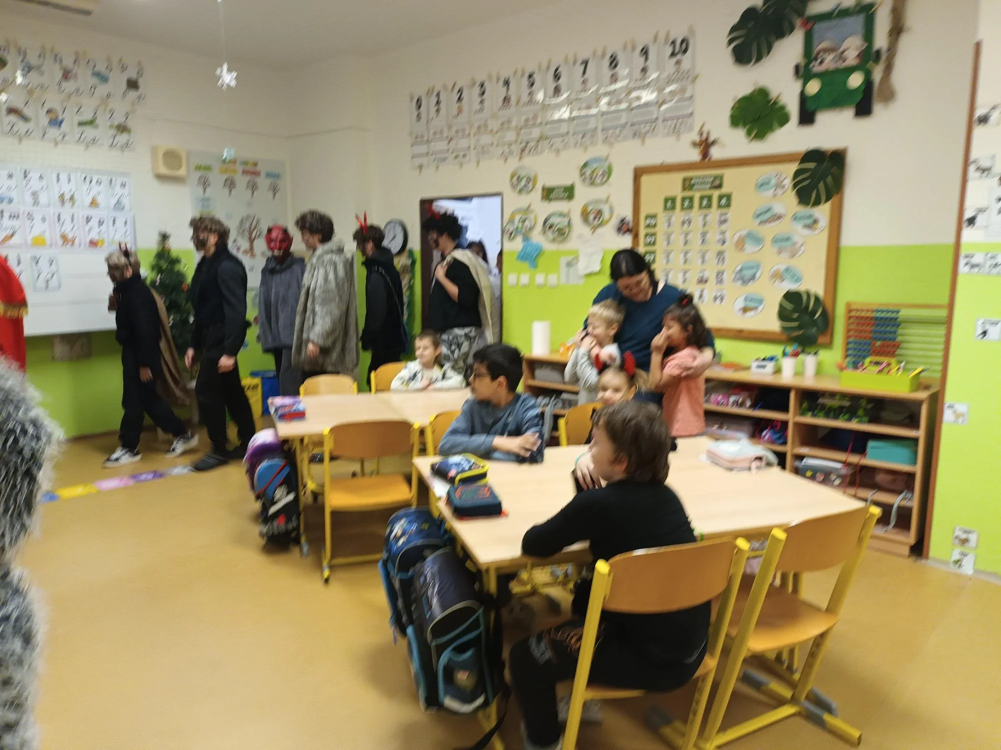 Návštěva Mikuláše vytvořila ve třídě kouzelnou atmosféru, plnou smíchu, očekávání a radosti. Děkujeme celé mikulášské družině za krásný zážitek – a dětem přejeme, ať jim nové slabikáře přinesou spoustu čtenářských úspěchů!