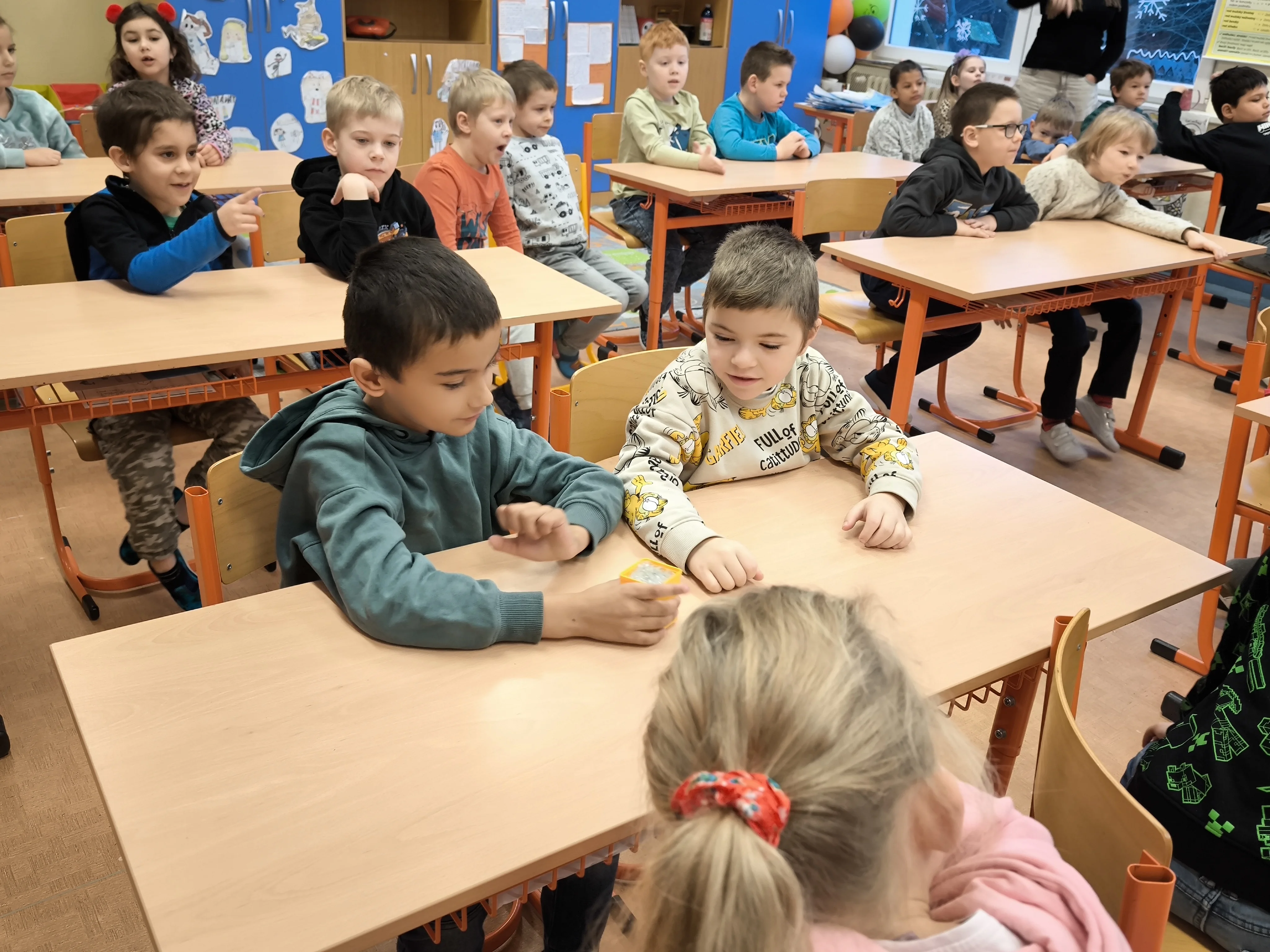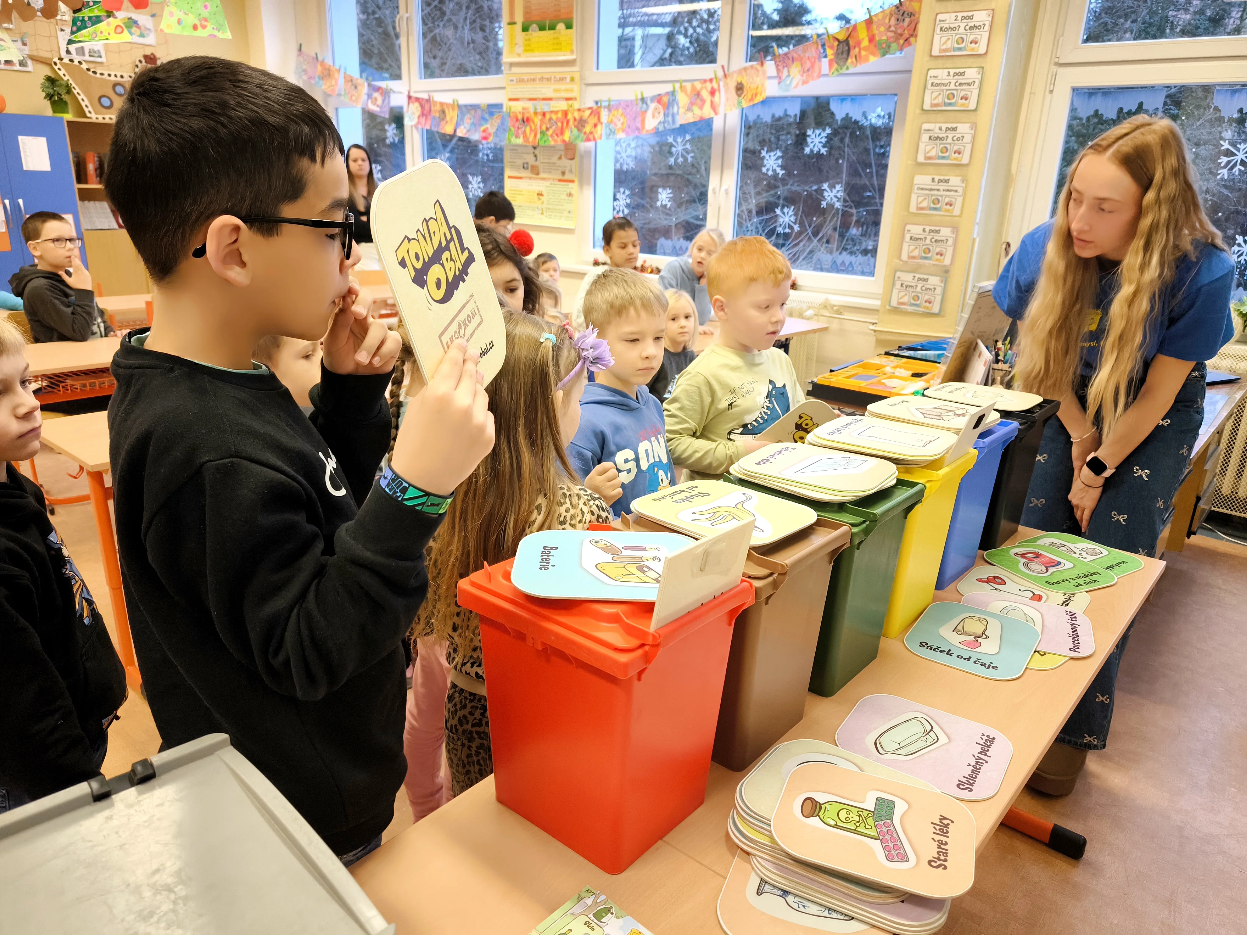 Žáci prvních tříd se v rámci výuky setkali s programem Tonda Obal, který je seznámil se zásadami správného nakládání s odpady. Prostřednictvím názorných ukázek a praktických činností děti poznávaly, jak rozlišovat jednotlivé druhy obalů.
