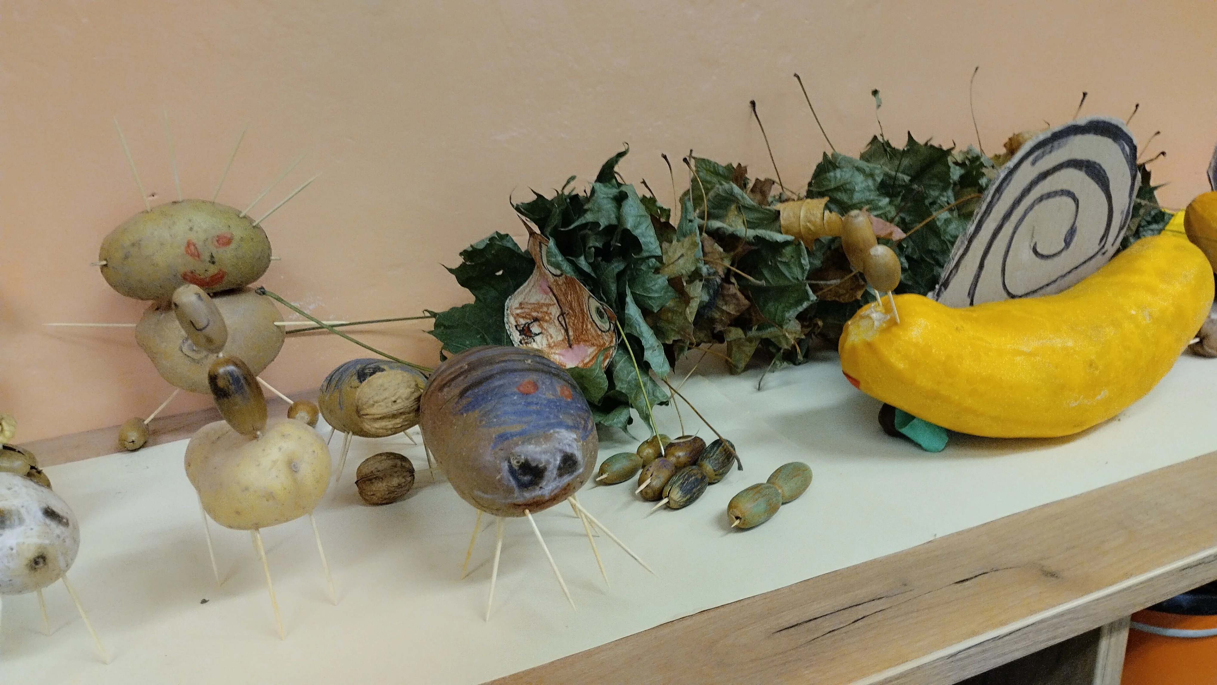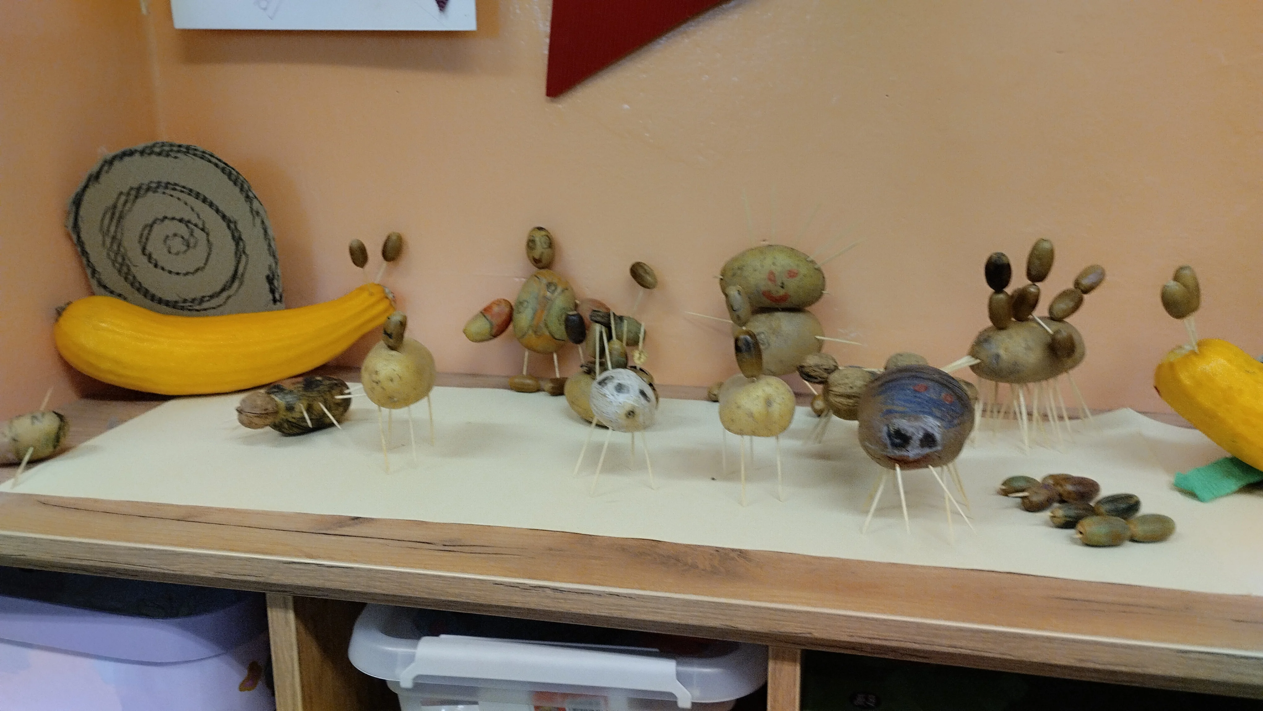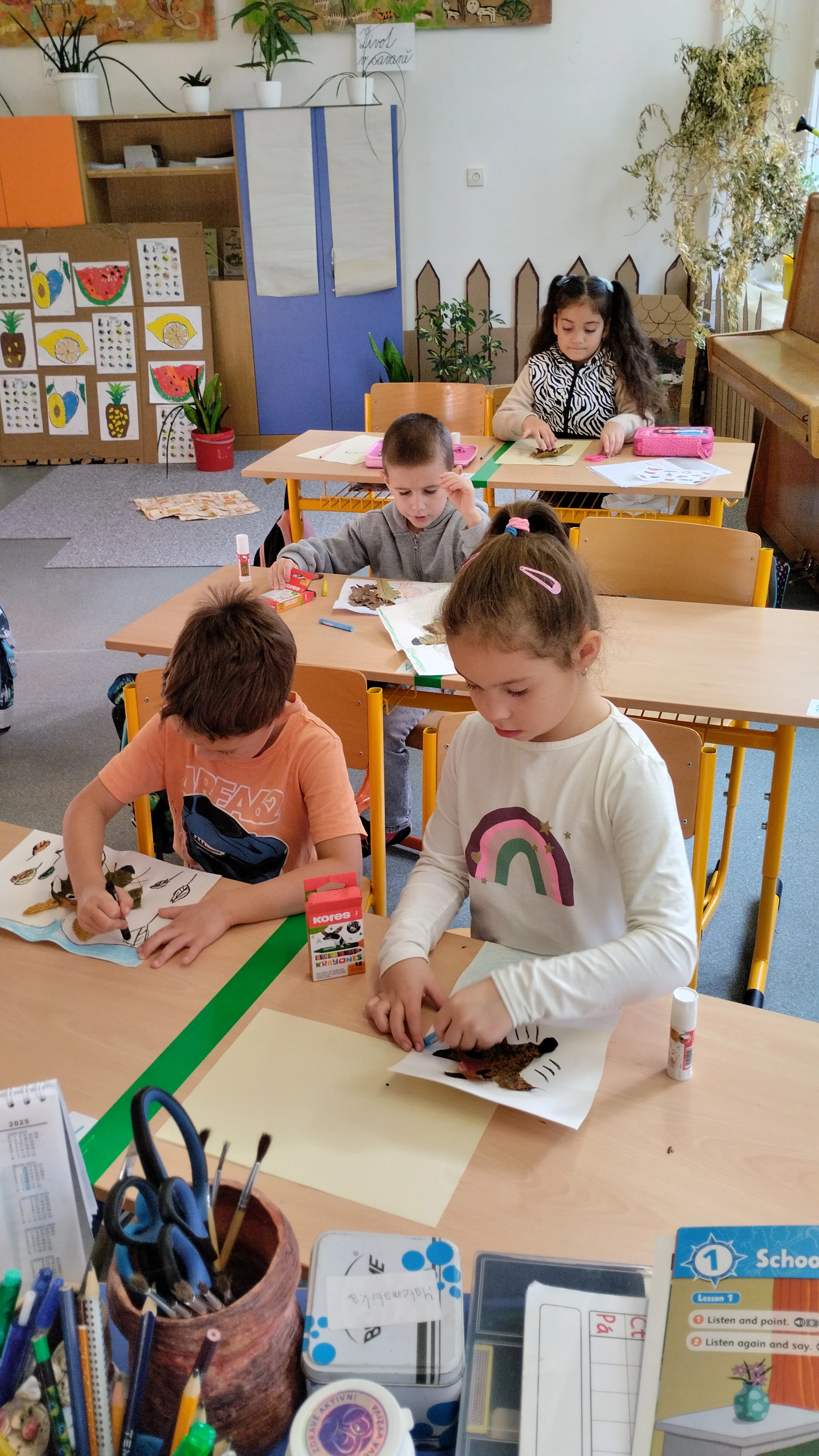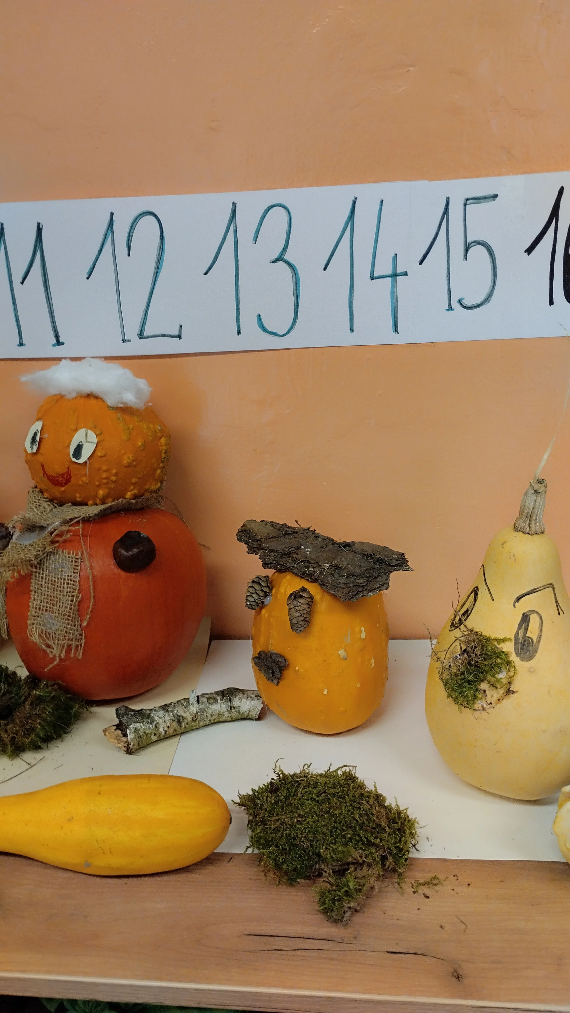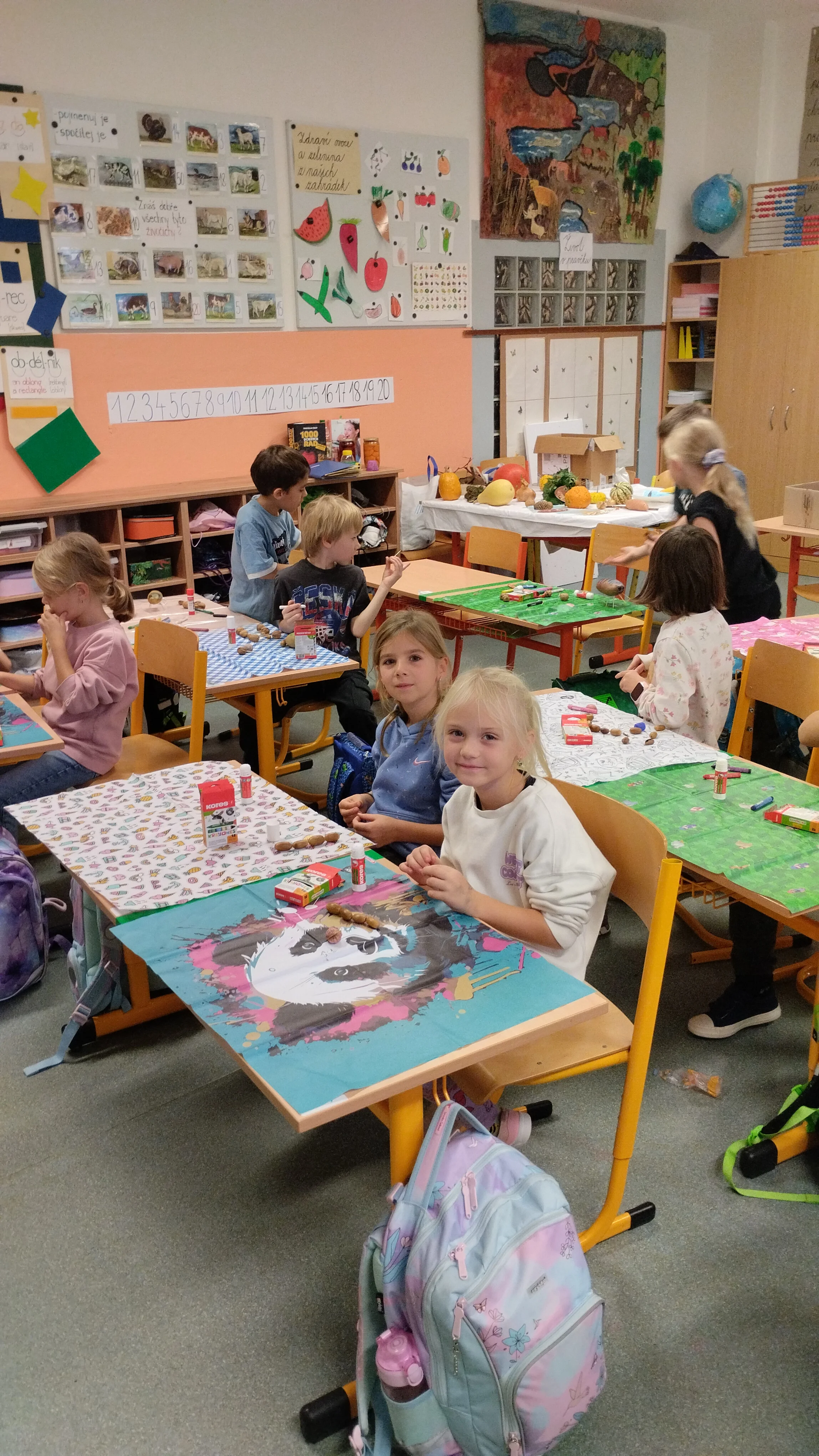 Kromě maminek a tatínků, kteří přišli 23.10.2025 do školy na společné Dýňování a moc se snažili, my jsme už měli naše výrobky z přírodnin hotové z předchozího dne ve třídě, a proto jsme je pozvali ke shlédnutí naší malé výstavky. Fantazie neměla mezí, což se promítlo do tvorby žáků.  “Moc hezké”: chválili rodiče! Děkujeme, každá pochvala je motivací!