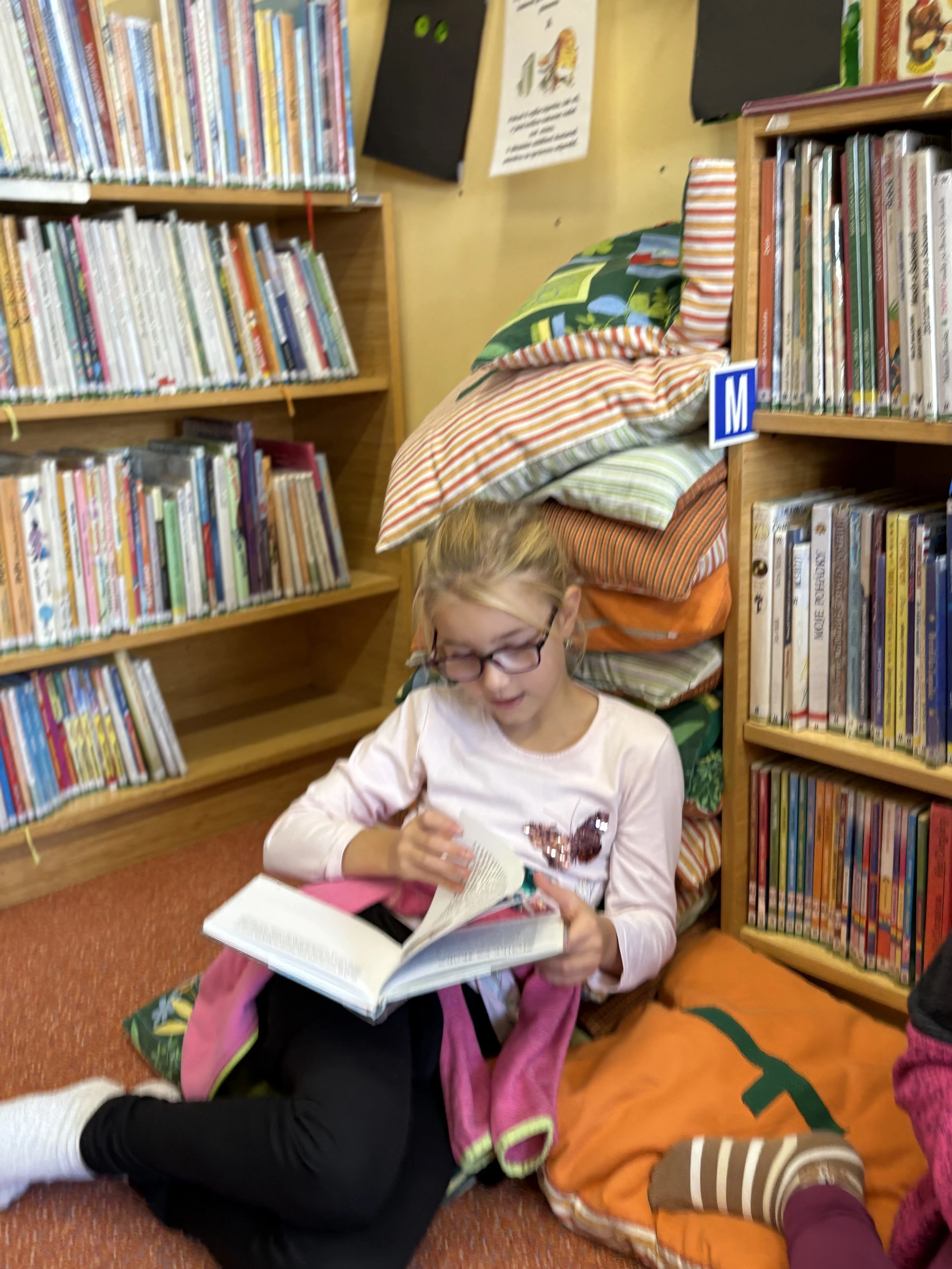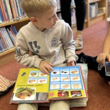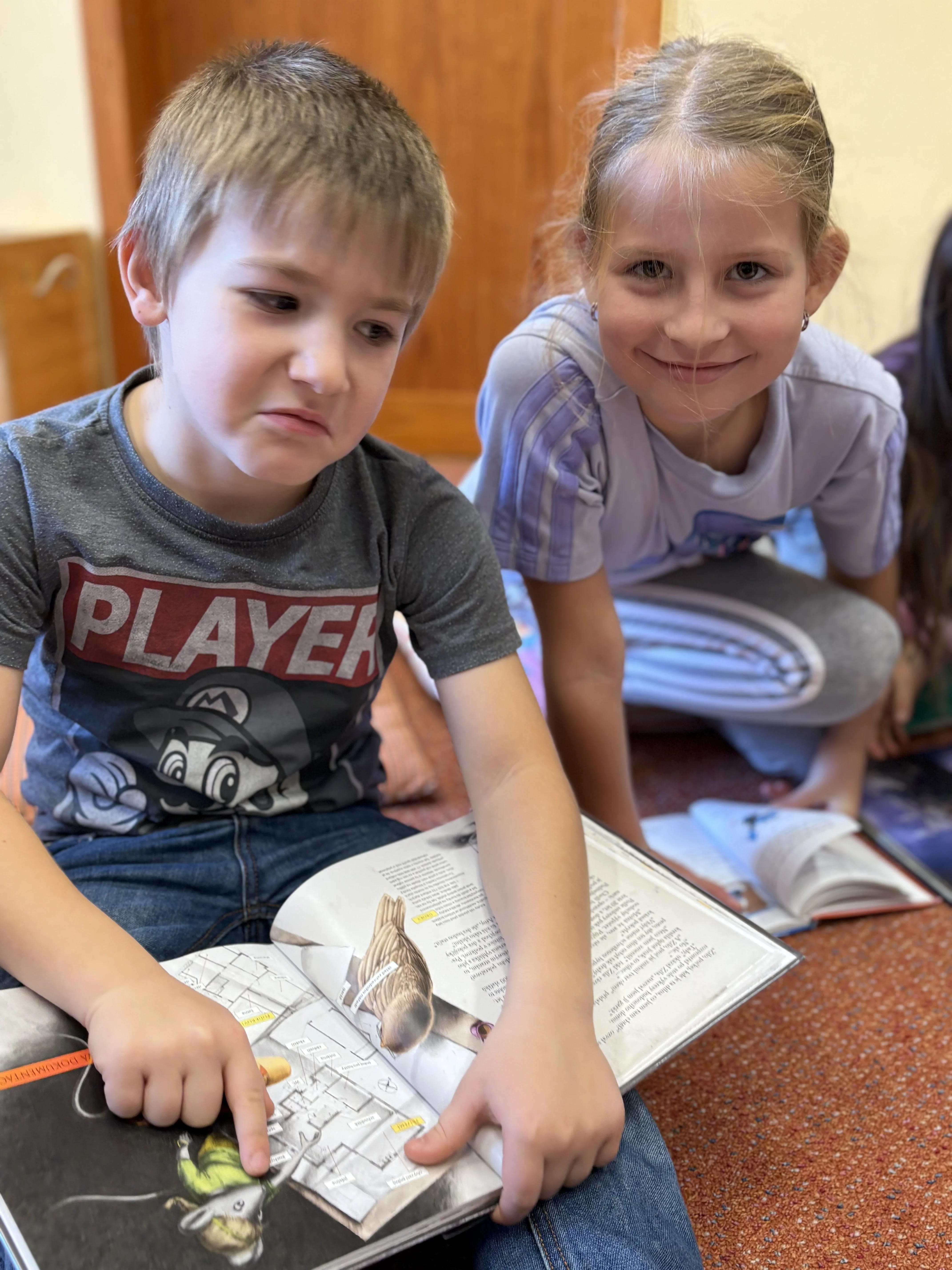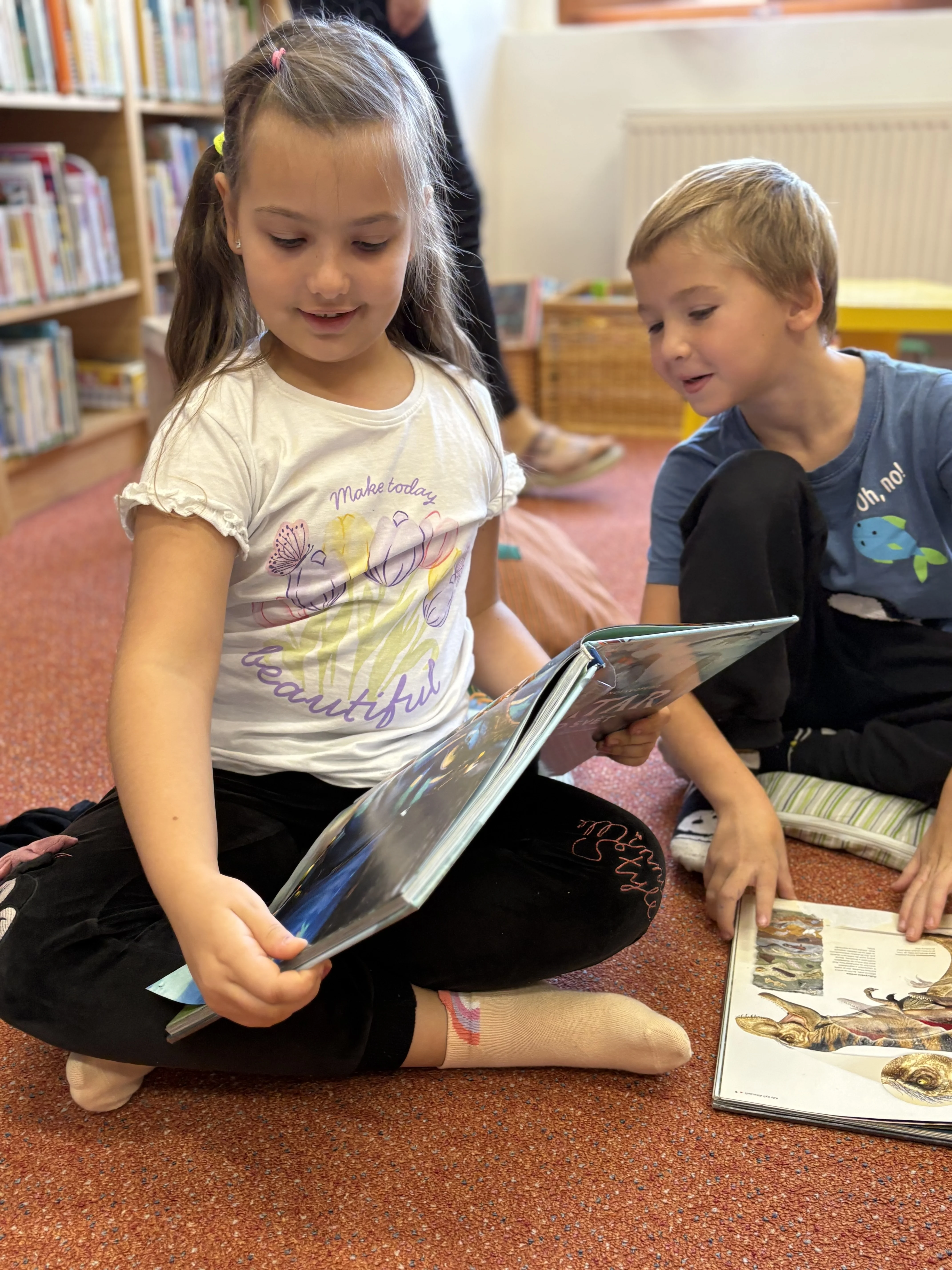 Dnešní lekce v knihovně byla zaměřena na téma překonávání překážek. Při čtení knížky O vlkovi, který vypadl z knížky od autora Thierra Robberechta jsme se dozvěděli, jaké pocity může mít takový malý vlk, který hledá svůj domov (svoji knihu) a jaké při tom musí překonat překážky. Naši žáci se k vlkovi přirovnávali a diskutovali o možnostech hledání cest k překonávání nesnází.
