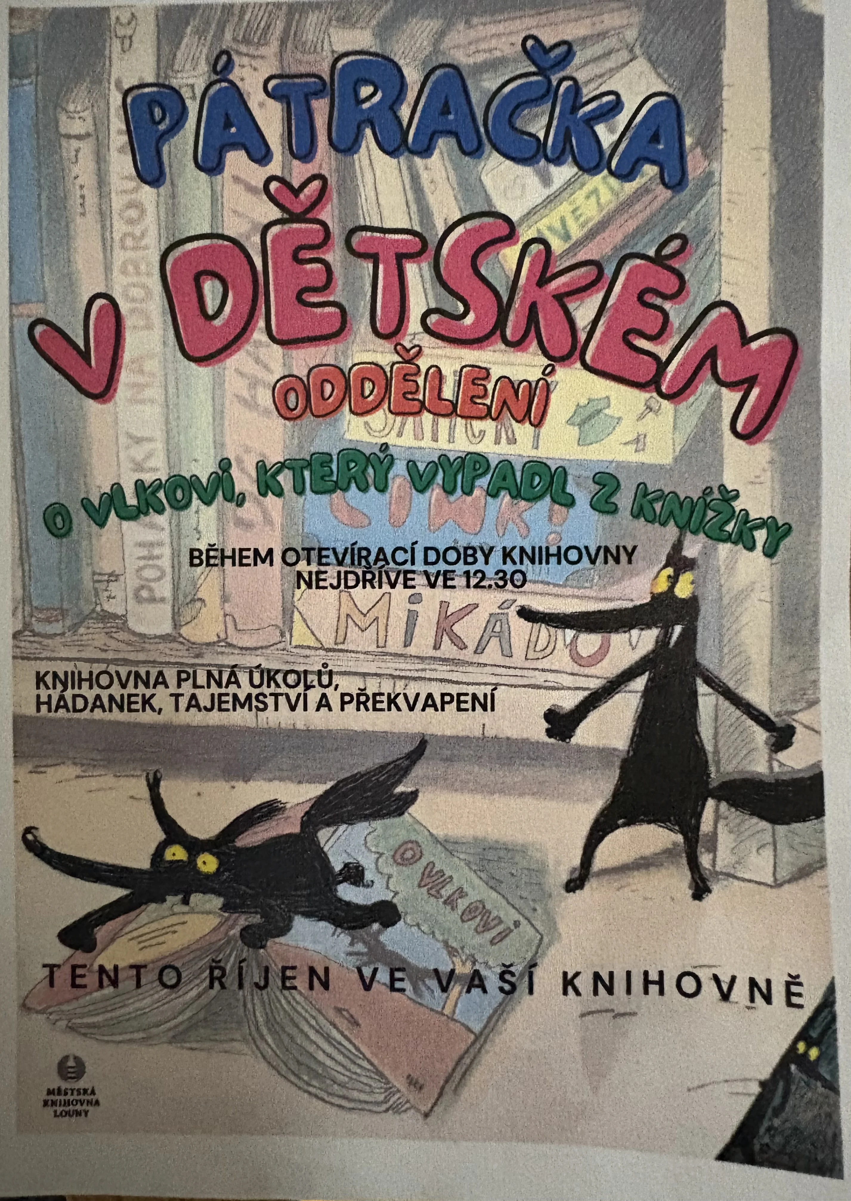 V knihovně je připravena pátrací hra s názvem této knihy. Vážení rodiče, vezměte své ratolesti a vydejte se během otevírací doby do knihovny. Podpořte děti v luštění, hádání…. Držím palce.