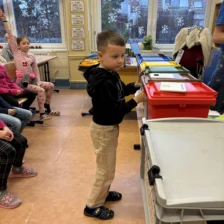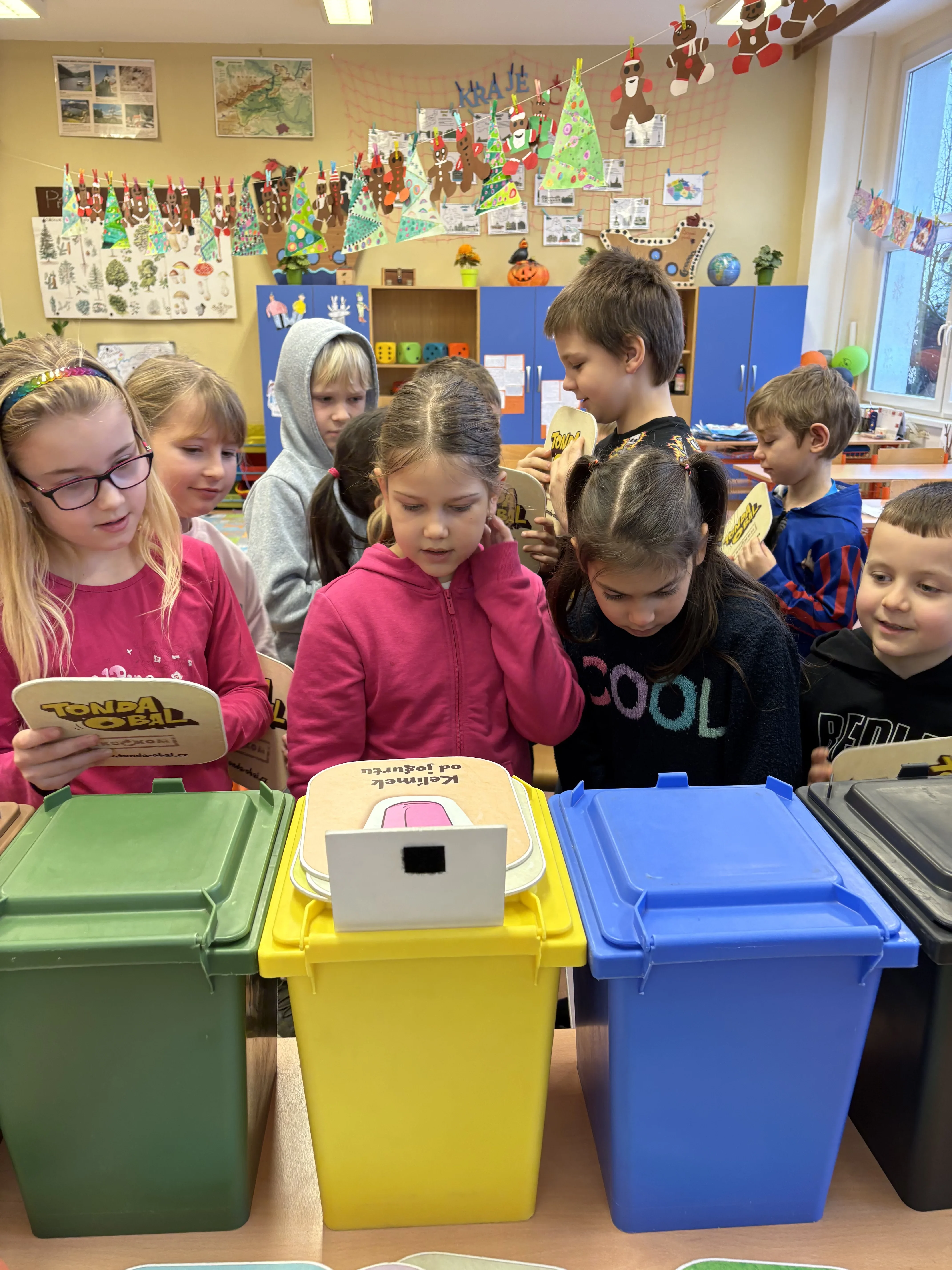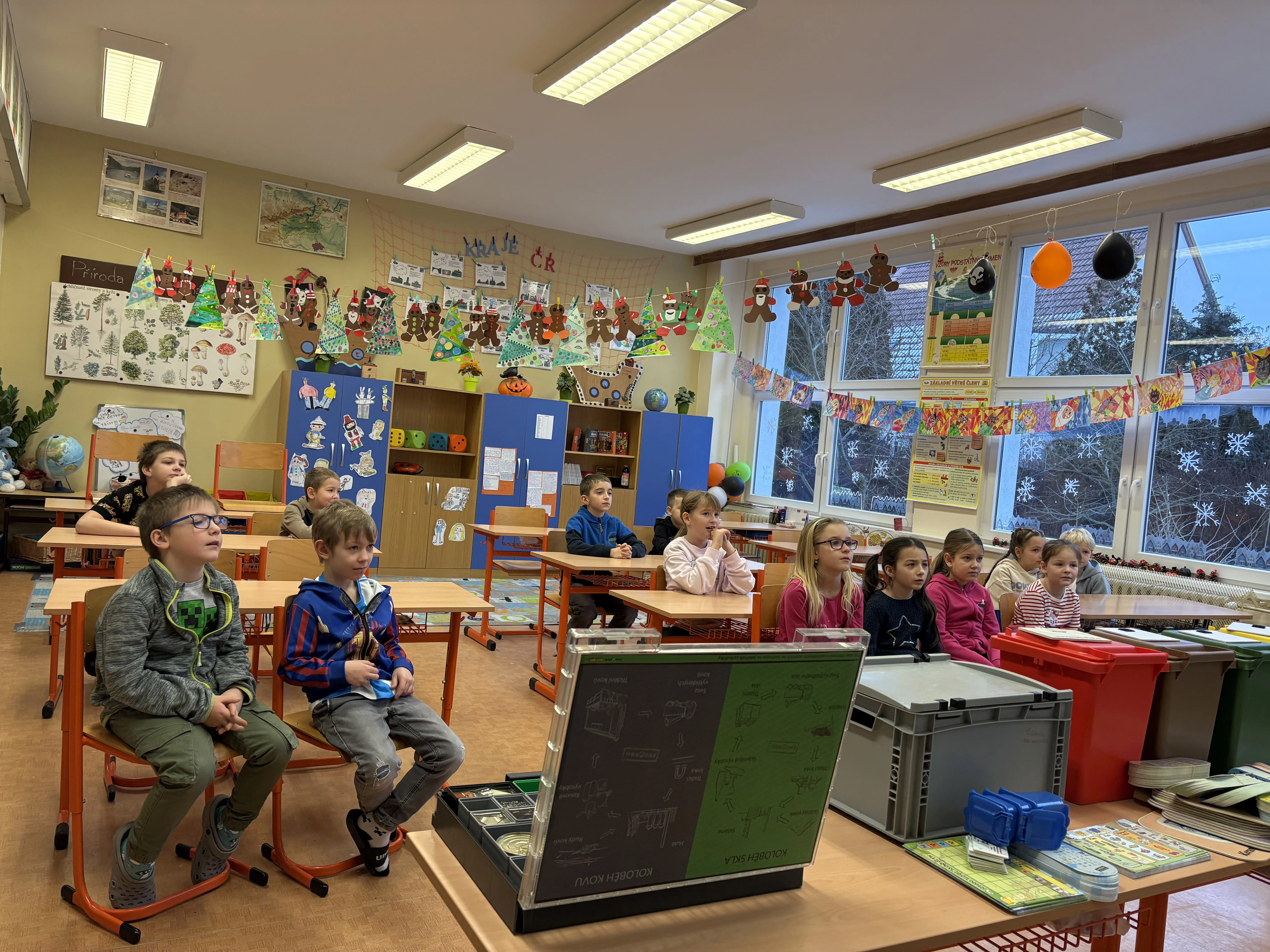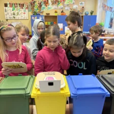 Účastnili jsme se interaktivní besedy spojené s hrou na téma třídění a recyklace odpadu. Za úspěšně vyřešené úkoly si žáci mohli vybrat malou odměnu.