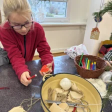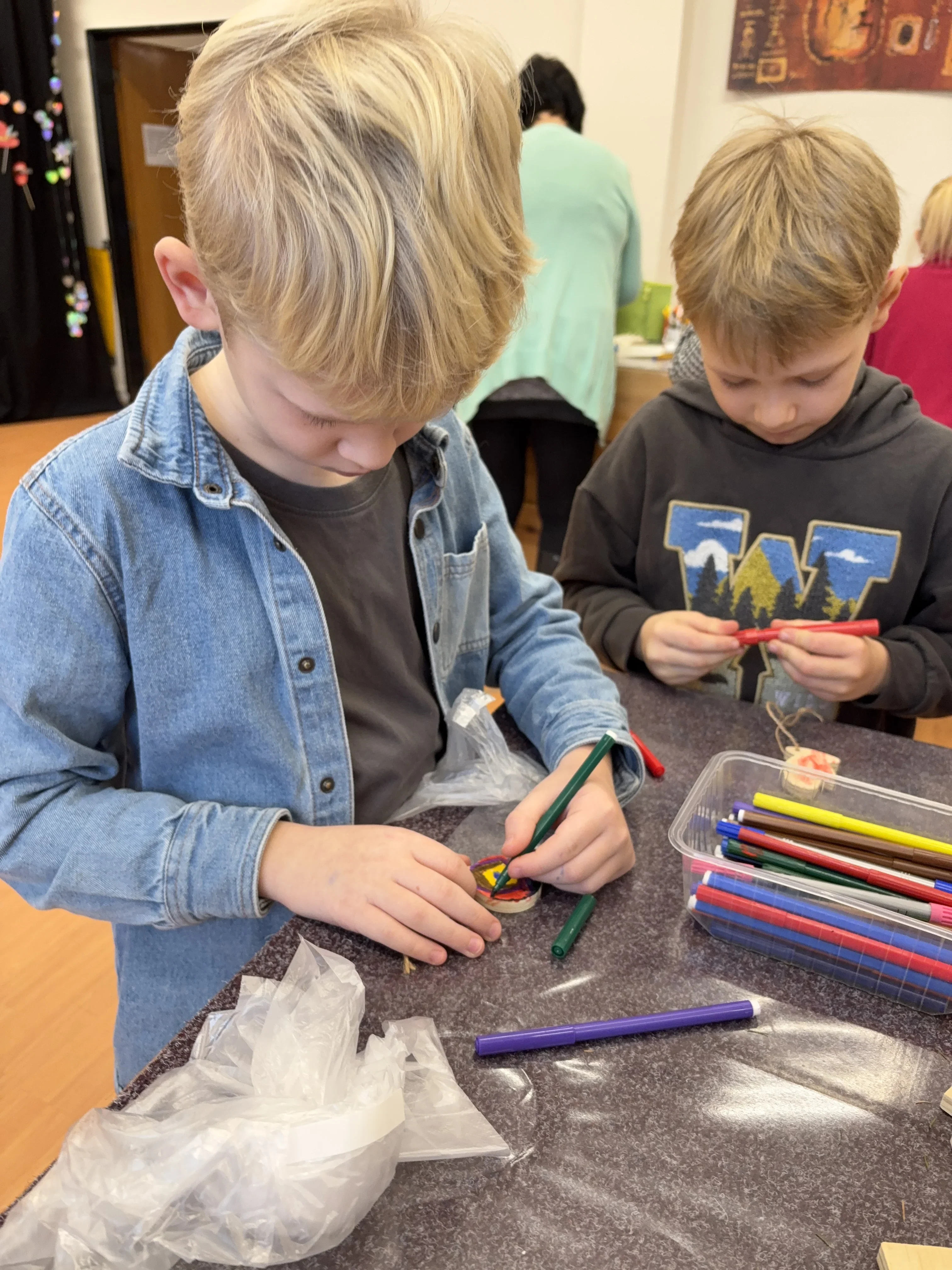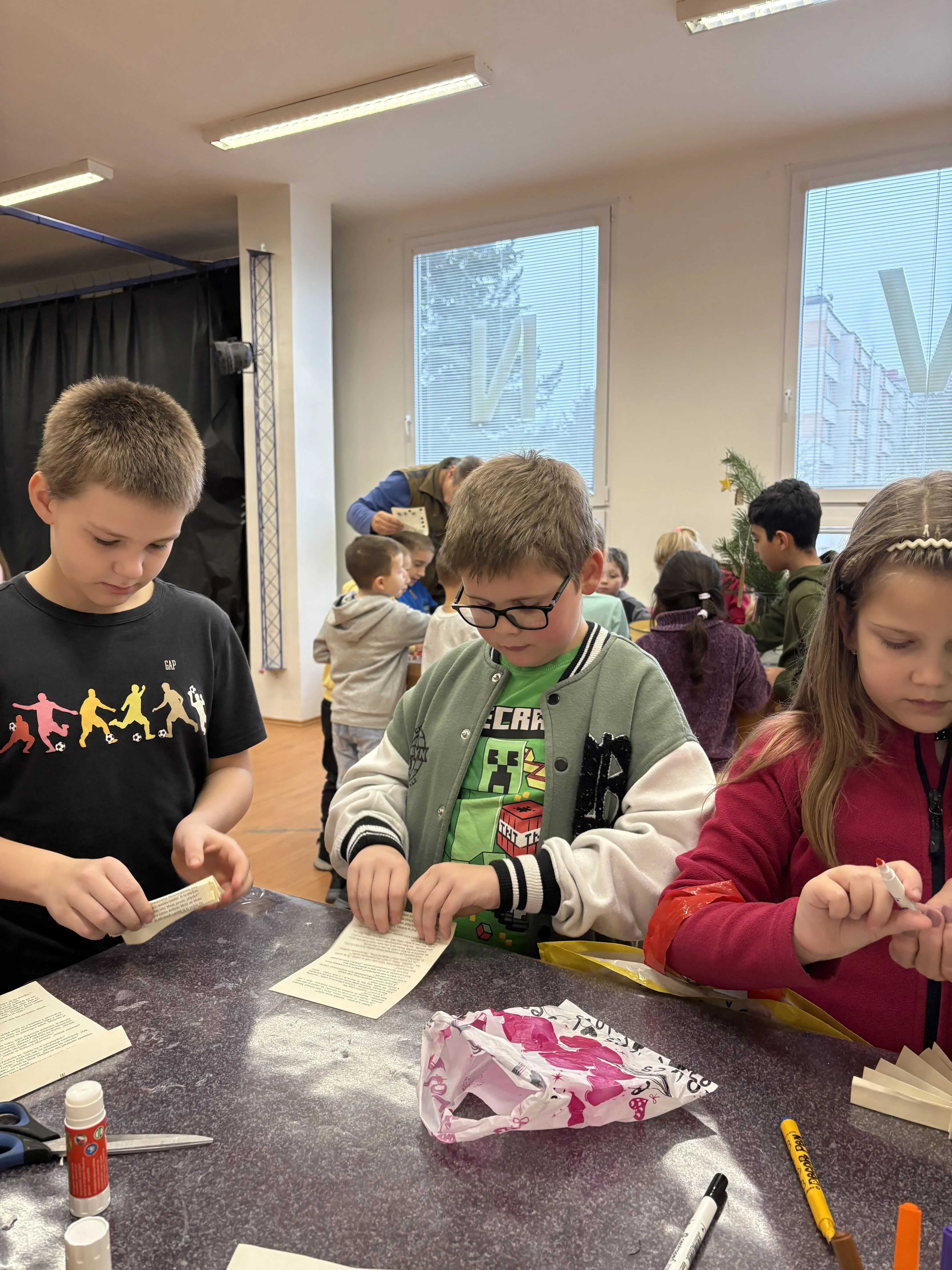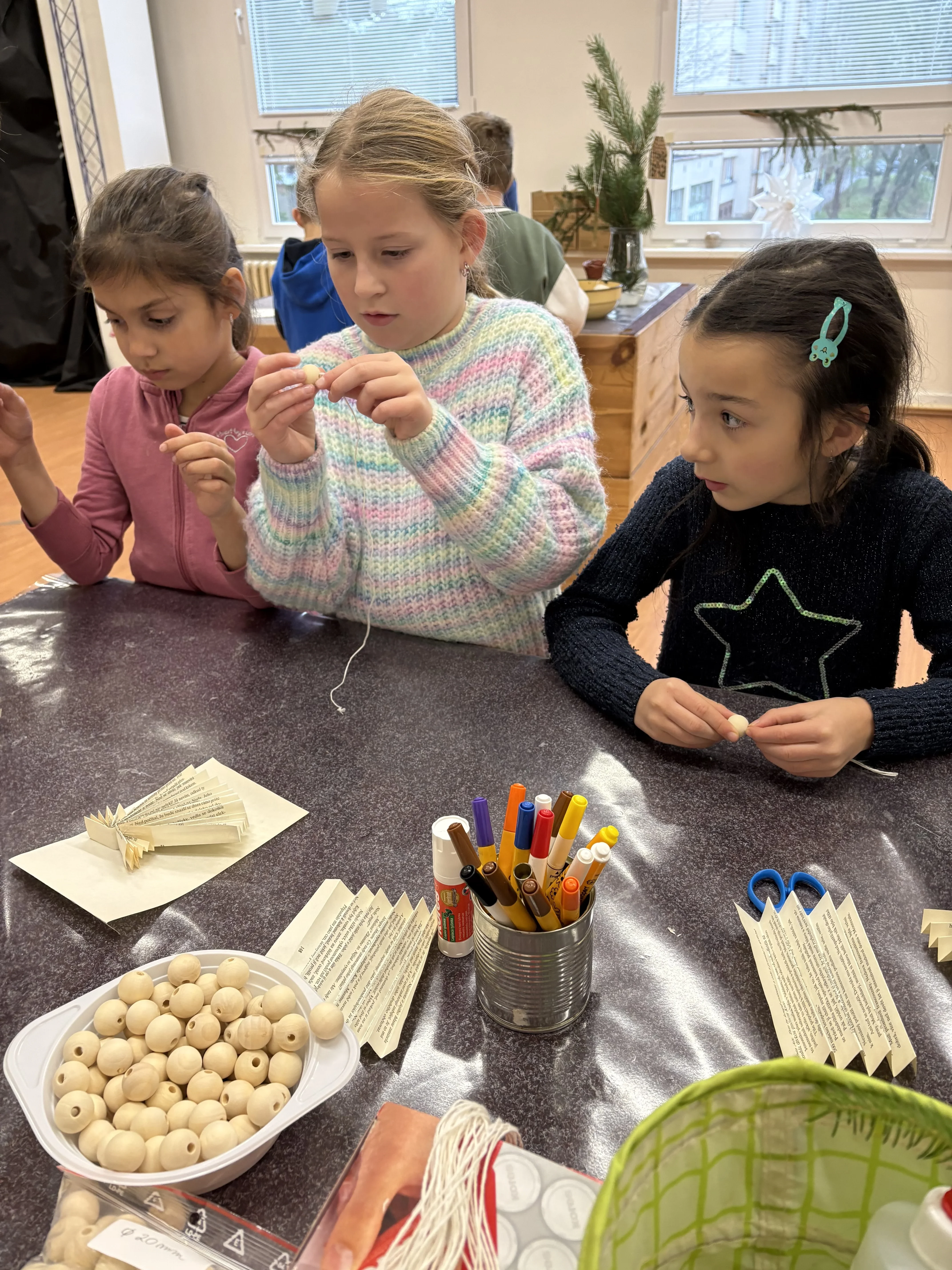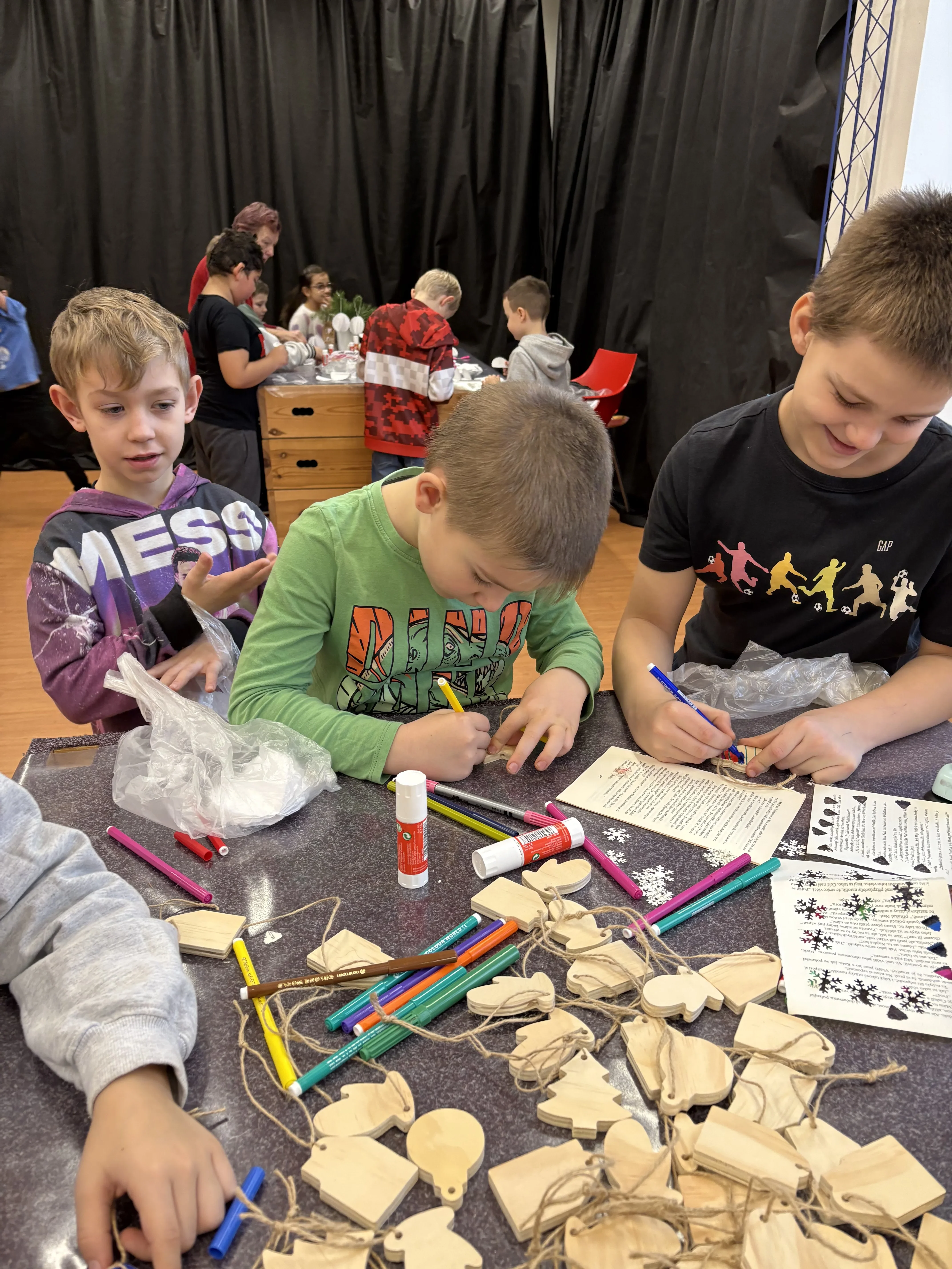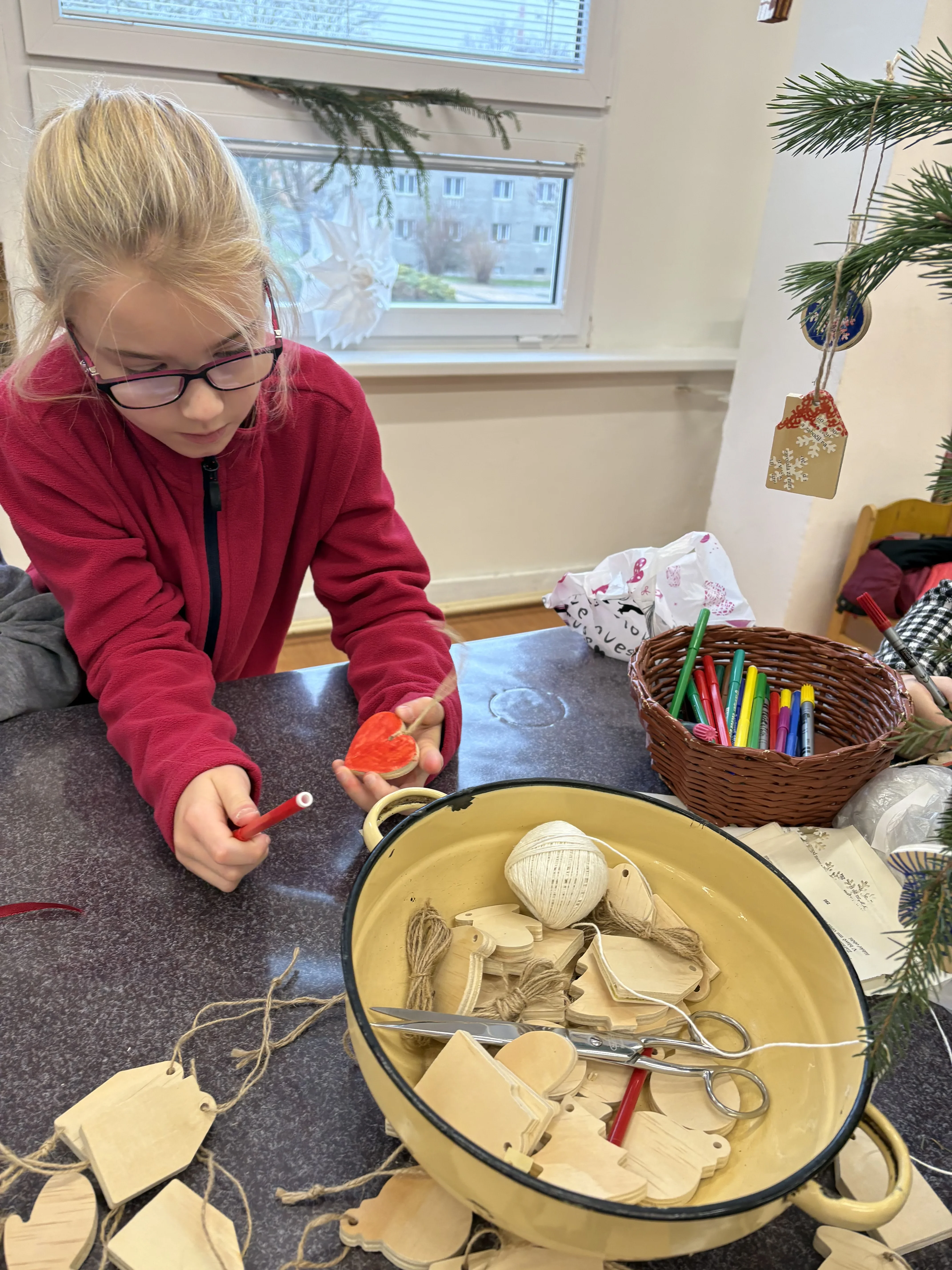 Přehnout papír, navléknout korálky, vytvořit pohlednici, vybarvit dřevěný výřez a dokonce šít. To všechno jsme zvládli při tvoření vánočních ozdobiček nejen ve škole, ale také v Klubu Luna.