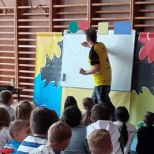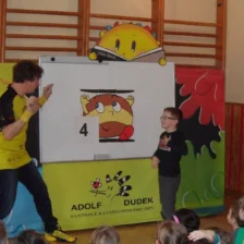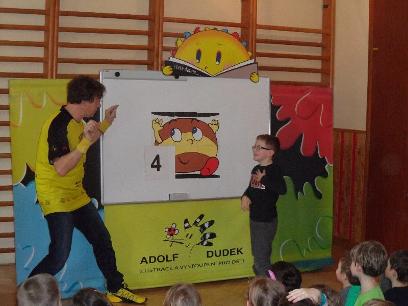 Muž mnoha profesí Adolf Dudek se nakonec našel v oboru knižní ilustrace. Zároveň vystupuje pro dětské obecenstvo a interaktivní formou předává dětem radost z ilustrací a pohádek. Svým programem na naší škole pobavil, poučil, ale hlavně rozesmál a přinesl dobrou náladu všem bez rozdílu věku.