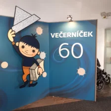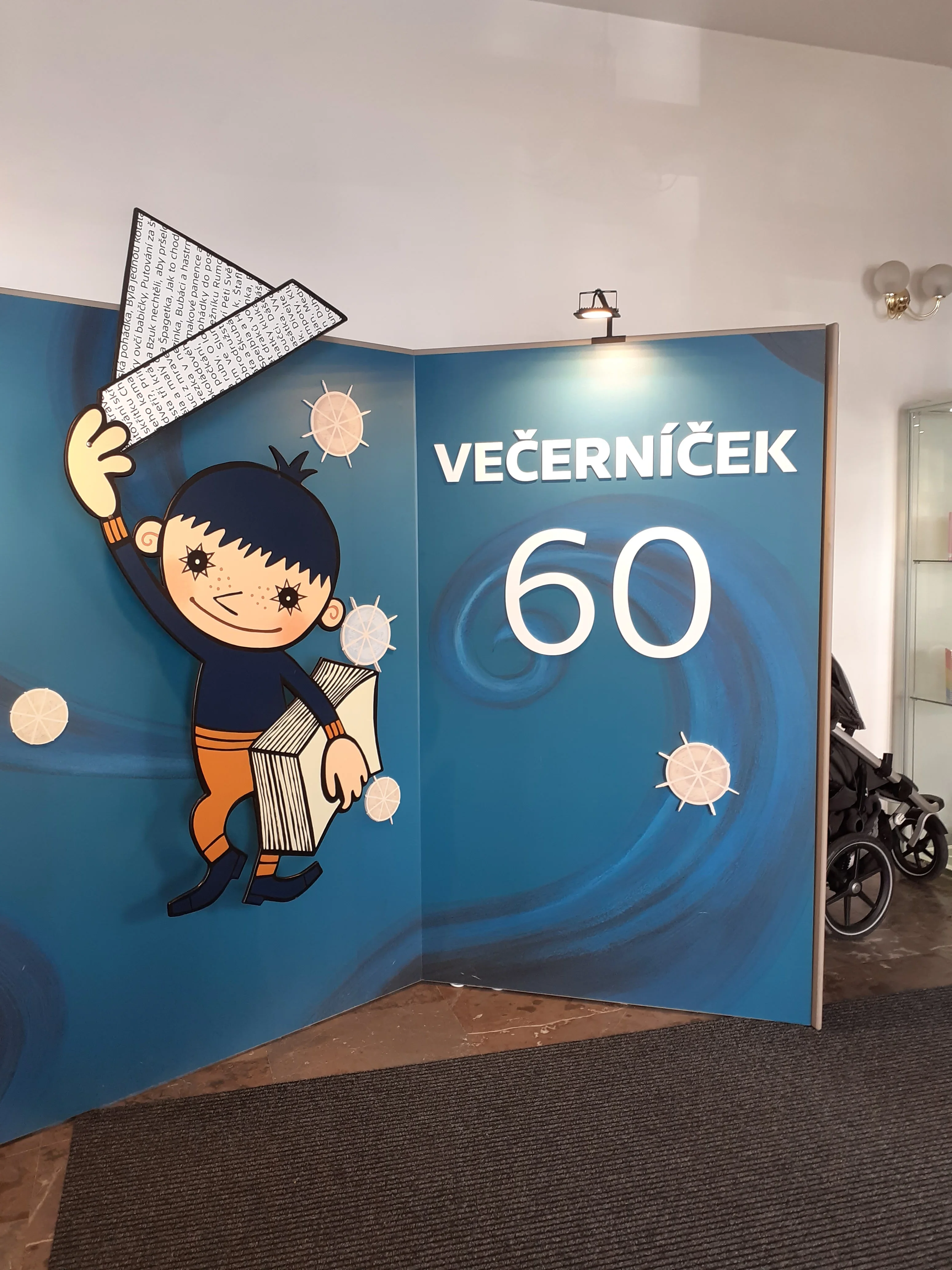 Původní kulisy z večerníčků, cenné náčrty, fotky, kresby a loutky. Navíc i interaktivní pohádkové zážitky, možnost vstoupit do světa Maxipsa Fíka, kocourka Mikeše, Krakonoše, loupežníka Rumcajse a jeho synka Cipíska, pohrát si s Dášeňkou nebo zatančit s vílou Amálkou. Reálné modely pohádek jako Chaloupka na vršku, Pat a Mat, a také promítané záběry z animátorské dílny. To vše (a ještě mnohem víc) přinesla výstava „Večerníček slaví 60 let“ ve Strahovském klášteře.