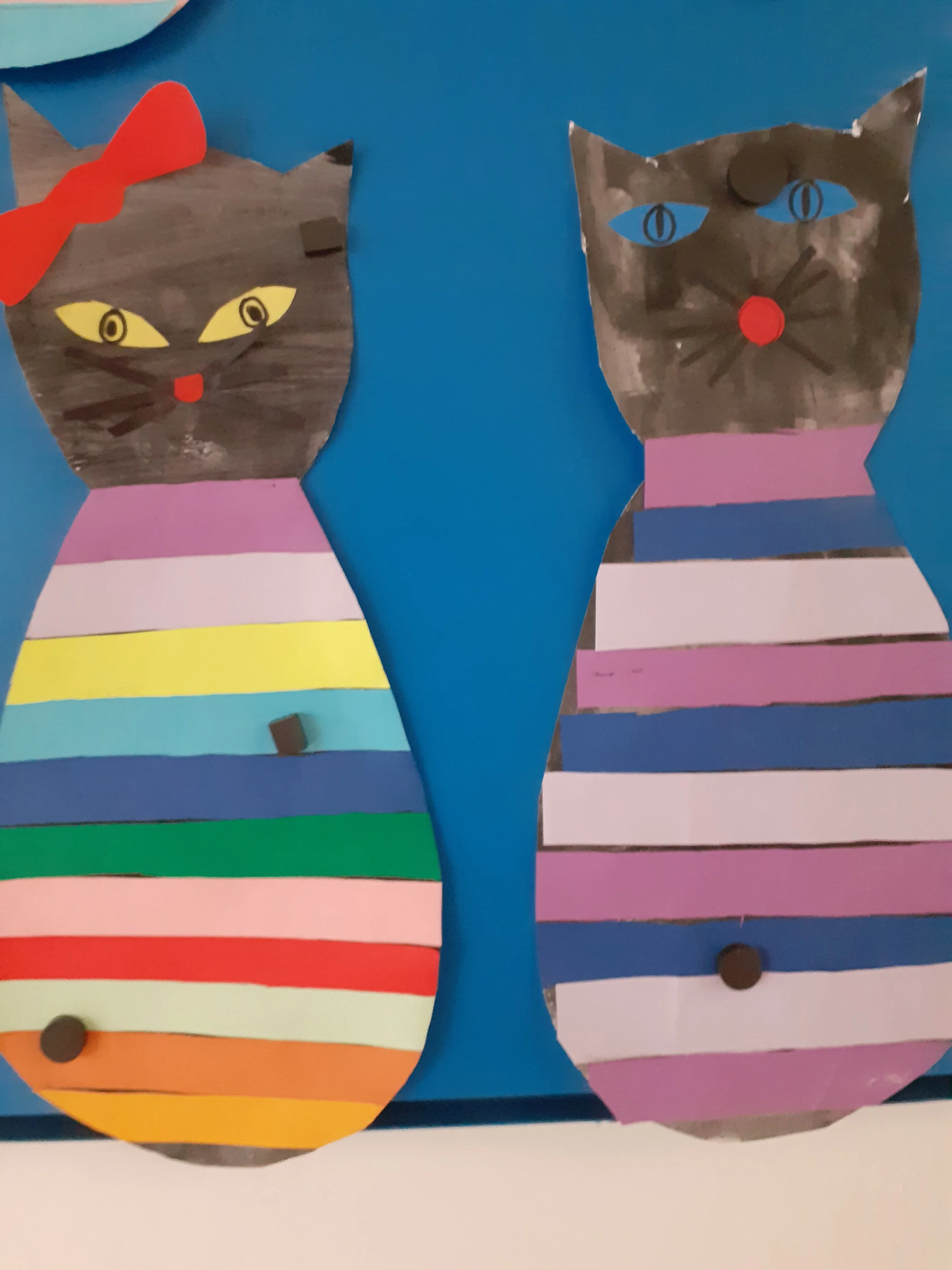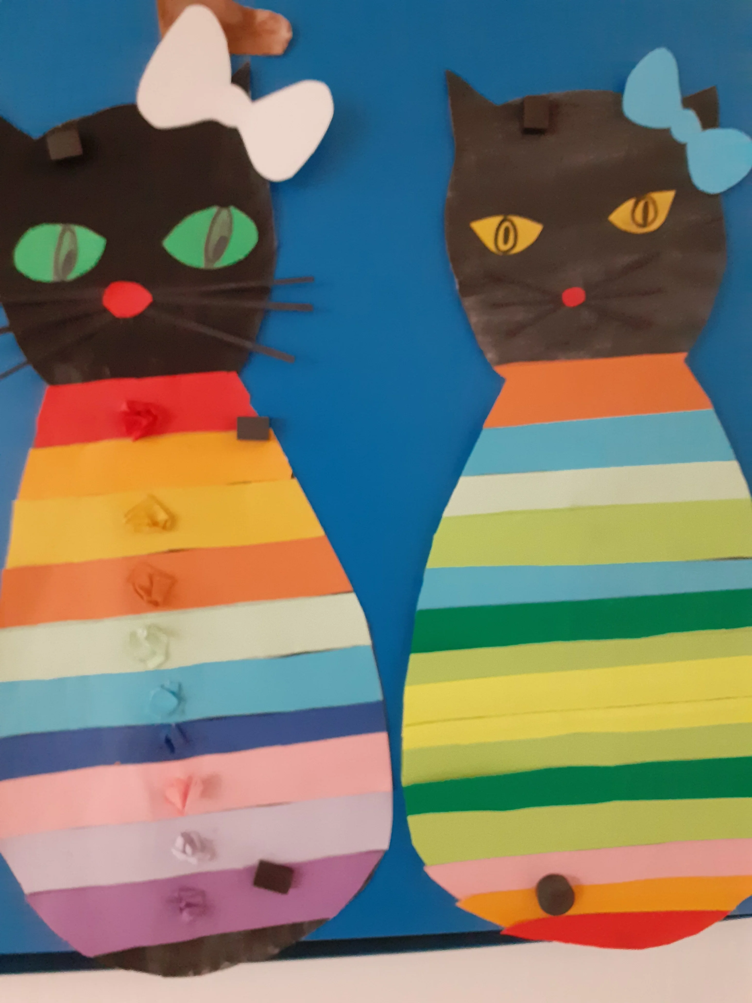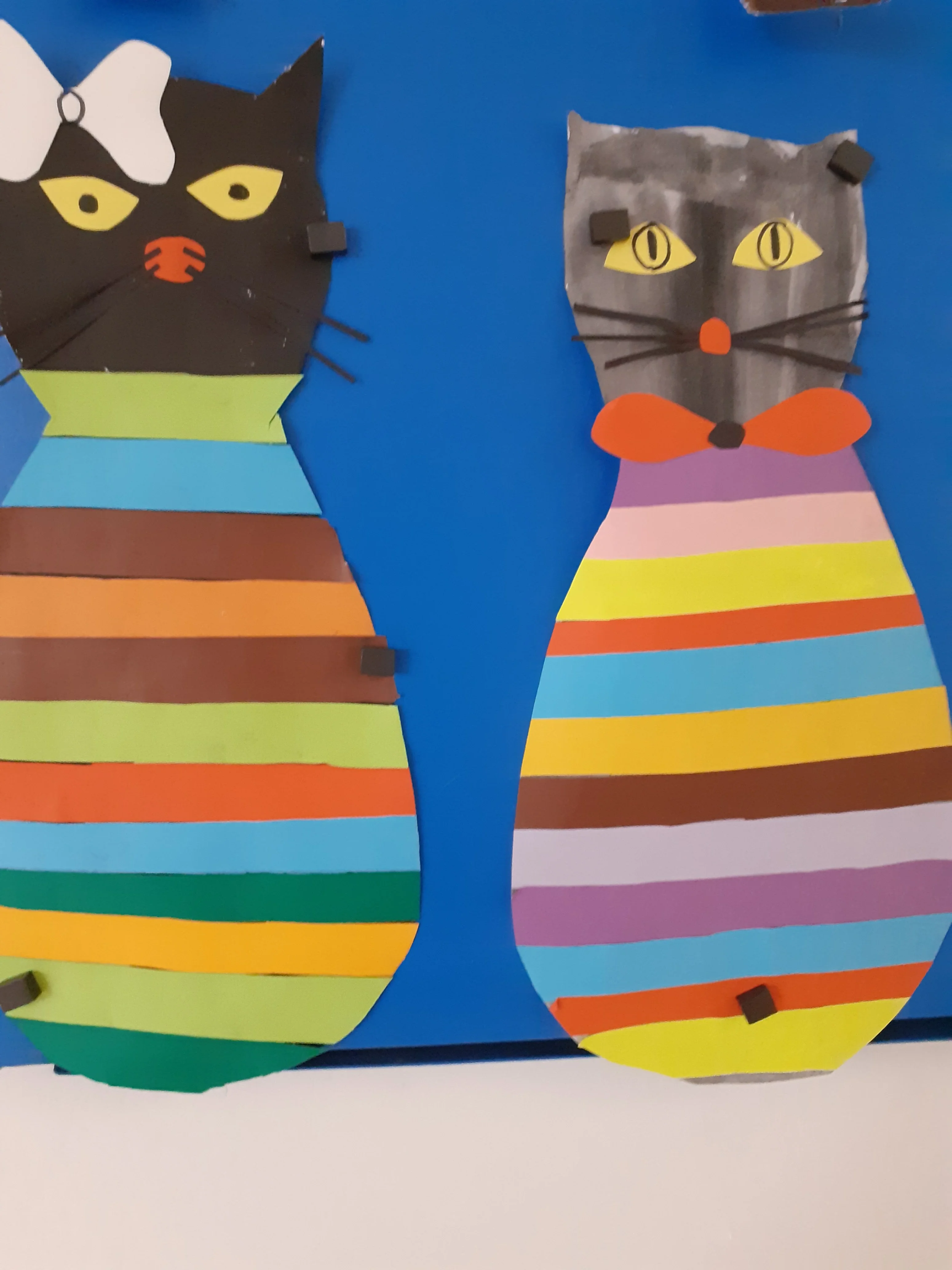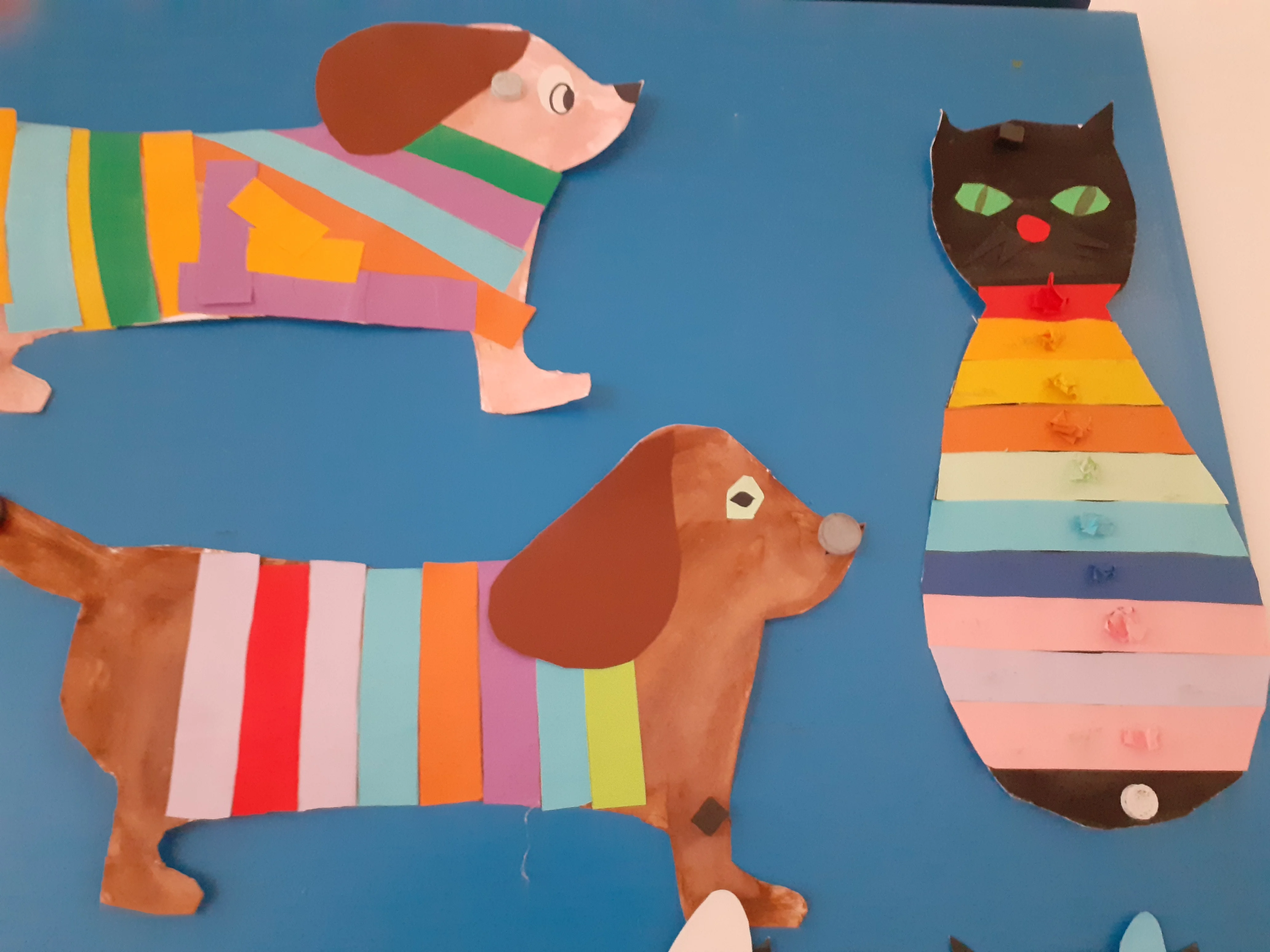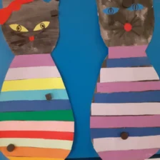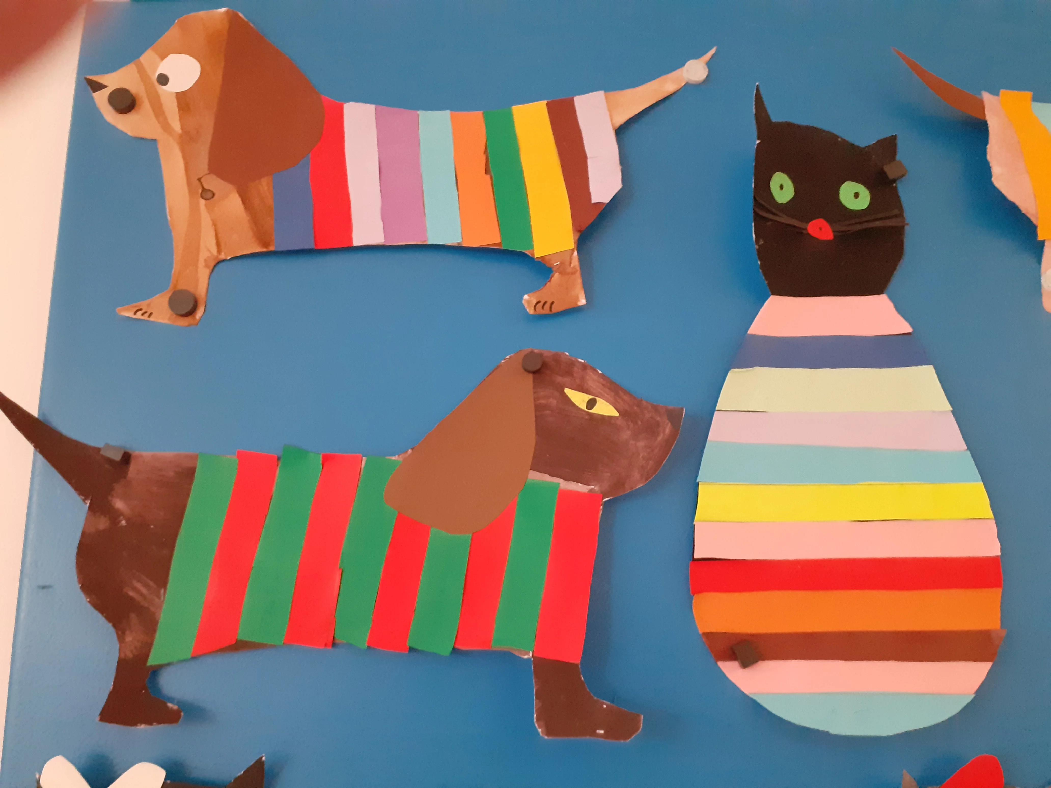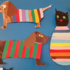 Krásné kočičky a pejsky jsme vytvořili z barevných proužků.