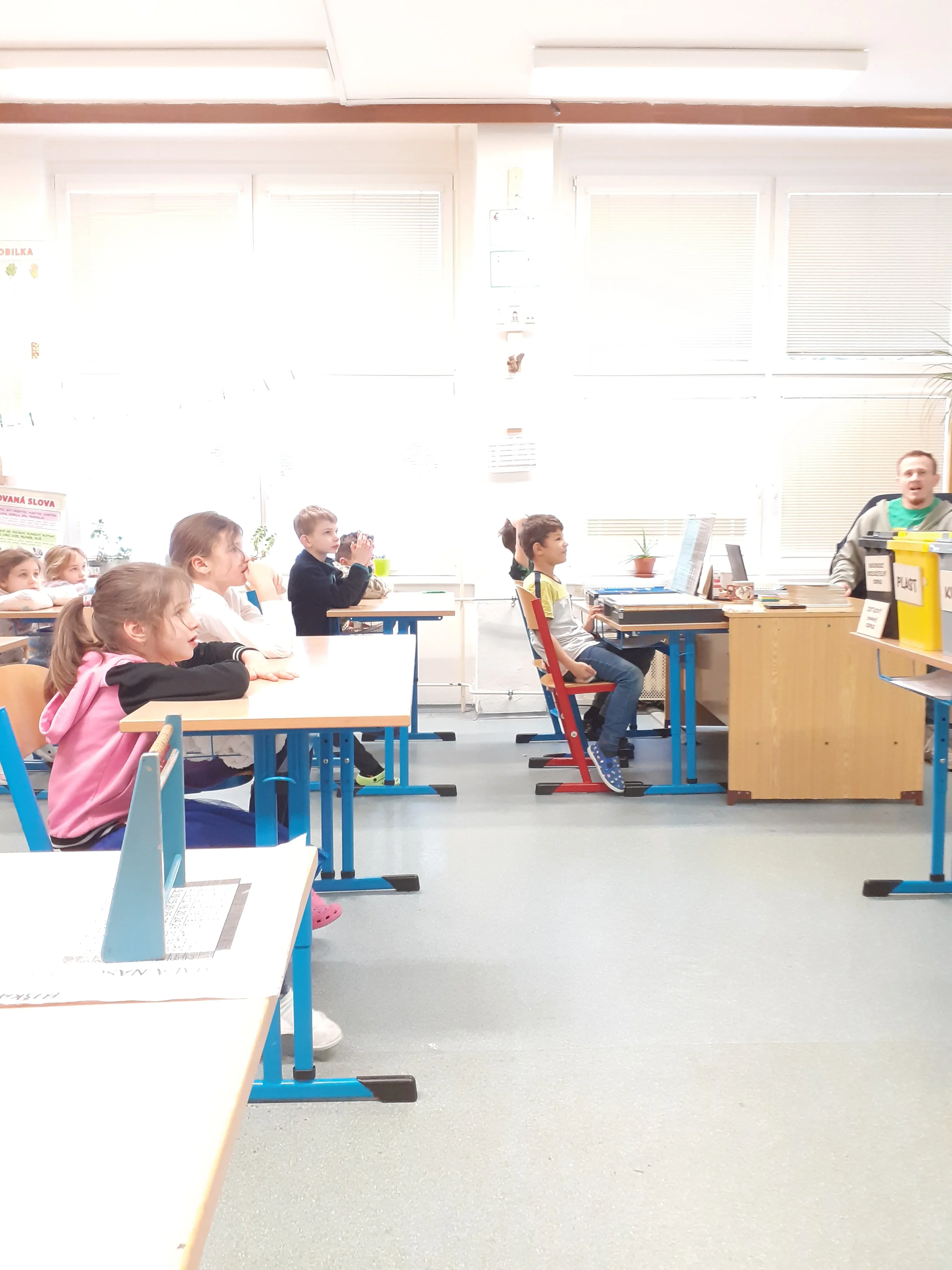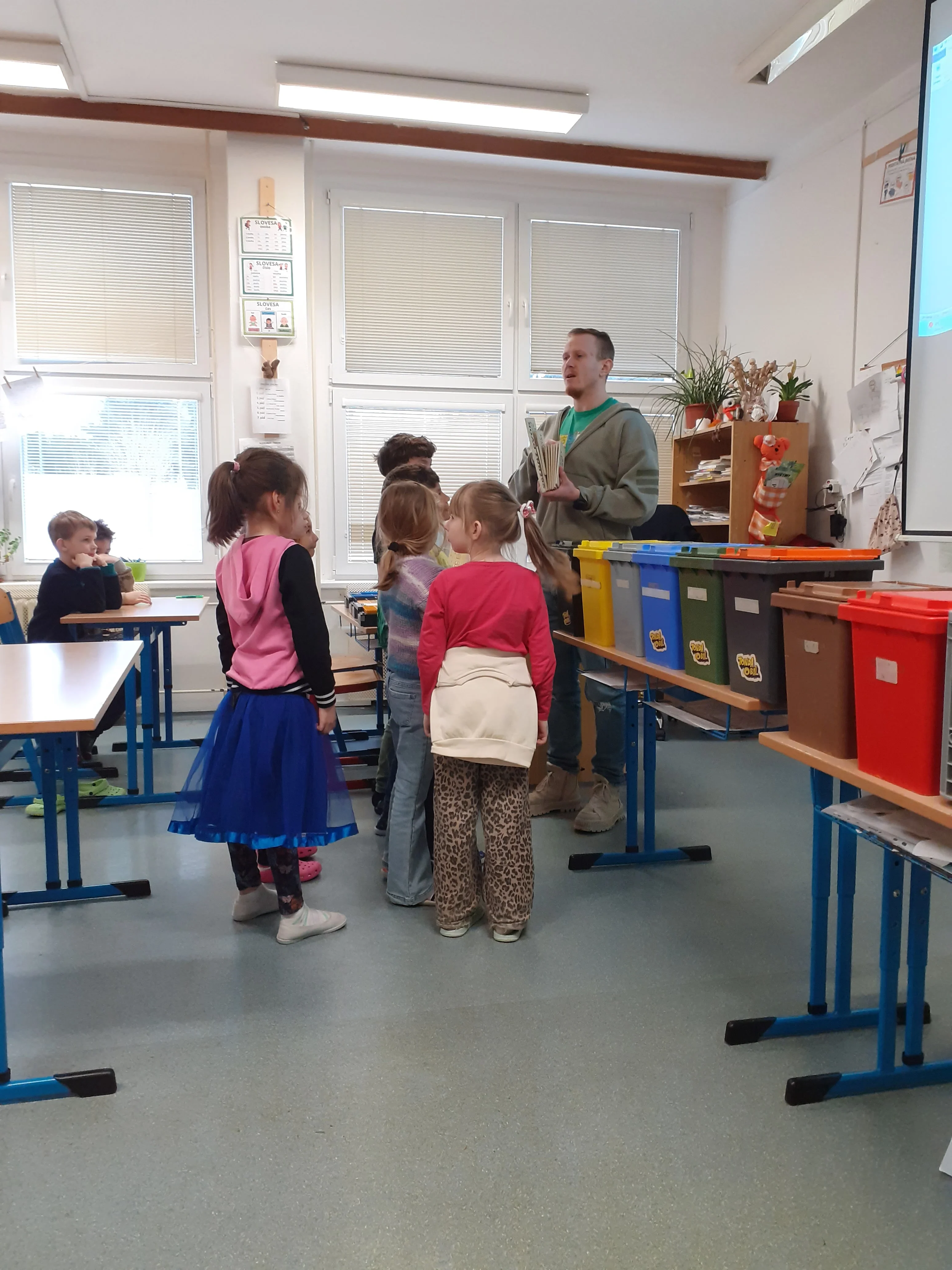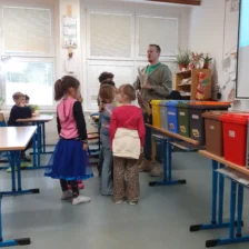 Tonda Obal na cestách je program určený pro základní školy. Žáci se dnes během jedné vyučovací hodiny učili třídit odpad a dozvěděli se o jeho dalším využití. Viděli zajímavou videoukázku, sami si vyzkoušeli třídit odpad do barevných kontejnerů a na závěr dostali malý dárek. Pan lektor byl výborný, druháčky chválím za vzorné chování, aktivitu, znalosti a celkově pohodovou atmosféru. Jednalo se o velmi povedenou akci.
