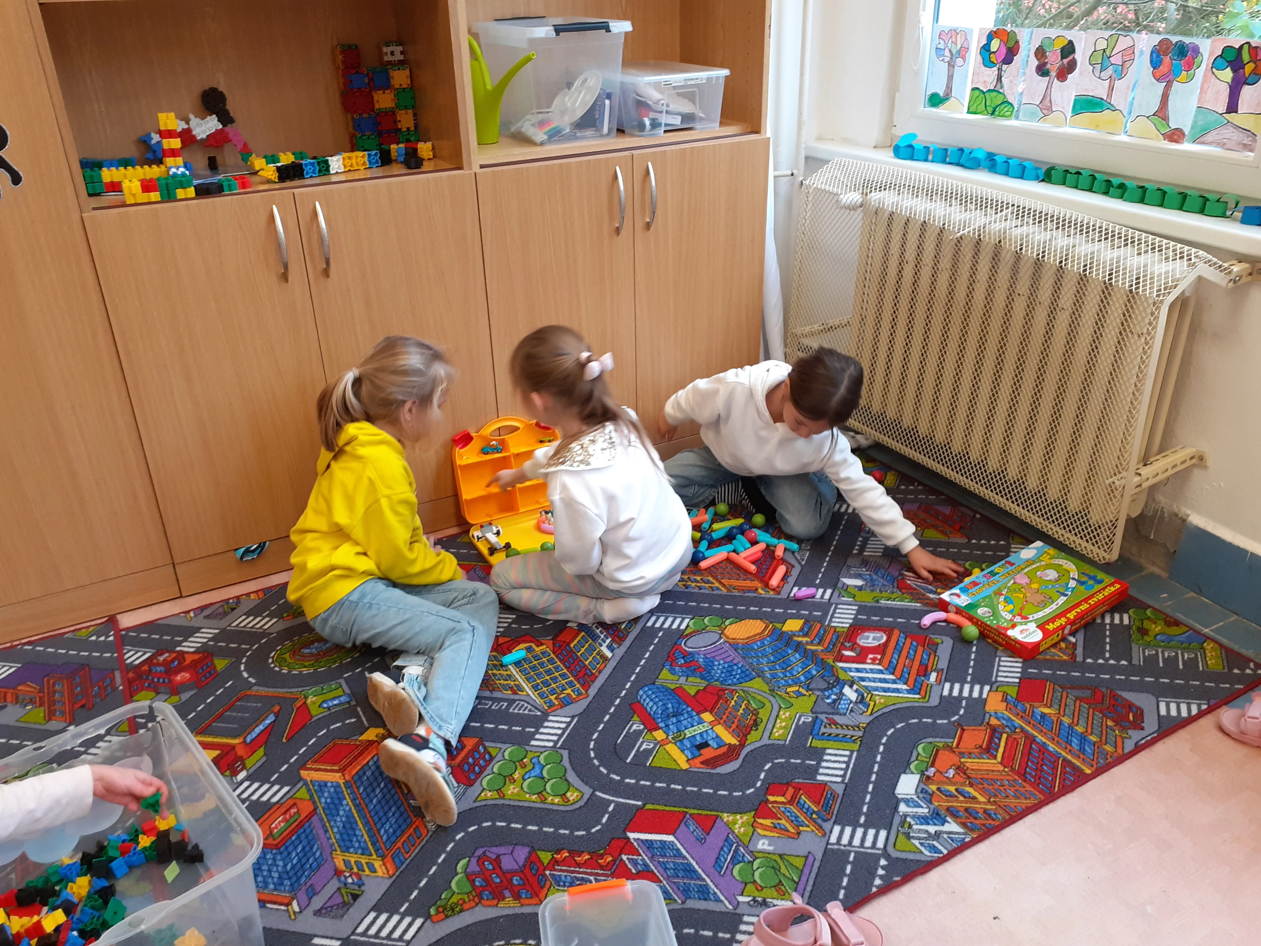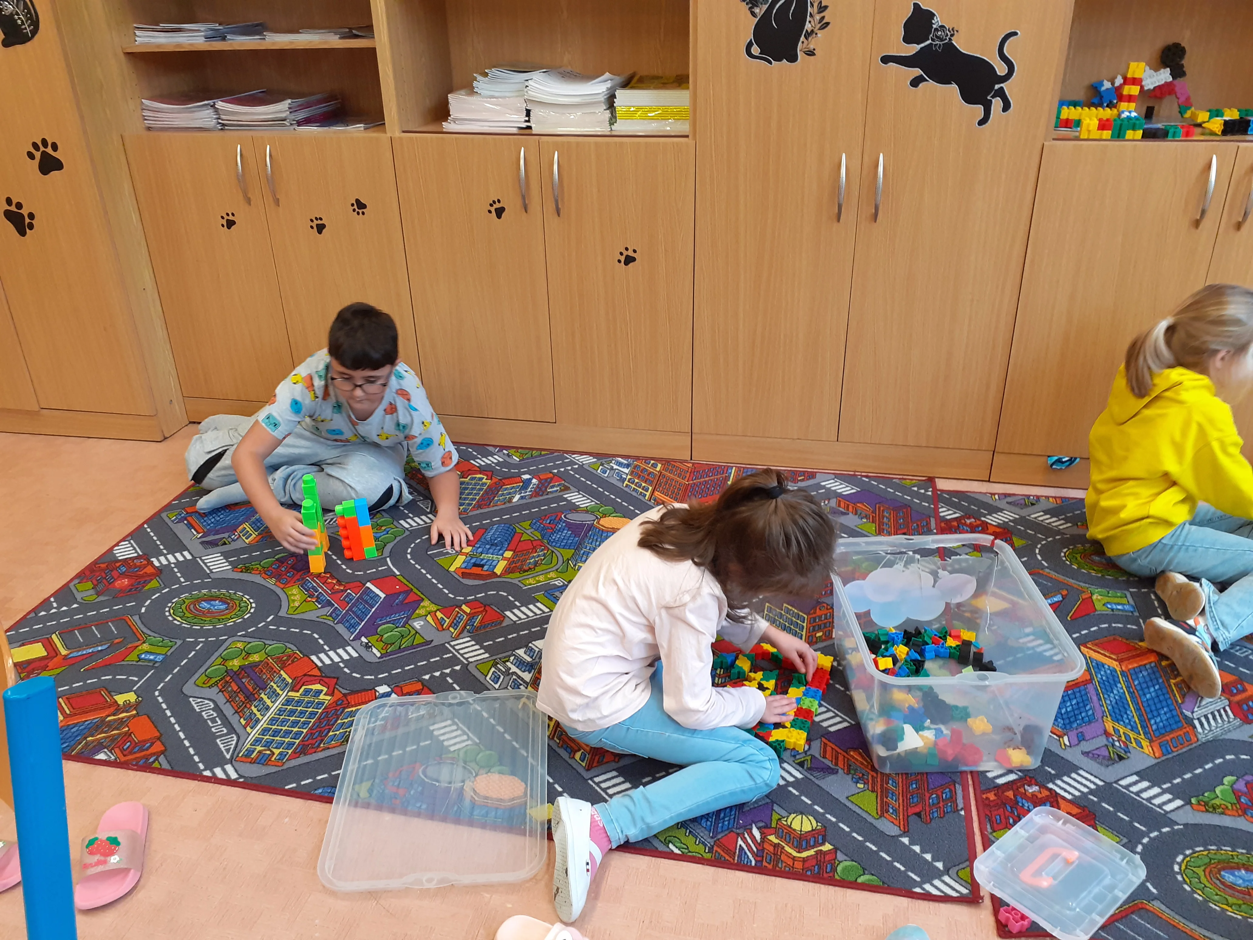 Práce se stavebnicemi, montážní i demontážní činnosti jsou u dětí velmi oblíbené. Dvě velké stavebnice mají děti ve třídě stále k dispozici, tentokrát si ale donesly k tvoření své vlastní stavebnice.