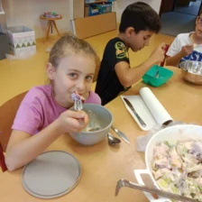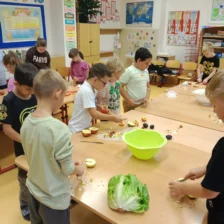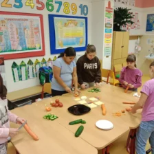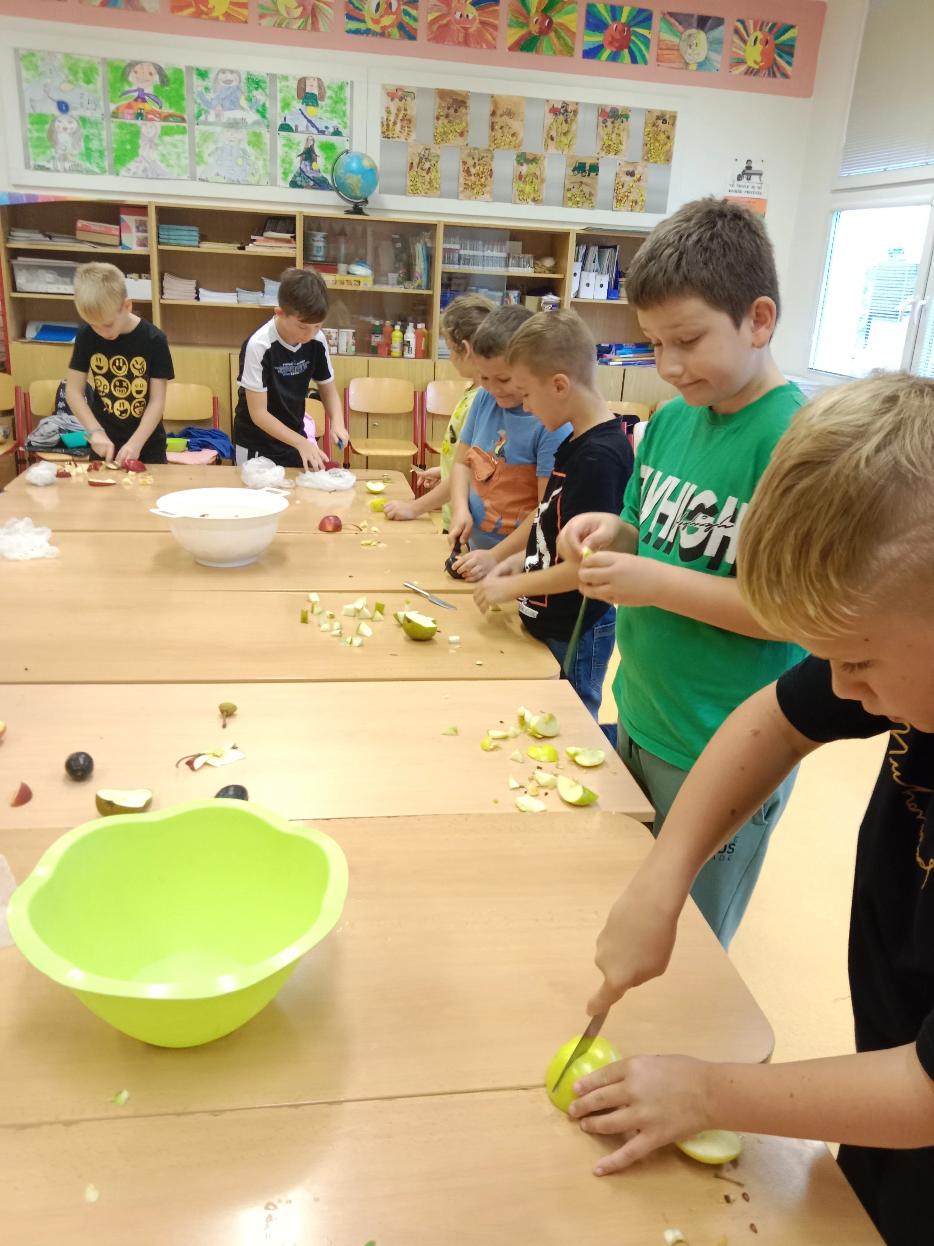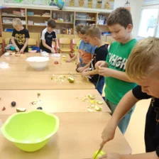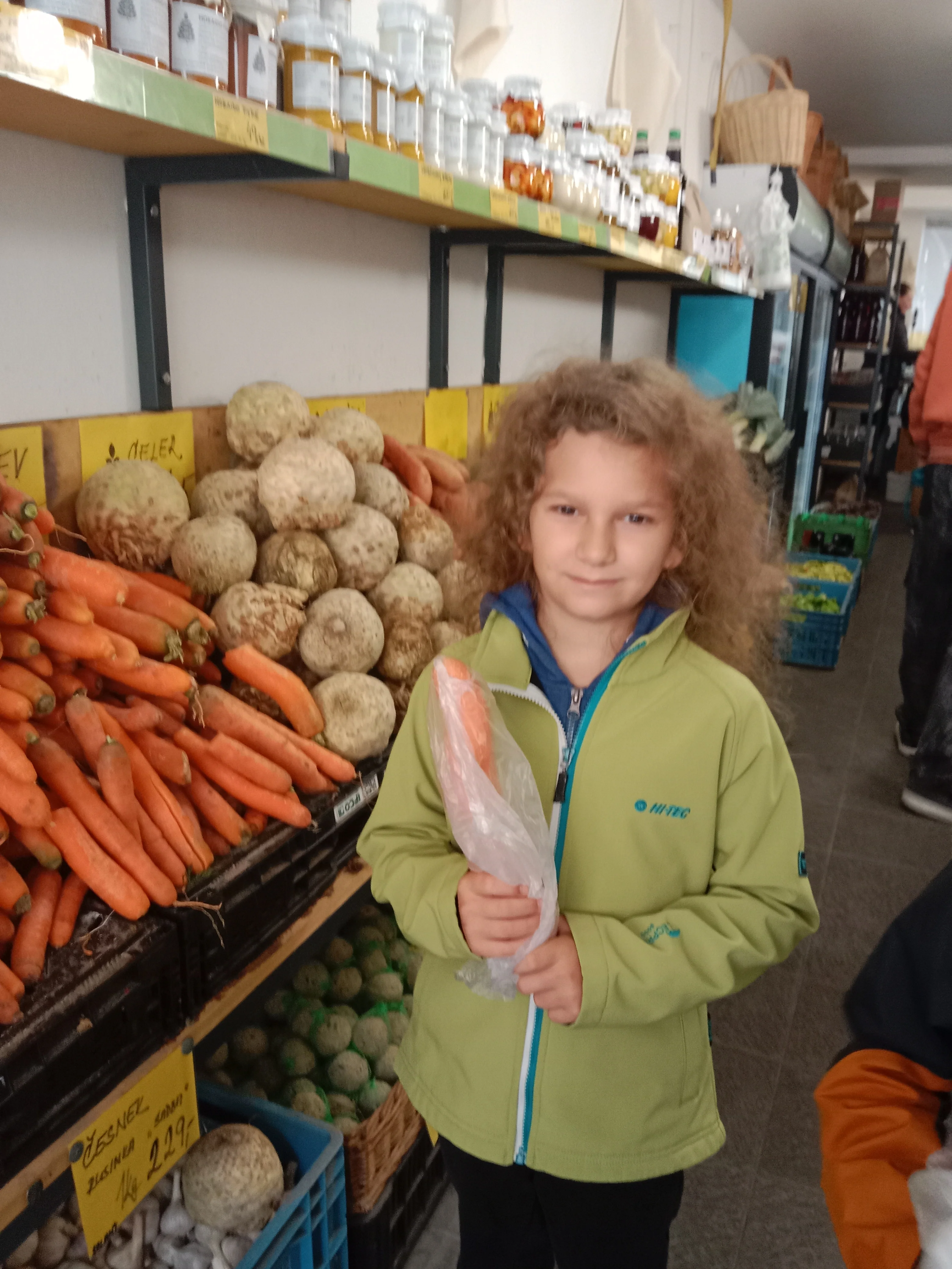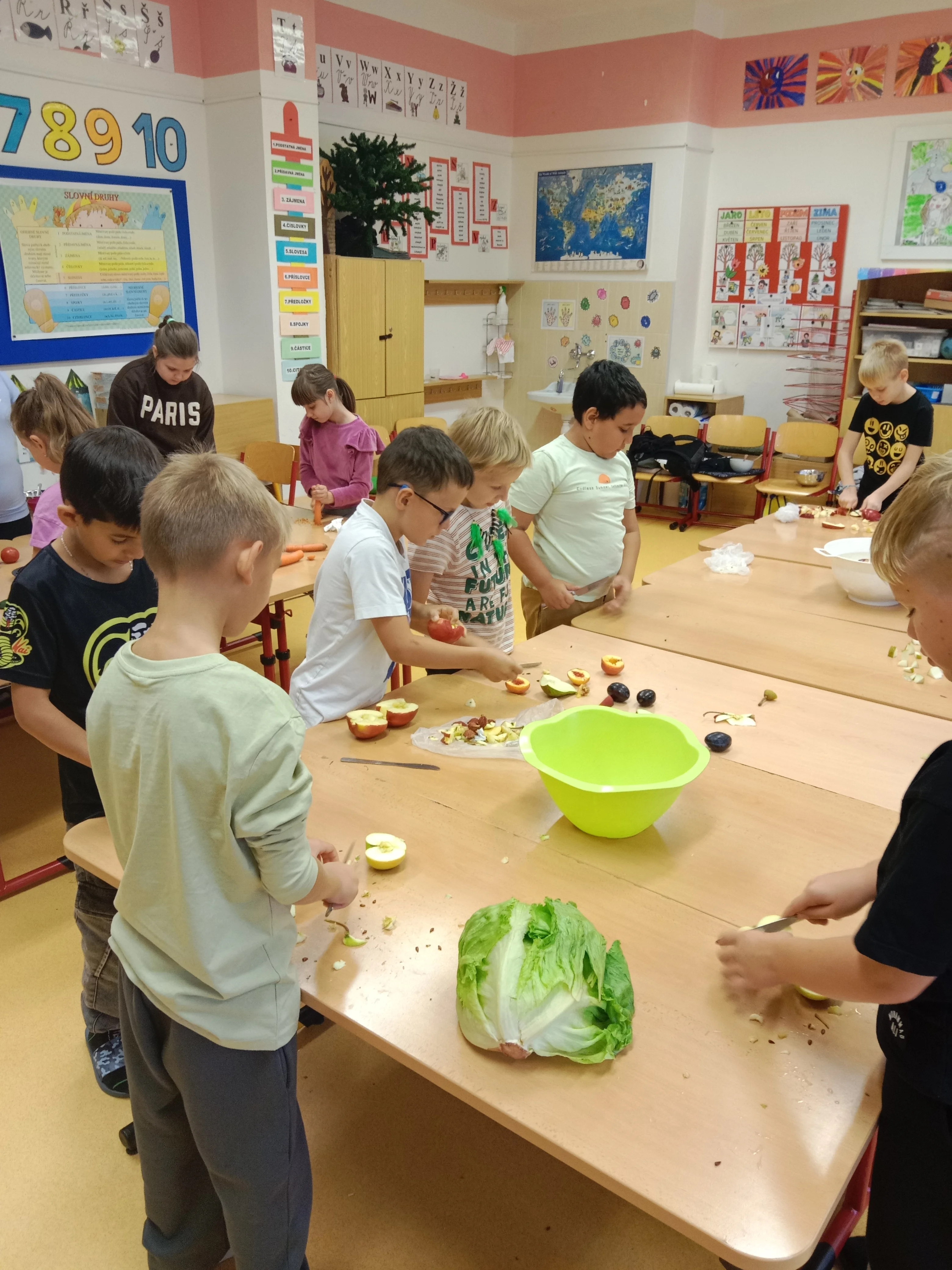V rámci projektu Zdravá strava se žáci vydali na nákup regionálních výrobků do farmářského obchodu a vyzkoušeli si, jak naplánovat nákup, počítat ceny a rozhodovat se, co je zdravé k výrobě ovocného salátu s čerstvým ledovým salátem a jogurtem.