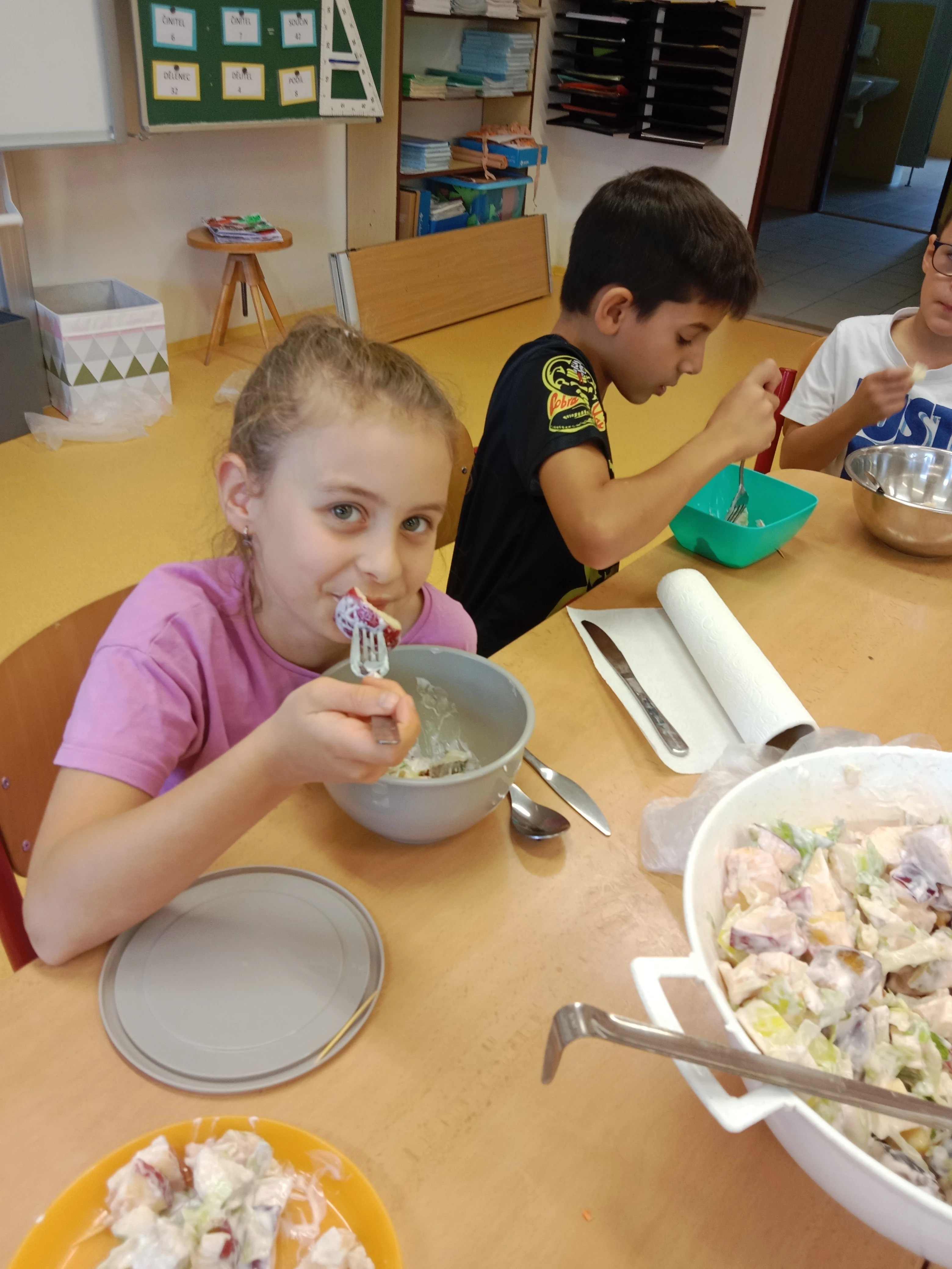 Každý přiložil ruku k dílu a zdravý salát zmizel z misek a talířů dříve než zazvonilo.