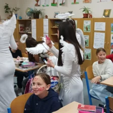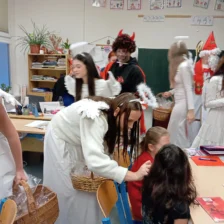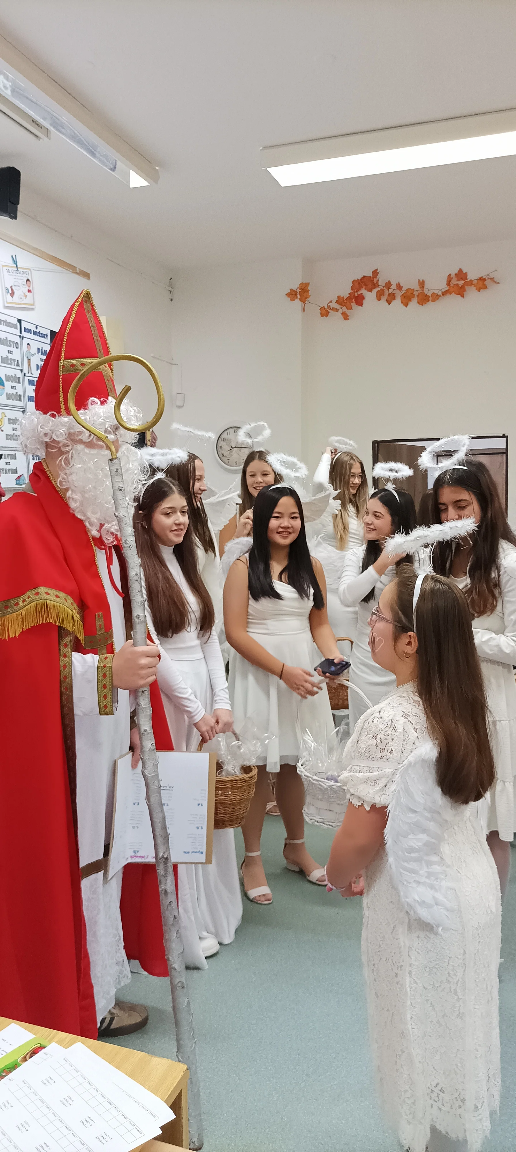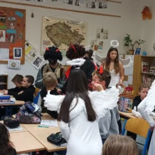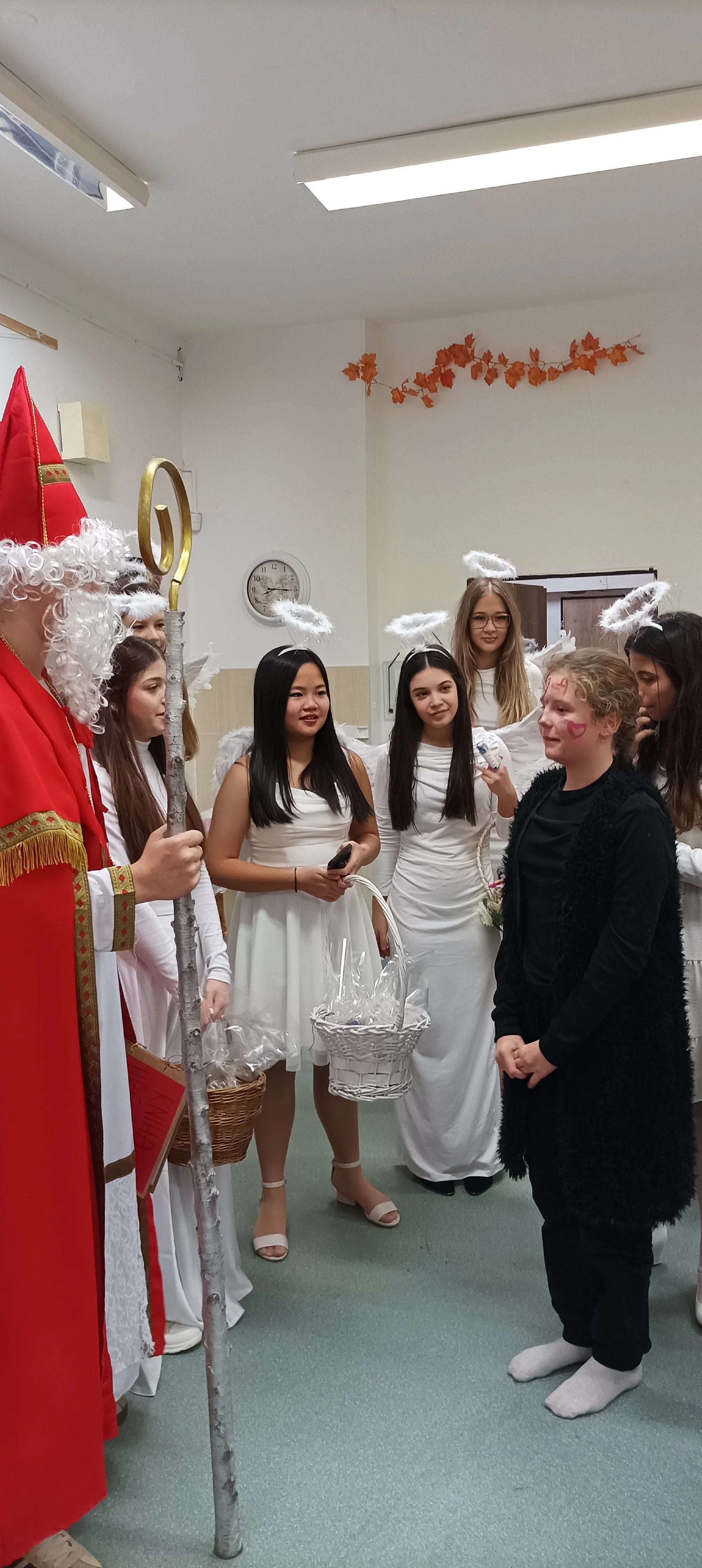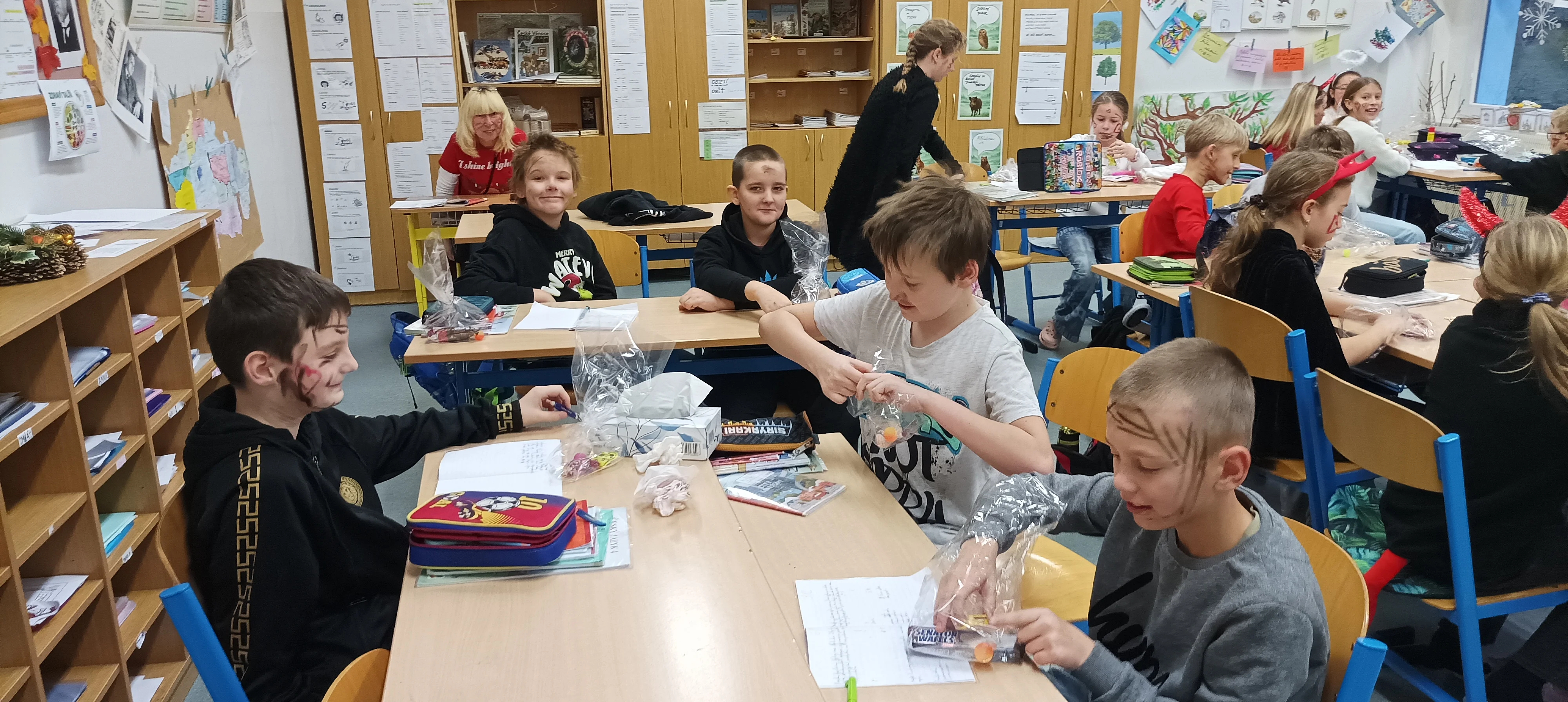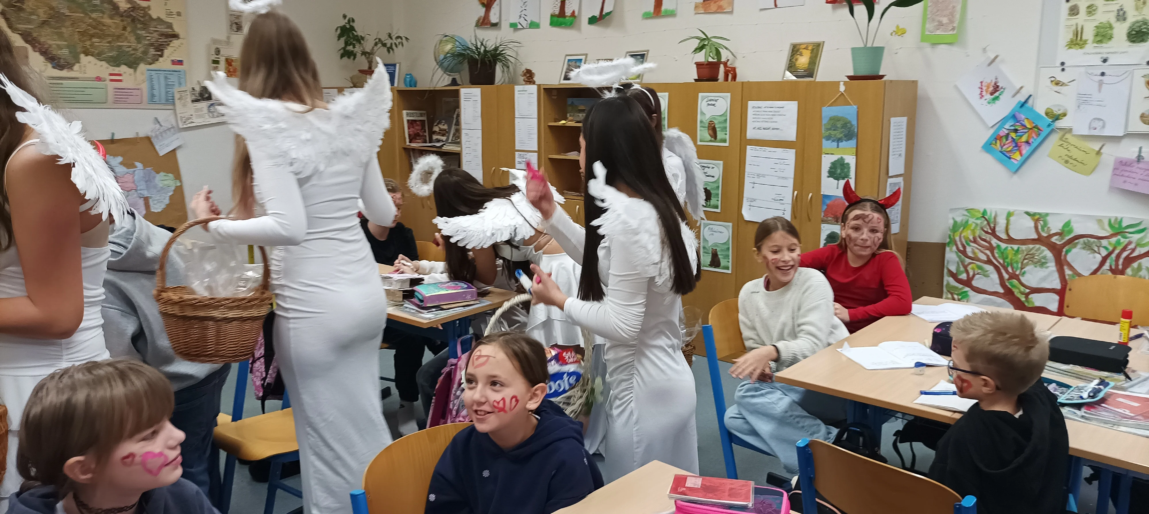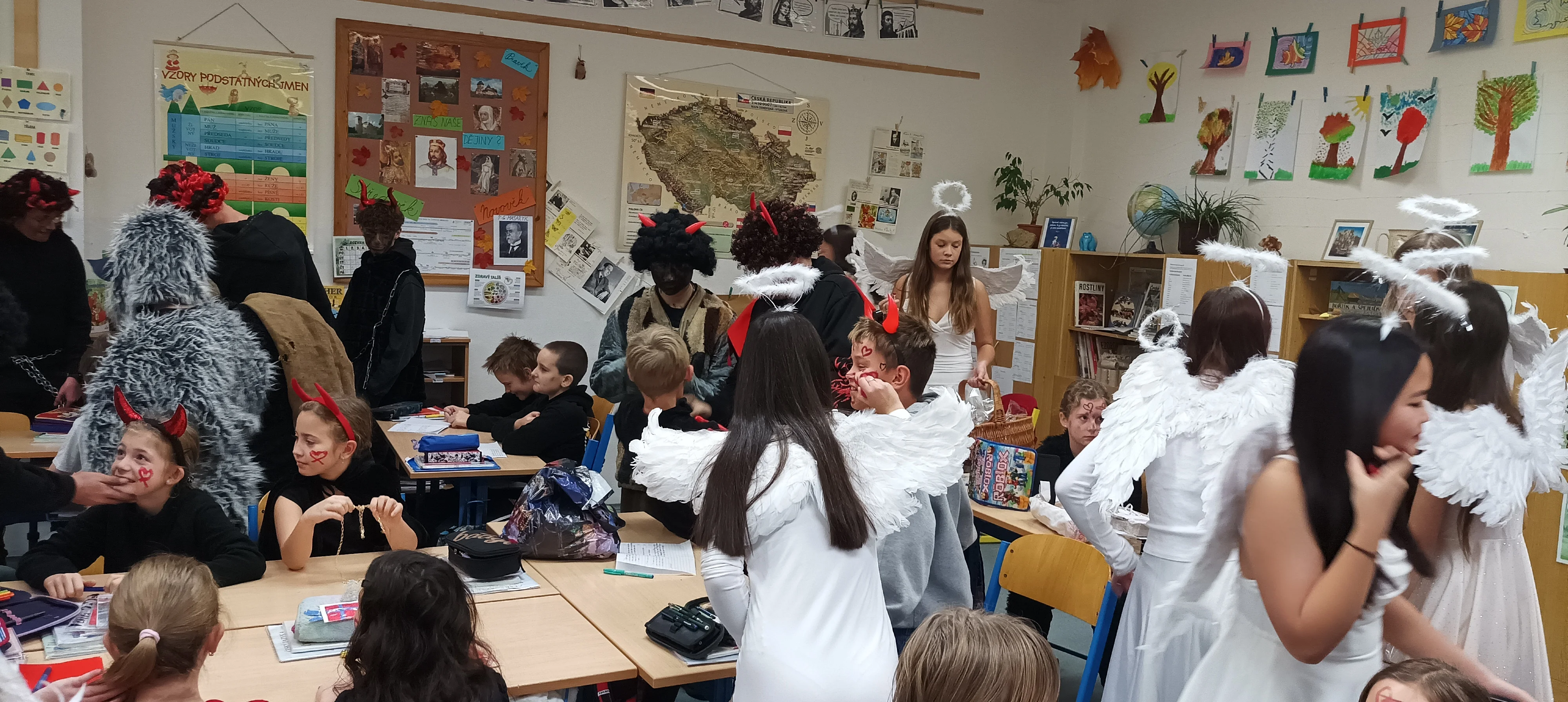 Mikulášskou nadílku pro nás připravili žáci devátých tříd, čertů bylo požehnaně, ale naštěstí i andělů se dostavilo dost:). Bohužel pár dětí skončilo v pytli, a tak doufejme, že se polepší a příští rok v pytli nikdo neskončí.