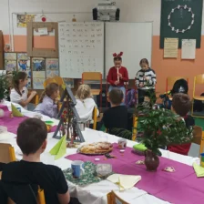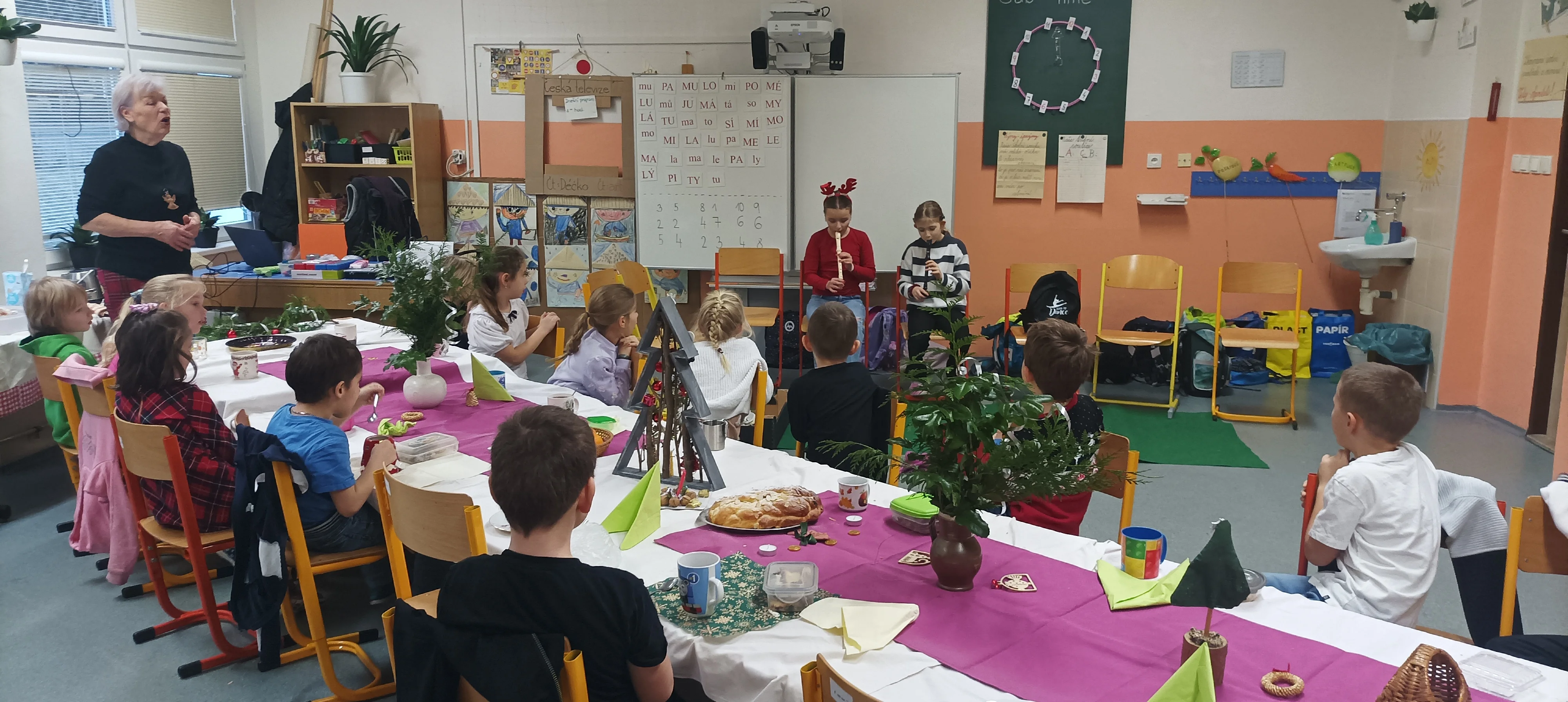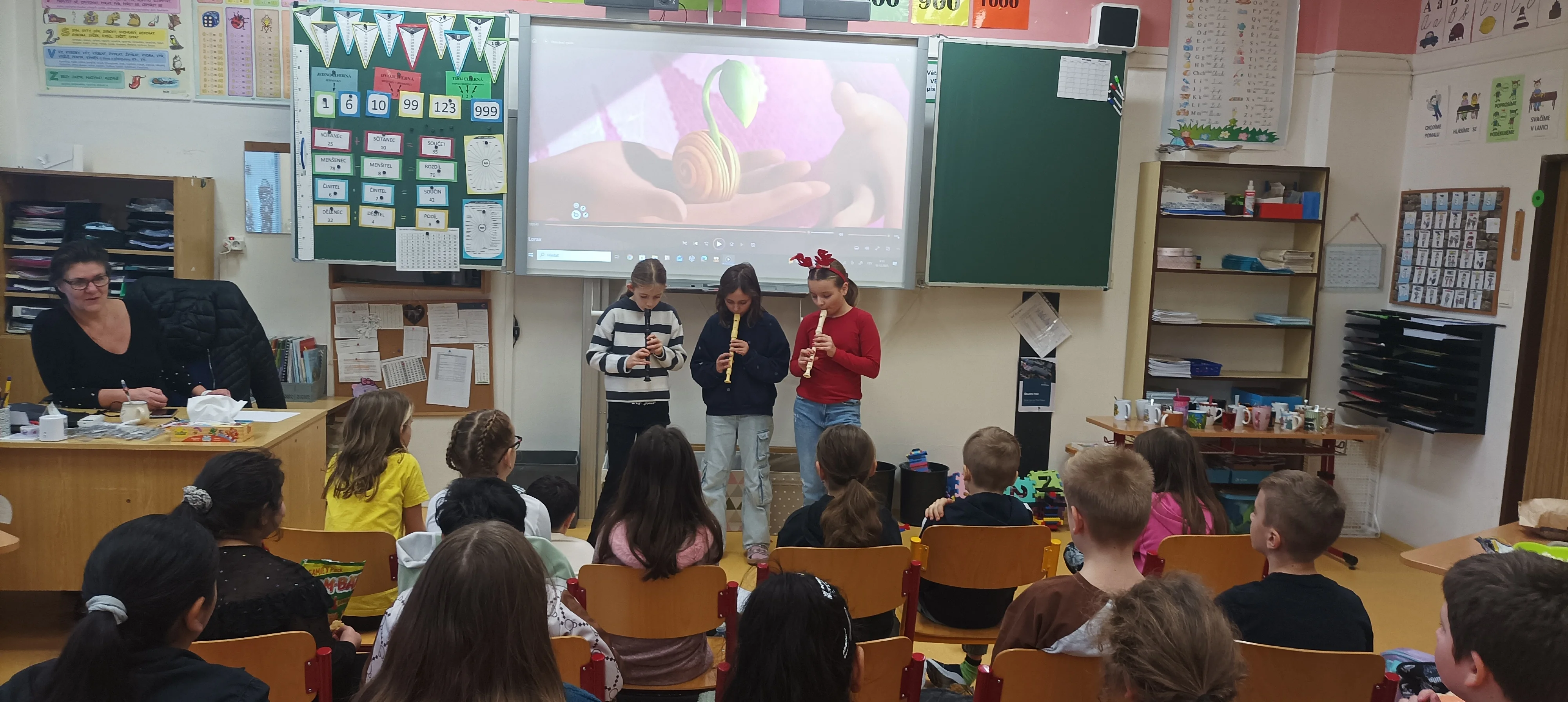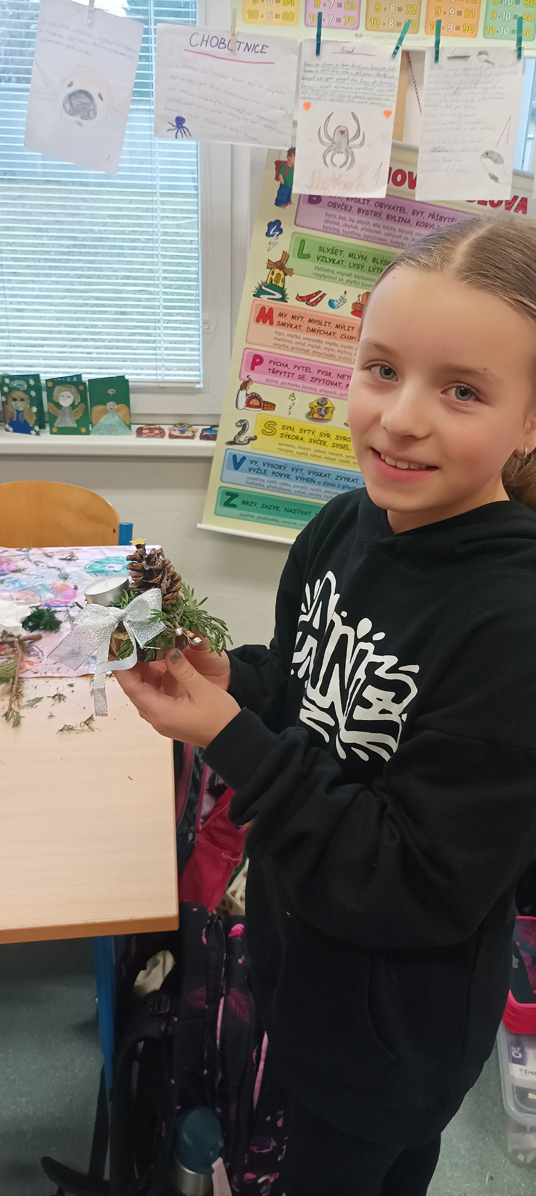 Předvánoční čas jsme trávili vyráběním přáníček, vánočních betlémků, ochutnáváním cukroví, rozbalováním dárečků a posloucháním koled. Děvčata, která umí hrát na flétnu, zahrála koledy nejen kamarádům ve své třídě, ale i dětem v jiných třídách 1. stupně. Povídali jsme si o původu vánočního stromečku, zúčastnili jsme se aktivit s vánoční tématikou, které byly zaměřeny na matematiku a český jazyk. Krásné svátky všem přeje 4. A 🙂