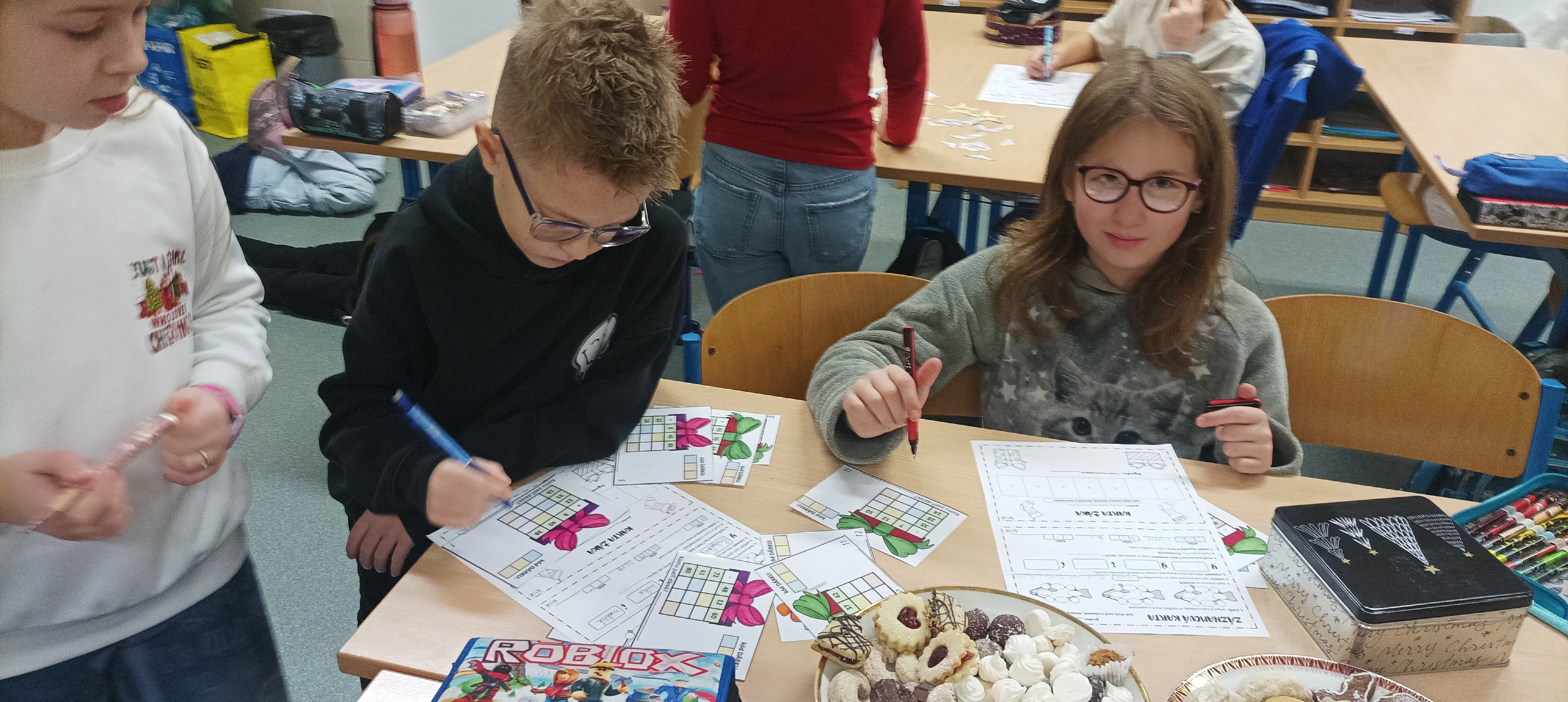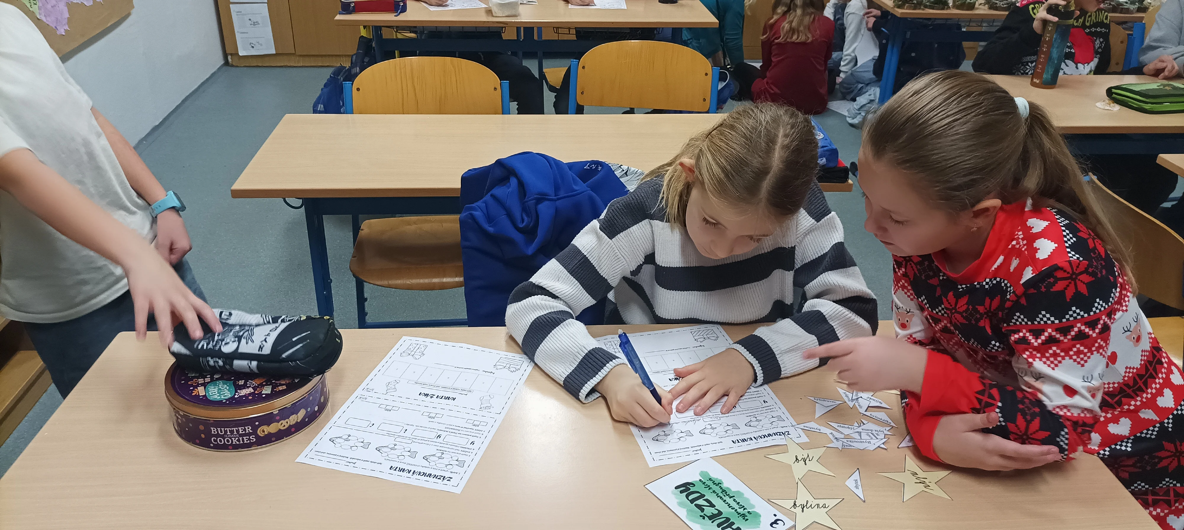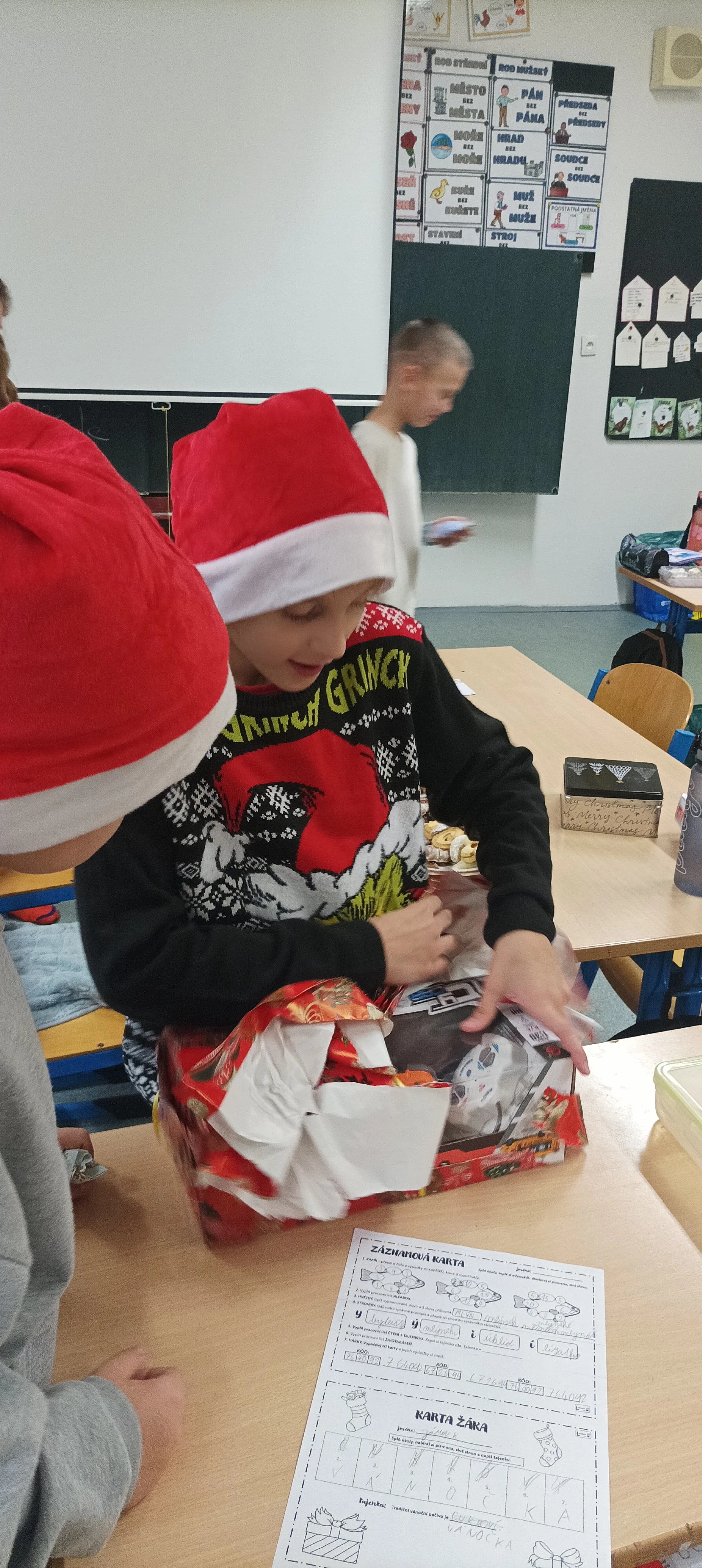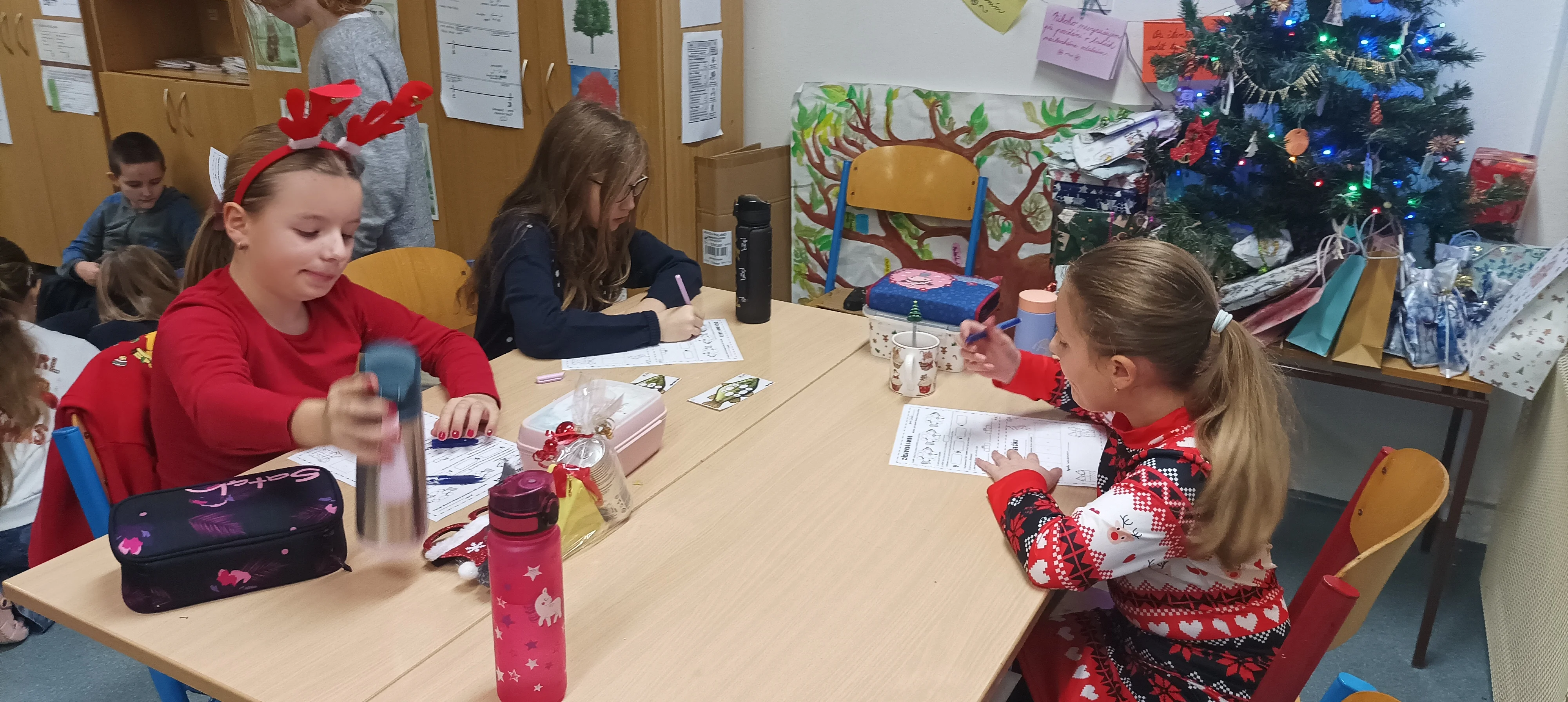 Předvánoční čas jsme trávili vyráběním přáníček, vánočních betlémků, ochutnáváním cukroví, rozbalováním dárečků a posloucháním koled. Děvčata, která umí hrát na flétnu, zahrála koledy nejen kamarádům ve své třídě, ale i dětem v jiných třídách 1. stupně. Povídali jsme si o původu vánočního stromečku, zúčastnili jsme se aktivit s vánoční tématikou, které byly zaměřeny na matematiku a český jazyk. Krásné svátky všem přeje 4. A 🙂