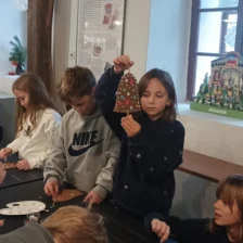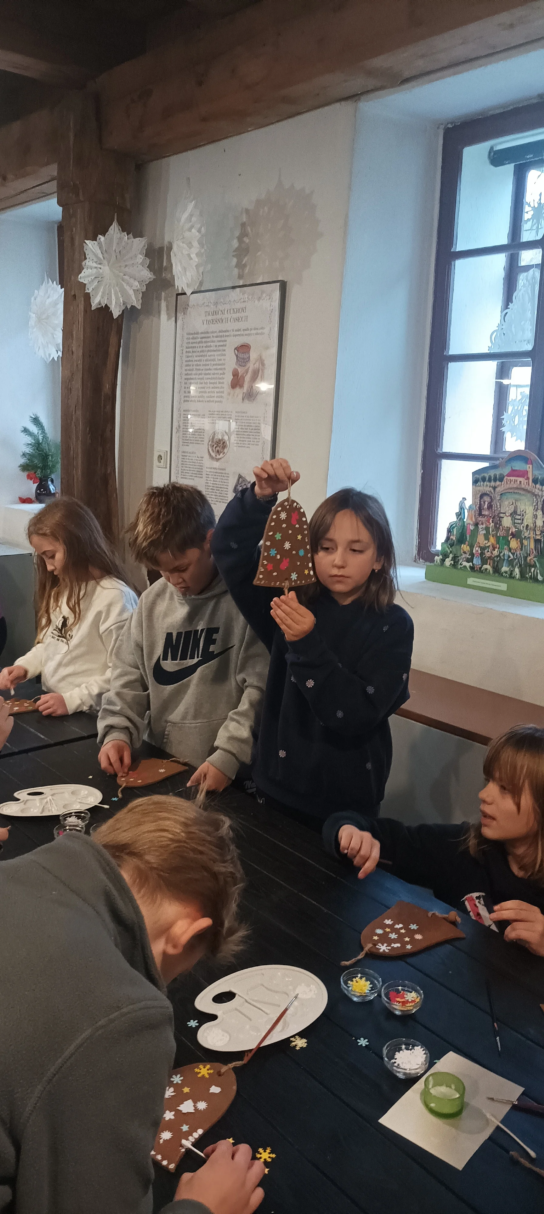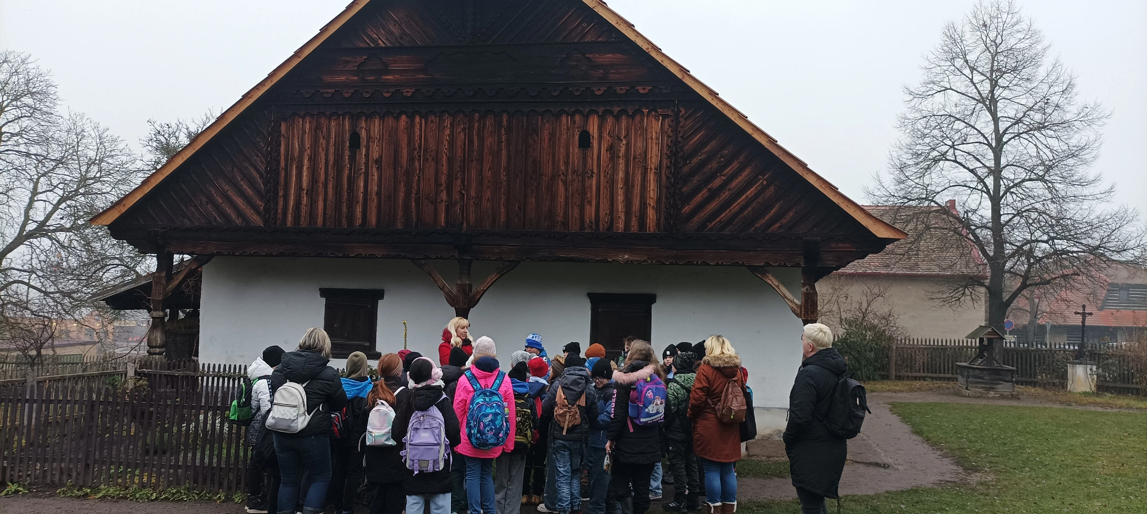 Ve čtvrtek 4.12. jsme vyrazili do Polabského muzea. S žáky jsme se vrátili do dob starých chaloupek, řemesel, tradic a skromného života vesničanů. Mohli jsme se podívat na to, jak se dříve žilo, co bylo pro lidi důležité, jaké měli hodnoty i tradice. Paní průvodkyně nám ukázala jednotlivé chalupy a představila nám nejen to, jak se dříve žilo, ale i které svátky naši předci ctili, jako například svátek sv. Mikuláše, sv. Kateřiny a sv. Barbory a s nimi spojené tradice. Dozvěděli jsme se, proč se při štědrovečerní večeři dávalo seno pod stůl či proč byla rodina spojena řetězem….Podívali jsme se i do staré školy a dověděli jsme se, že škola byla dříve opravdu odlišná od té dnešní, že byla dětmi vnímána pozitivně, protože si tam mohly tak trochu odpočinout od práce, která jim byla nakládána doma. K závěru si každý mohl ozdobit keramický zvoneček, který zhotovili handicapovaní lidé v chráněné dílně. Jsem ráda, že děti měly možnost podívat se na tak krásné místo a že se jim výlet líbil:)