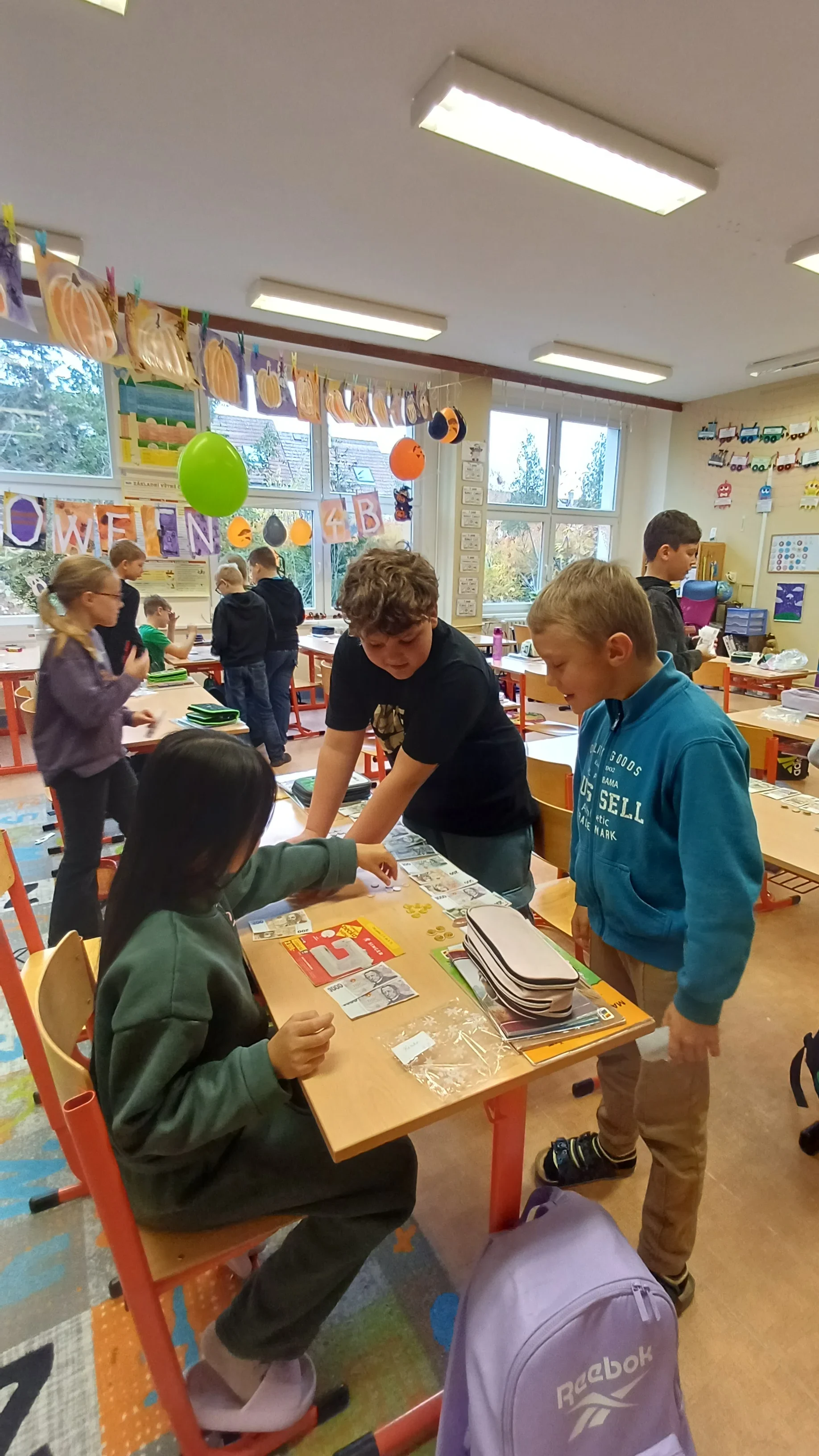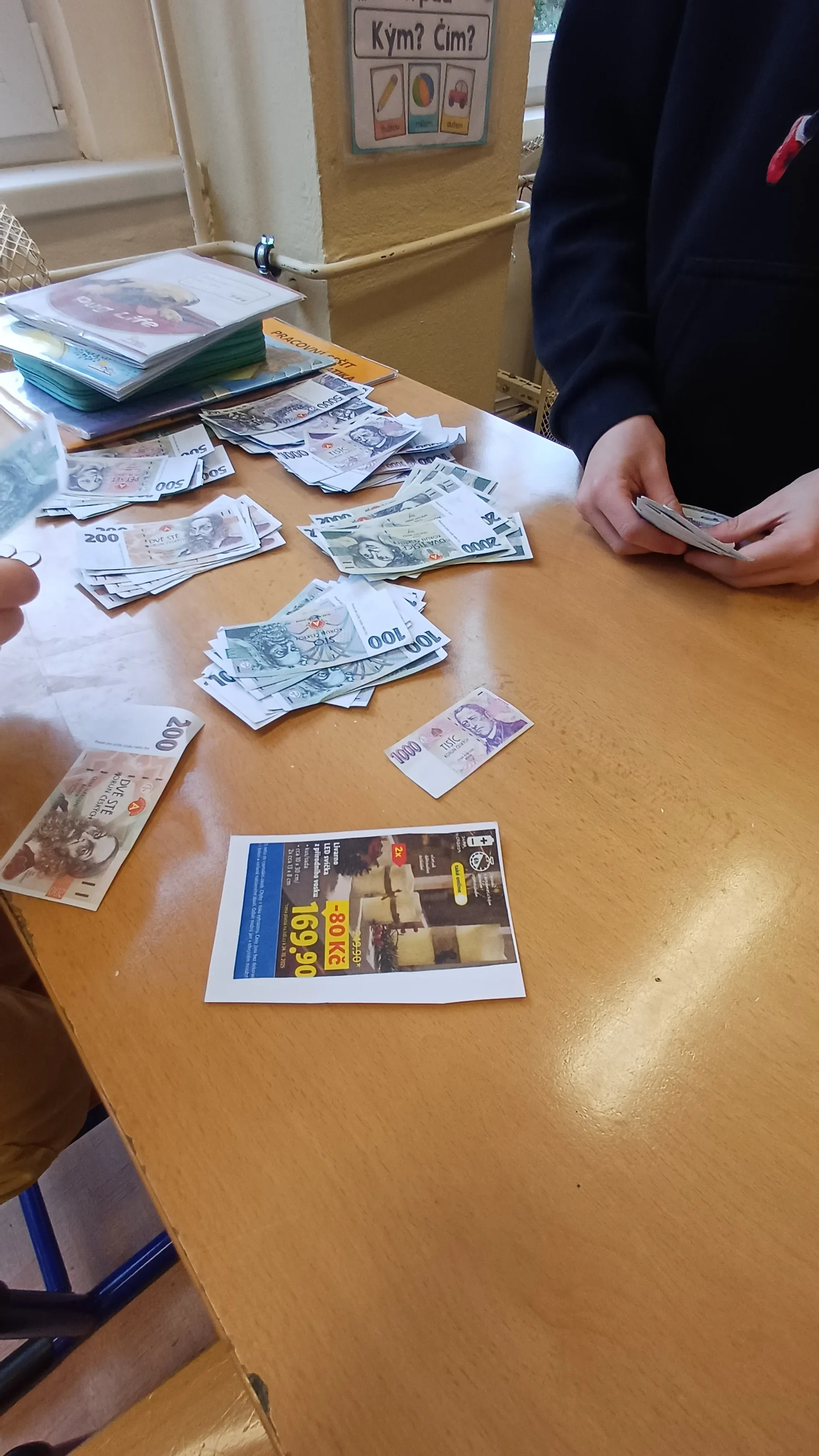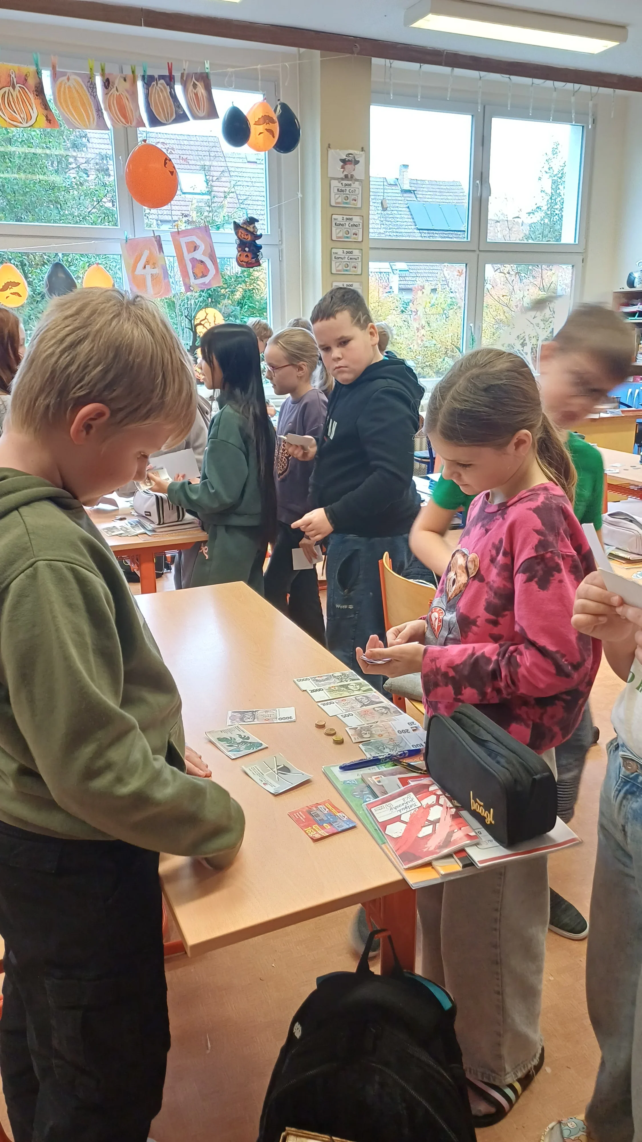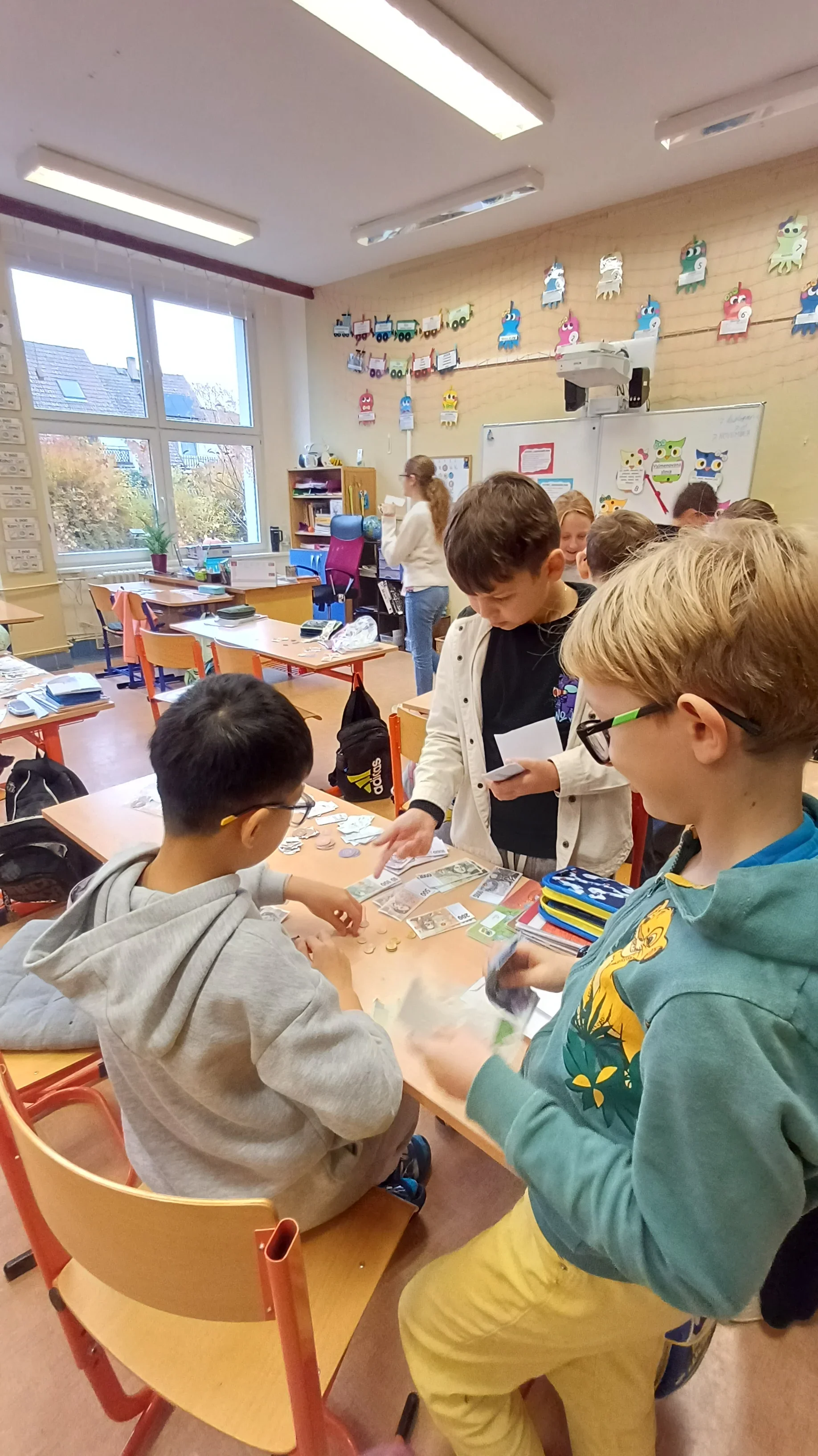 V hodině matematiky jsme se tentokrát zaměřili na praktické dovednosti, které využijeme v běžném životě – práci s penězi a hospodaření. Nejprve jsme si zopakovali hodnoty jednotlivých mincí a bankovek, povídali si o tom, jak správně počítat s různými částkami. Poté jsme řešili modelové situace, které mohou nastat při nakupování. Počítali jsme příklady, ve kterých jsme určovali cenu nákupu, správnou výši vrácených peněz a porovnávali různé možnosti, jak nejvýhodněji zaplatit. Již ve třetí třídě jsme si založili Obchůdek u Lesánka, který byl naším maskotem a ve čtvrté třídě jsme ho opět využili k nakupování a získání praktických dovedností. Hodina byla plna aktivity a situací, díky kterým jsme pochopili, že matematika se opravdu hodí v každodenním životě. 🙂 Žáci 4.B