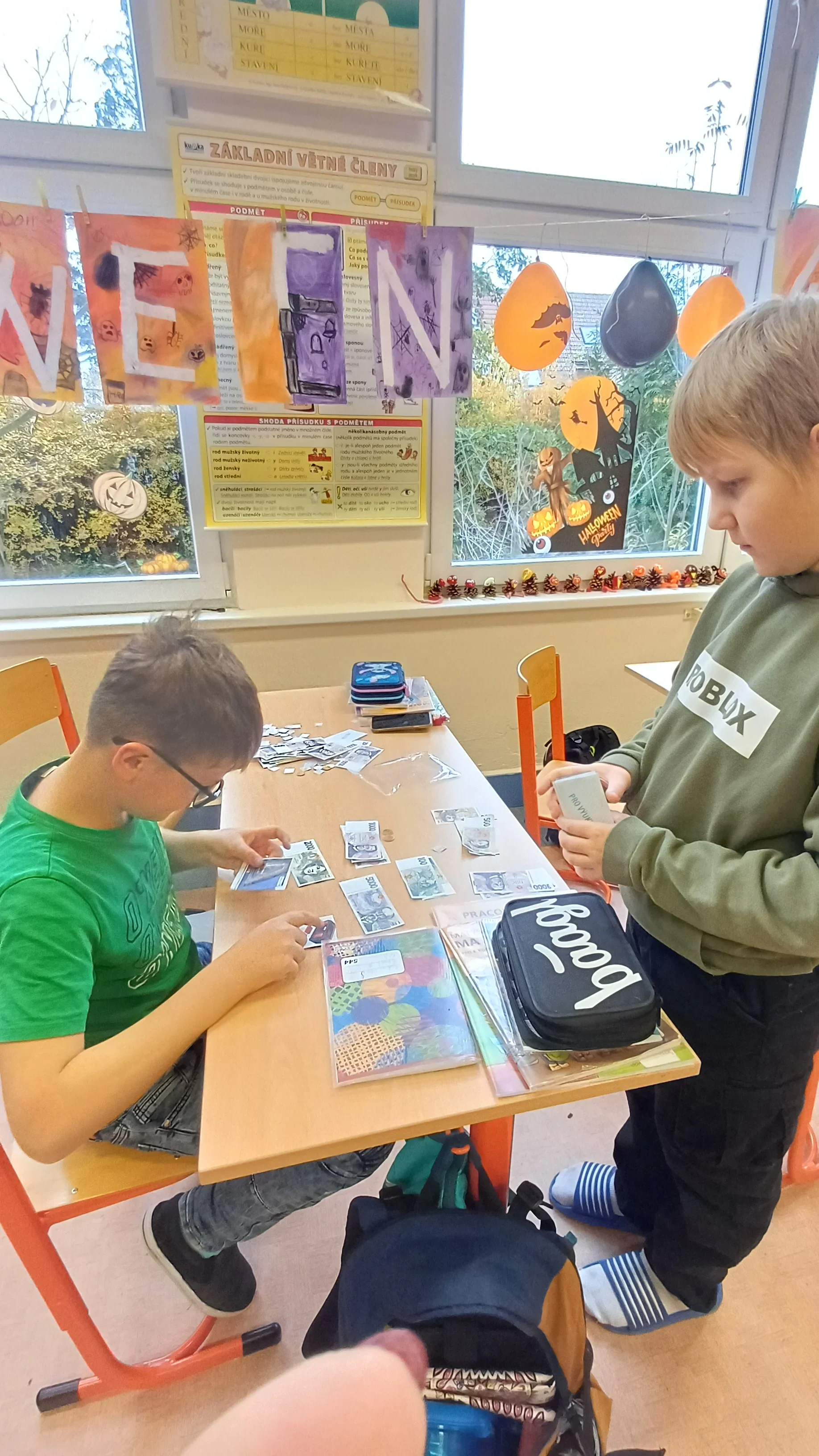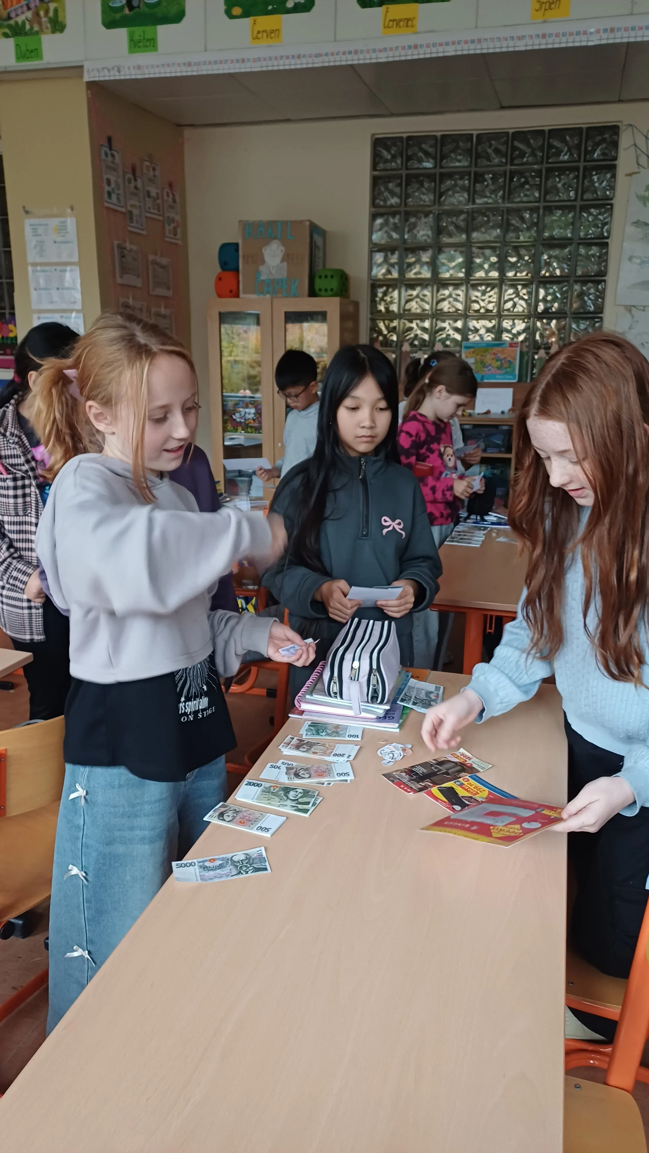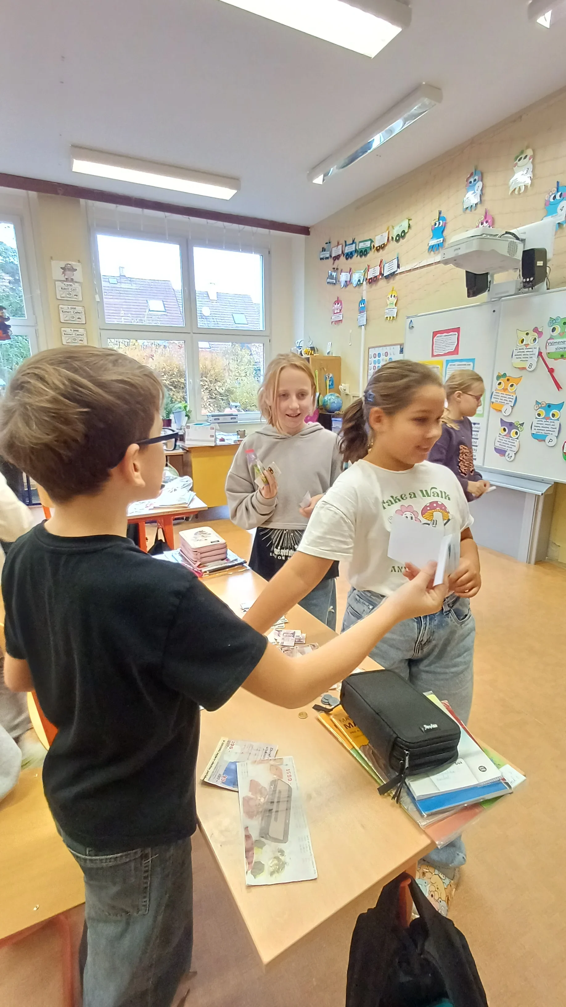 V hodině matematiky jsme se tentokrát zaměřili na praktické dovednosti, které využijeme v běžném životě – práci s penězi a hospodaření. Nejprve jsme si zopakovali hodnoty jednotlivých mincí a bankovek, povídali si o tom, jak správně počítat s různými částkami. Poté jsme řešili modelové situace, které mohou nastat při nakupování. Počítali jsme příklady, ve kterých jsme určovali cenu nákupu, správnou výši vrácených peněz a porovnávali různé možnosti, jak nejvýhodněji zaplatit. Již ve třetí třídě jsme si založili Obchůdek u Lesánka, který byl naším maskotem a ve čtvrté třídě jsme ho opět využili k nakupování a získání praktických dovedností. Hodina byla plna aktivity a situací, díky kterým jsme pochopili, že matematika se opravdu hodí v každodenním životě. 🙂 Žáci 4.B