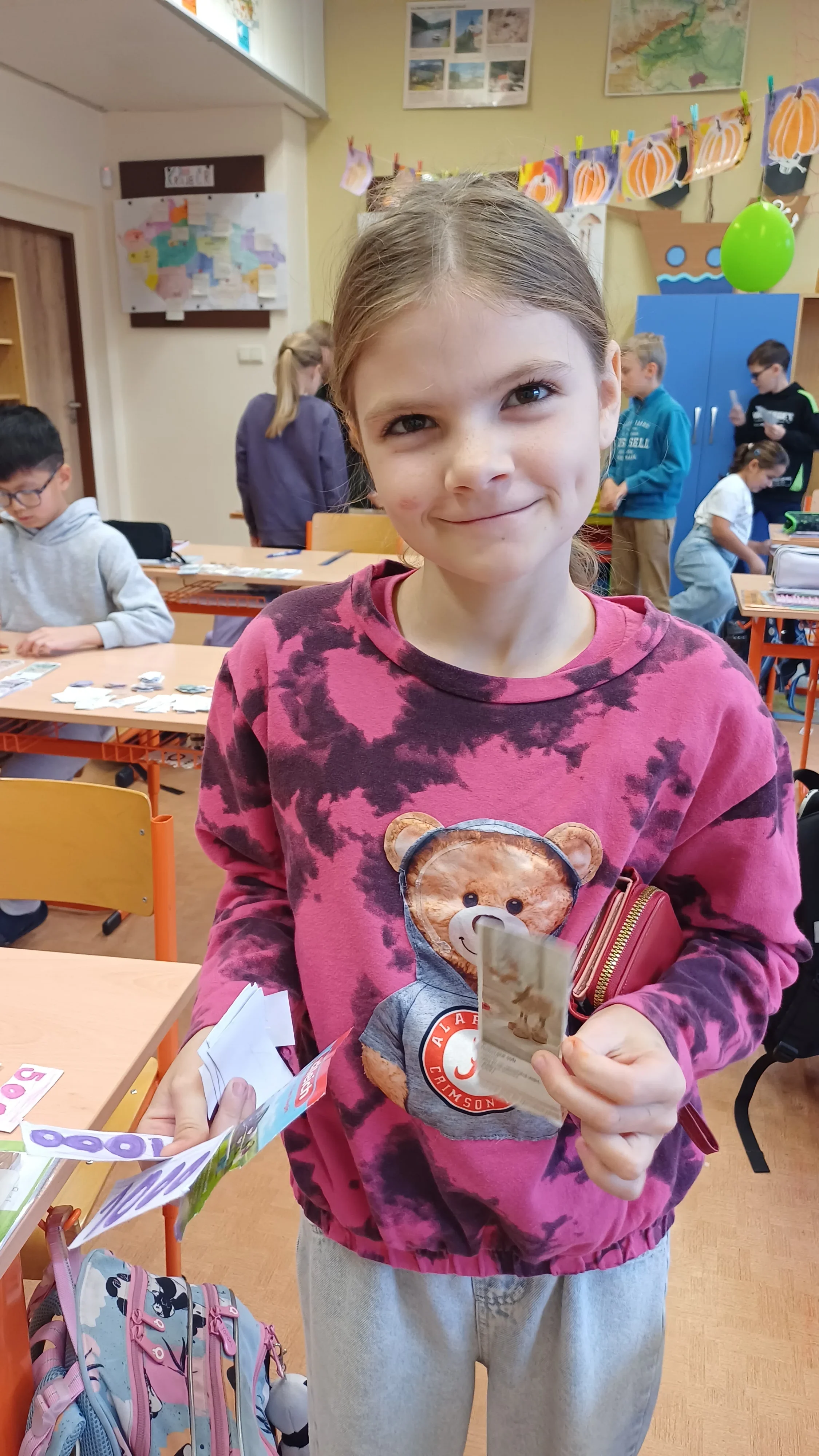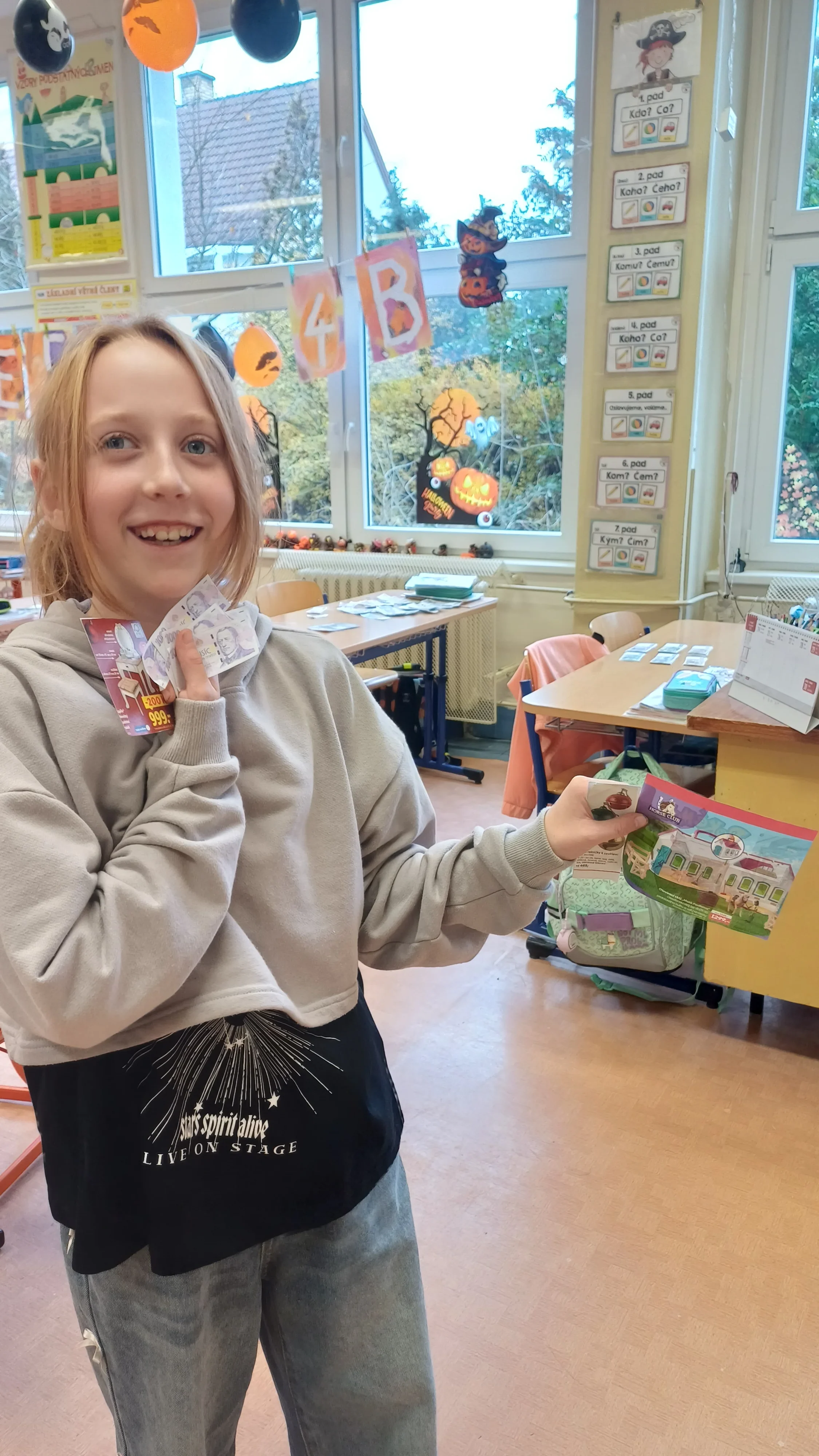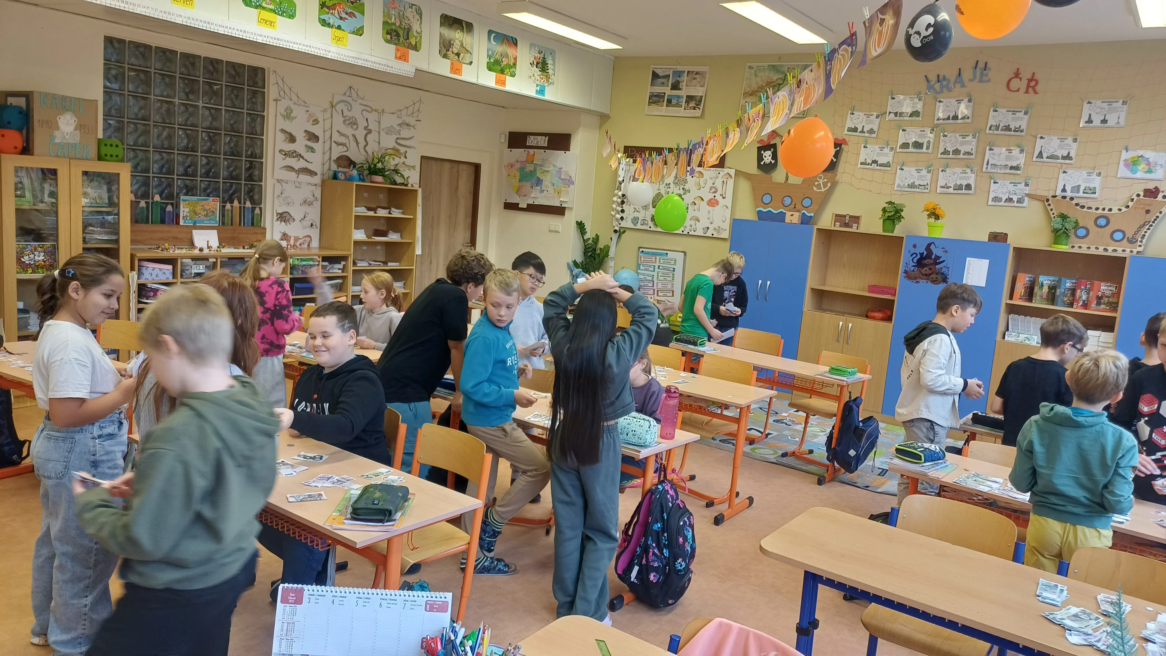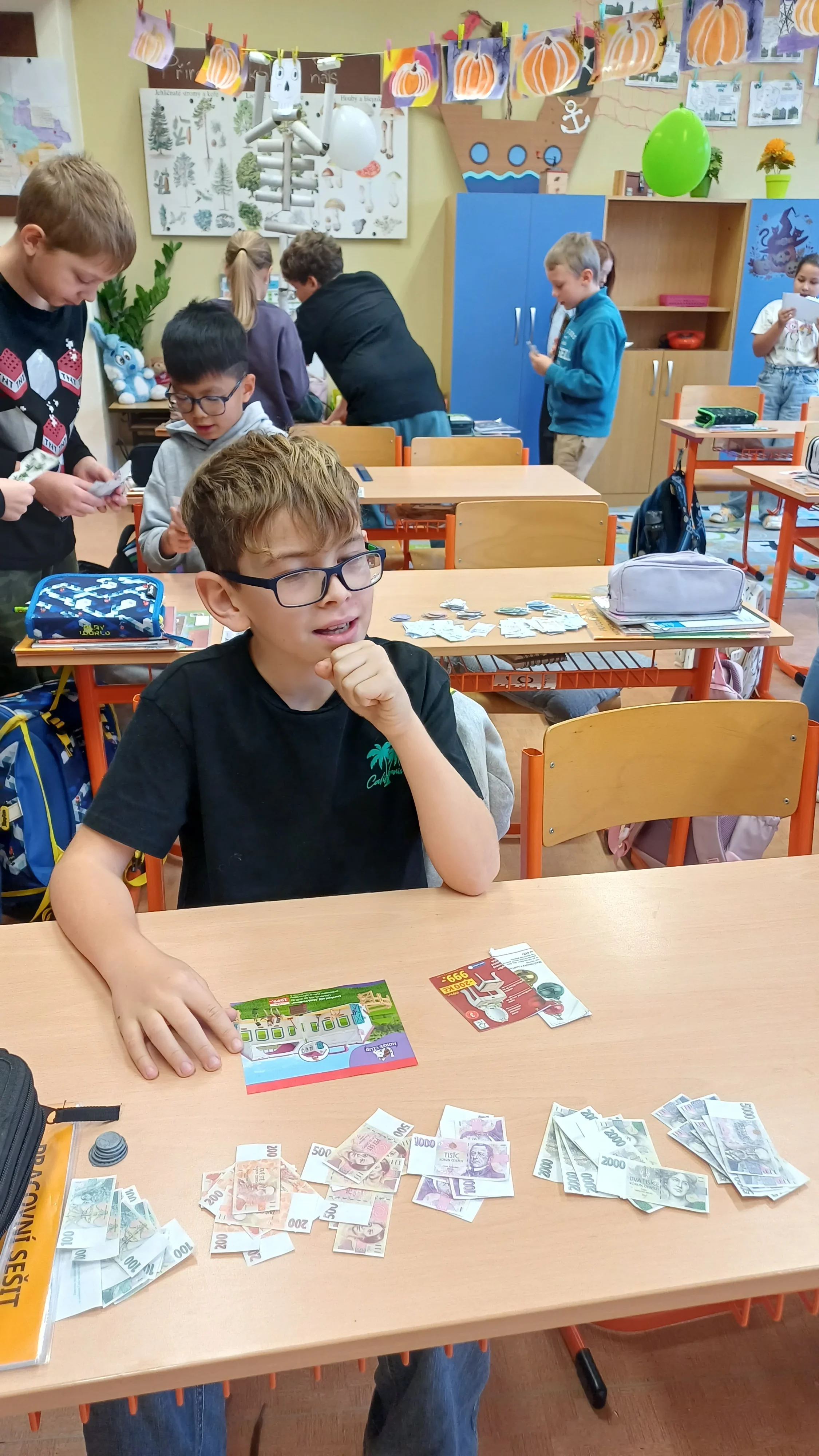 V hodině matematiky jsme se tentokrát zaměřili na praktické dovednosti, které využijeme v běžném životě – práci s penězi a hospodaření. Nejprve jsme si zopakovali hodnoty jednotlivých mincí a bankovek, povídali si o tom, jak správně počítat s různými částkami. Poté jsme řešili modelové situace, které mohou nastat při nakupování. Počítali jsme příklady, ve kterých jsme určovali cenu nákupu, správnou výši vrácených peněz a porovnávali různé možnosti, jak nejvýhodněji zaplatit. Již ve třetí třídě jsme si založili Obchůdek u Lesánka, který byl naším maskotem a ve čtvrté třídě jsme ho opět využili k nakupování a získání praktických dovedností. Hodina byla plna aktivity a situací, díky kterým jsme pochopili, že matematika se opravdu hodí v každodenním životě. 🙂 Žáci 4.B