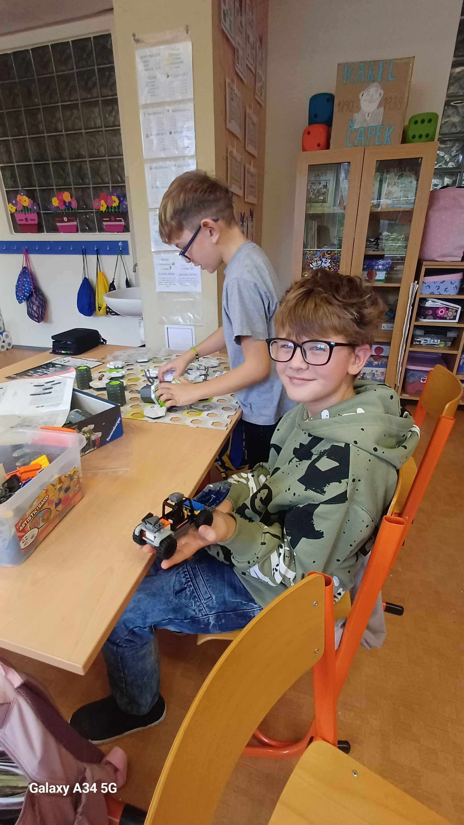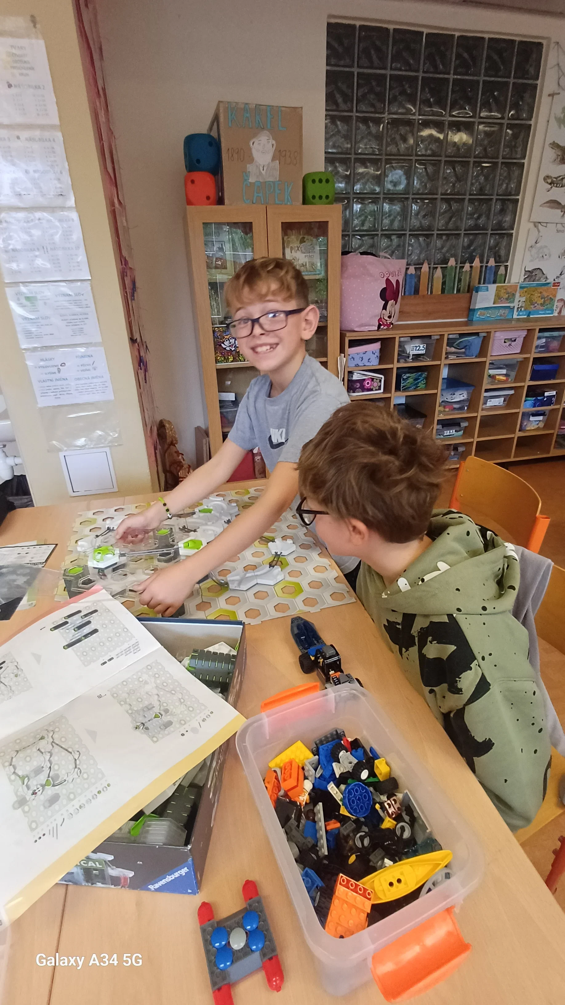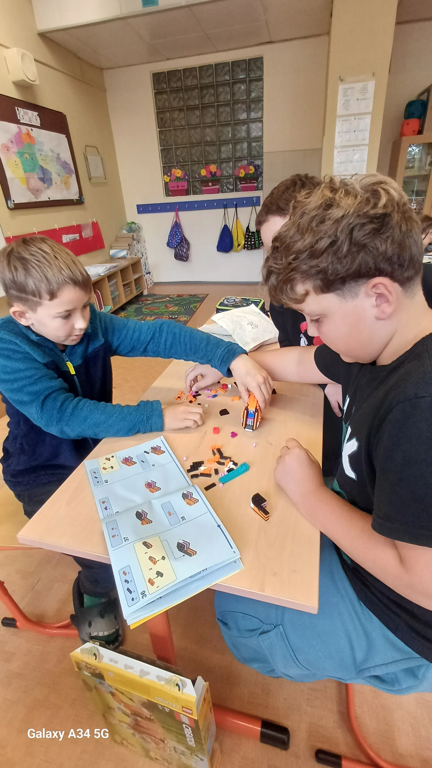 Tak tahle hodina pracovních činností nás hodně bavila. Vypadá to, jako když si jen hrajeme, ale my jsme pomocí stavebnic rozvíjeli naši manuální zručnost, tvořivost, schopnost pracovat, schopnost organizovat si práci, vzájemně si pomáhat. 👍👩👱🧑‍🦰👩‍🦱  Žáci 4.B
