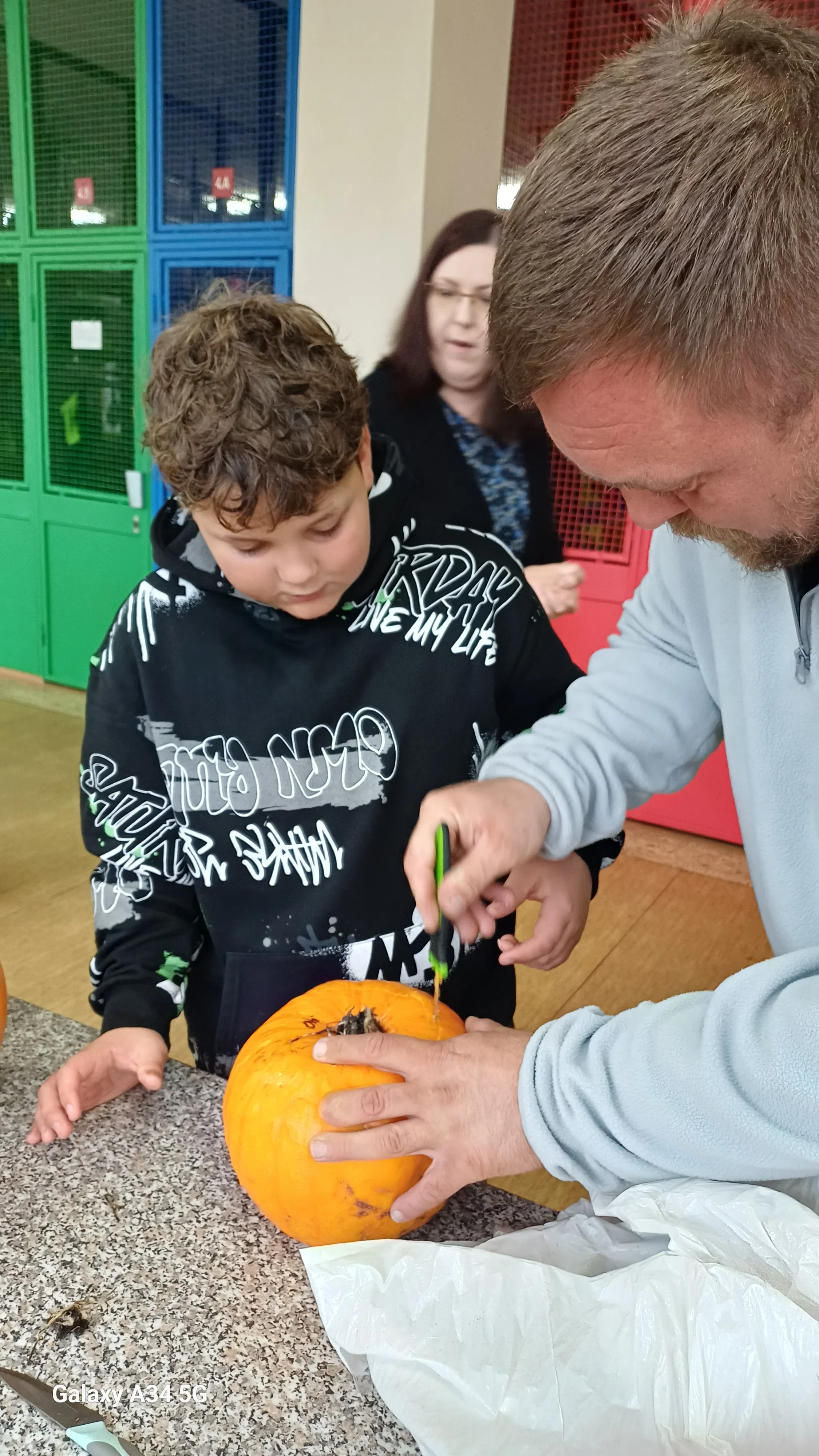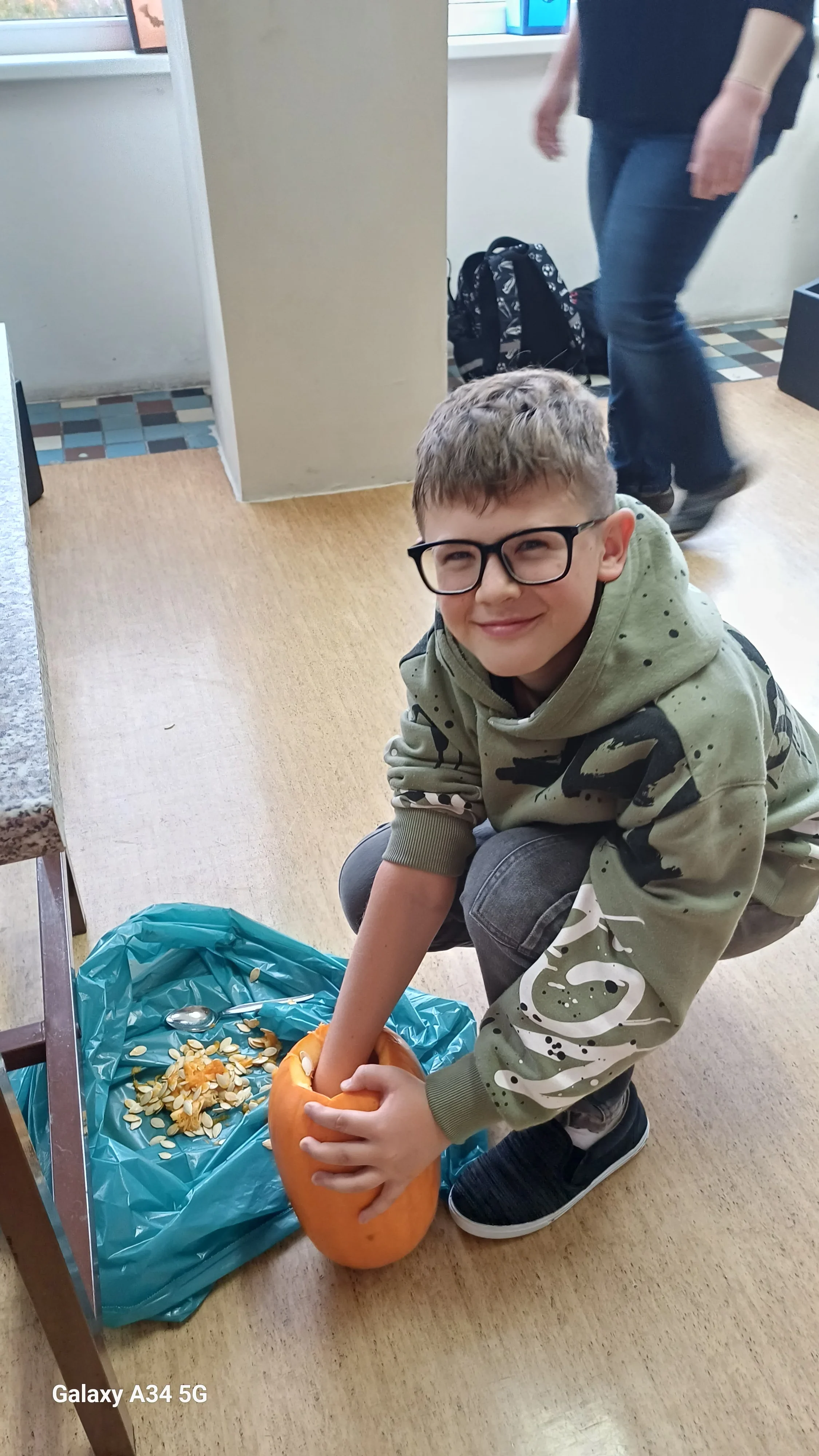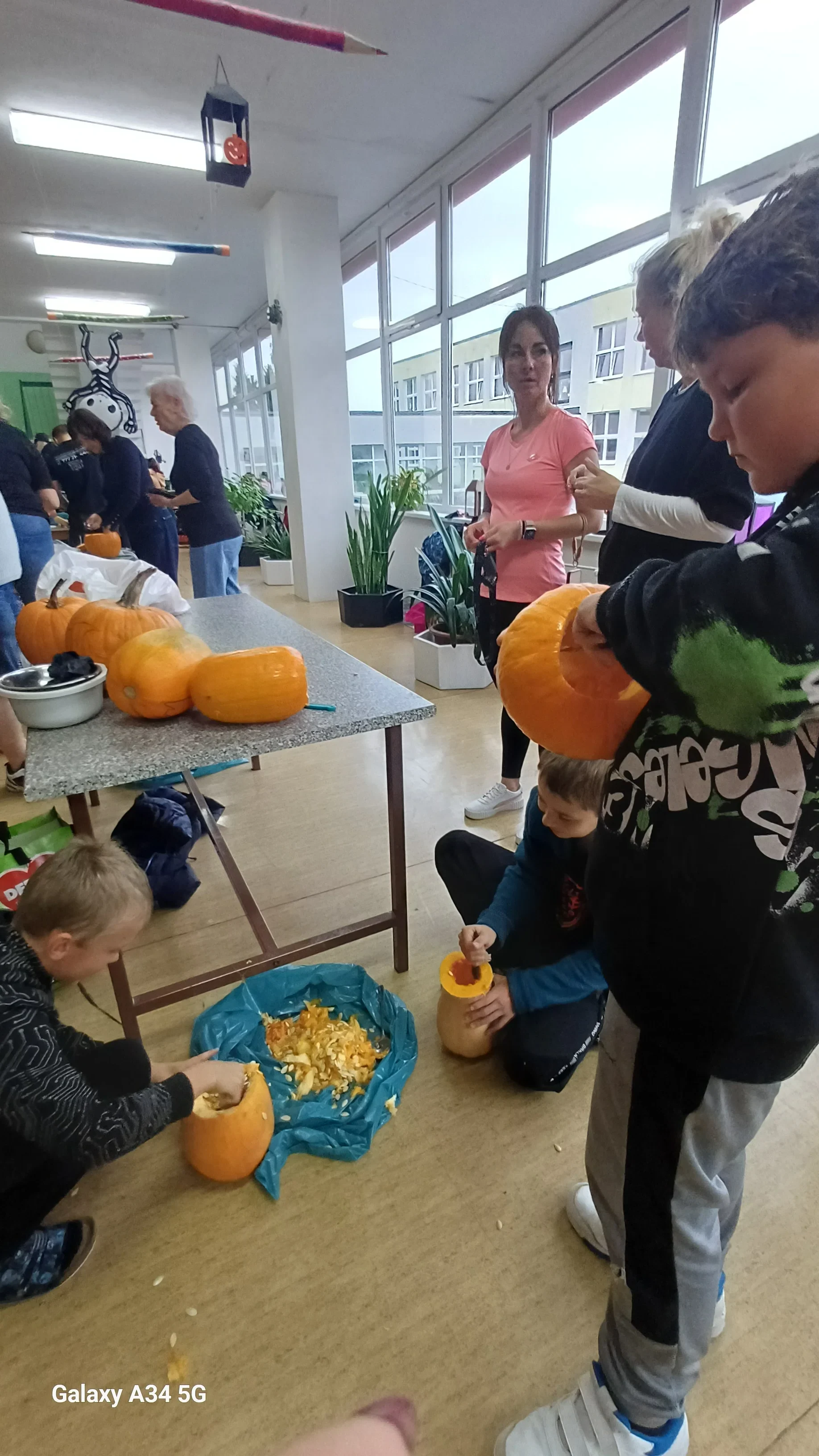 • Ve středu 22.10. jsme v rámci pracovních činností pekli slané pohoštění pro rodiče. Čtvrteční odpoledne se na naší škole konala akce Dlabání dýní s rodiči. 🍁🍂🪾☕️🥮🎃 Žáci 4.B