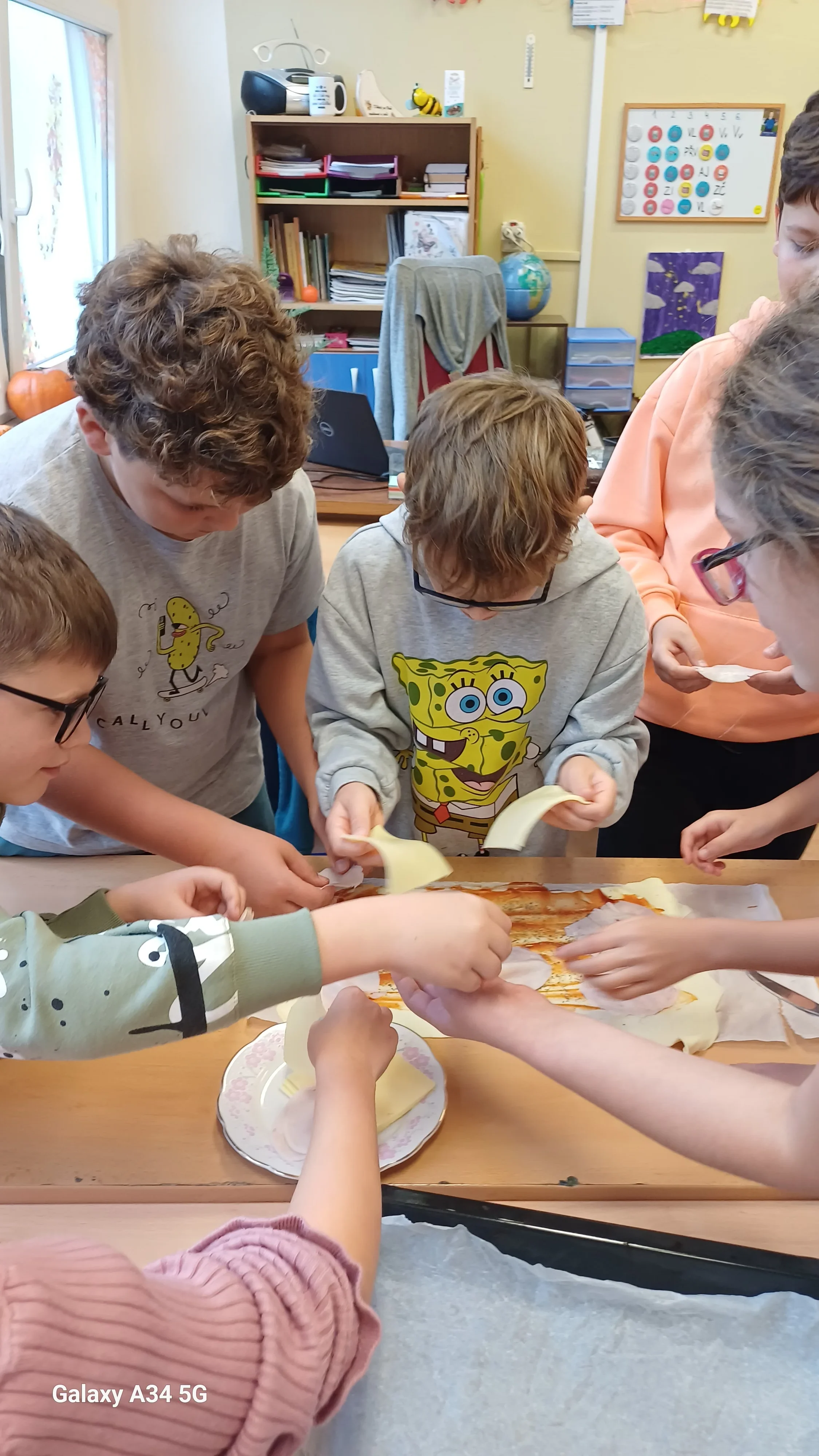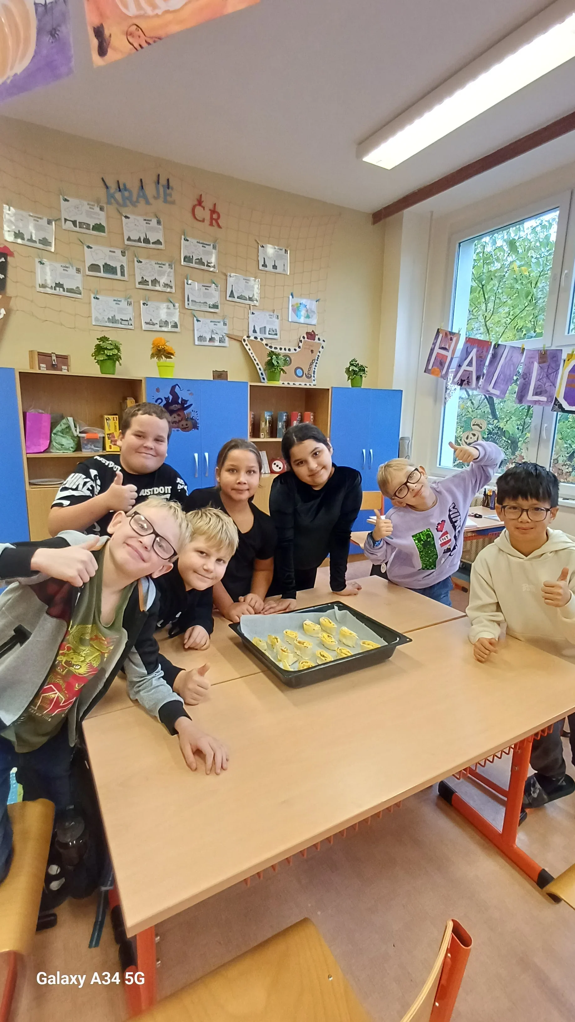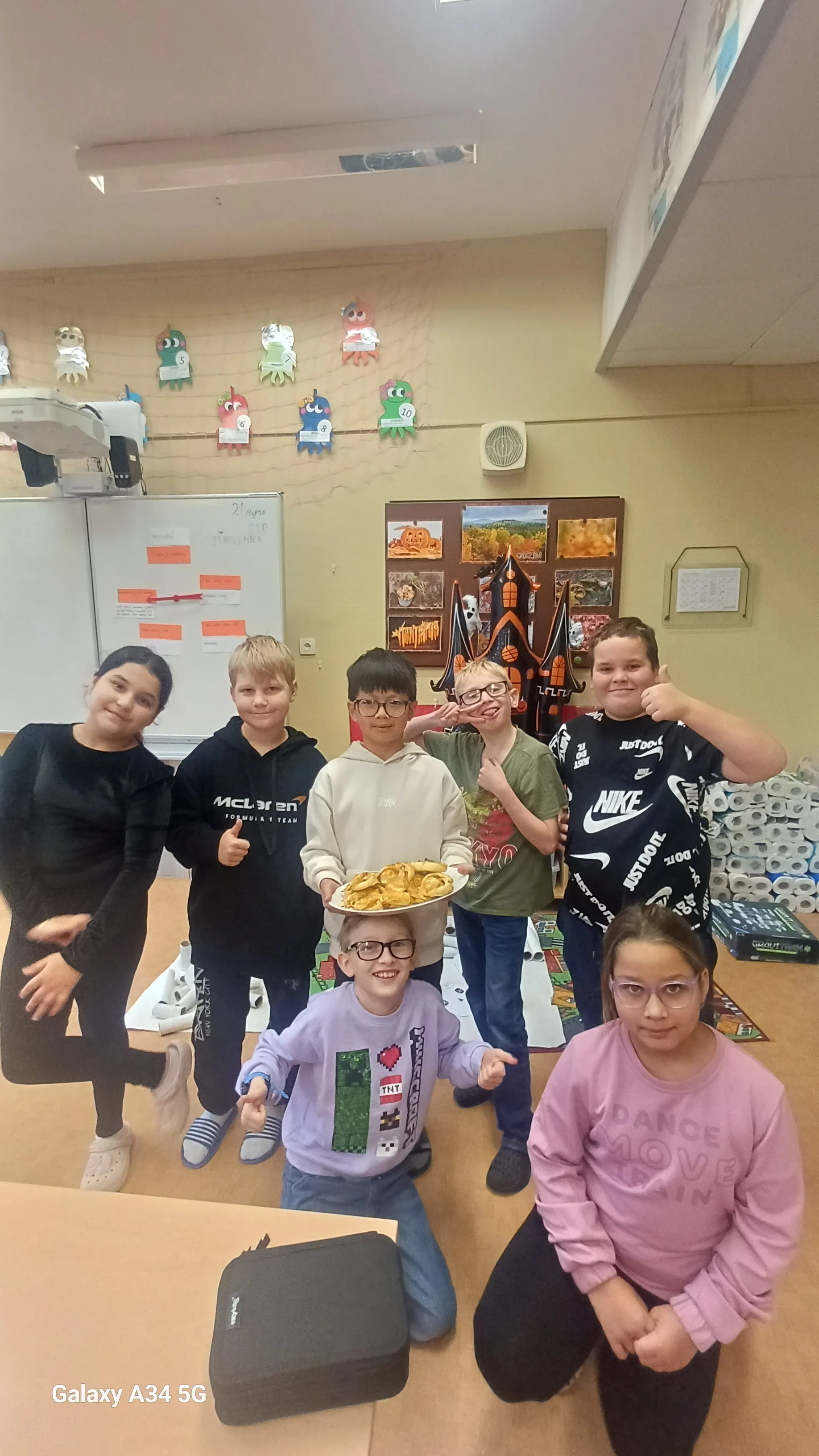 • Ve středu 22.10. jsme v rámci pracovních činností pekli slané pohoštění pro rodiče. Čtvrteční odpoledne se na naší škole konala akce Dlabání dýní s rodiči. 🍁🍂🪾☕️🥮🎃 Žáci 4.B