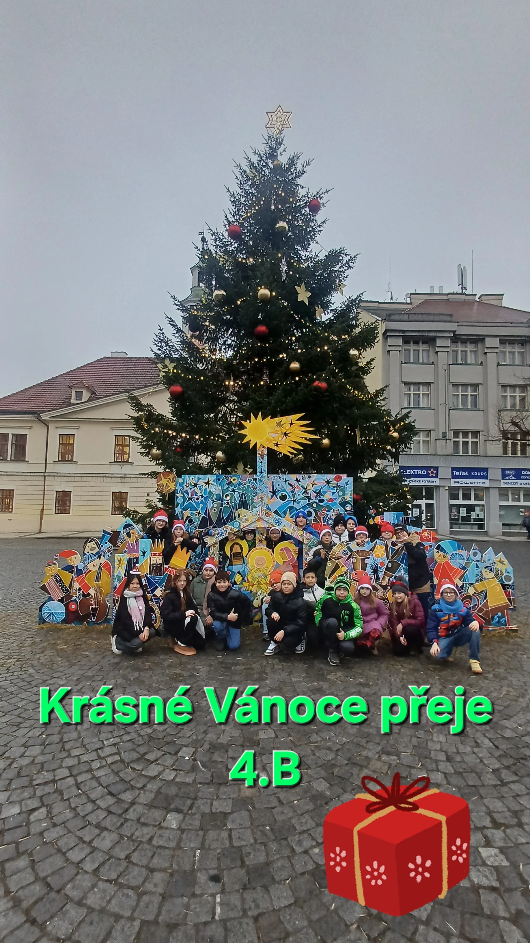 Naše vánoční besídka proběhla v příjemné a sváteční atmosféře. Společně jsme si užili předvánoční chvíle plné pohody a radosti. Součástí besídky byla také krátká prohlídka města, které bylo krásně vyzdobené vánočními dekoracemi a světly. Přejeme všem krásné prožití vánočních svátků. Žáci 4.B společně s paní učitelkou a paní asistentkou🎄