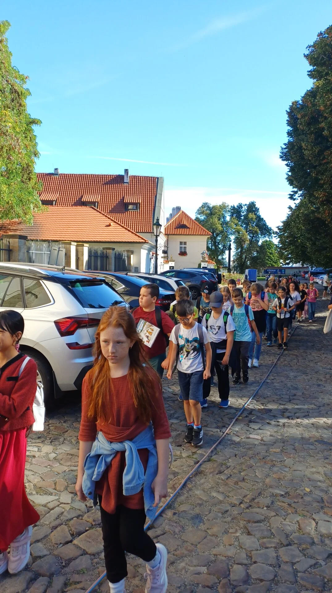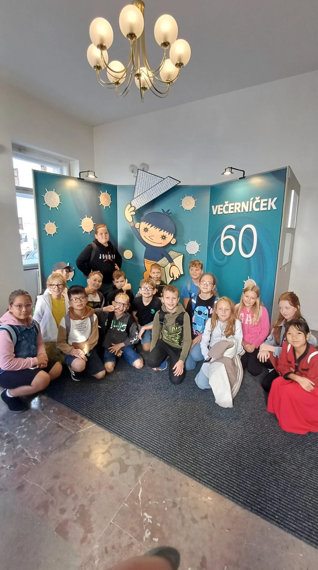 Nový školní rok 2025/26 začal a z nás, žáků 3.B, se stali žáci 4.B. Prázdninám sice již odzvonilo, ale to nám vůbec nevadí. Vydali jsme se na výlet do Prahy, konkrétně do Strahovského kláštera, kde probíhá výstava Večerníček slaví 60.let. Měli jsme možnost potkat se zde s vílou Amálka, s Bobem a Bobkem, s klukem z plakátu, dětmi z chaloupky na vršku, s Krakonošem a mnoha dalšími kamarády z Večerníčků. Výstava nám zároveň přinesla spoustu interaktivních prvků a možnost vstoupit do světa pohádkových postaviček. Vše, co jsme zde viděli určitě využijeme v našem projektovém vyučování, které nás čeká v listopadu. Žáci 4.B