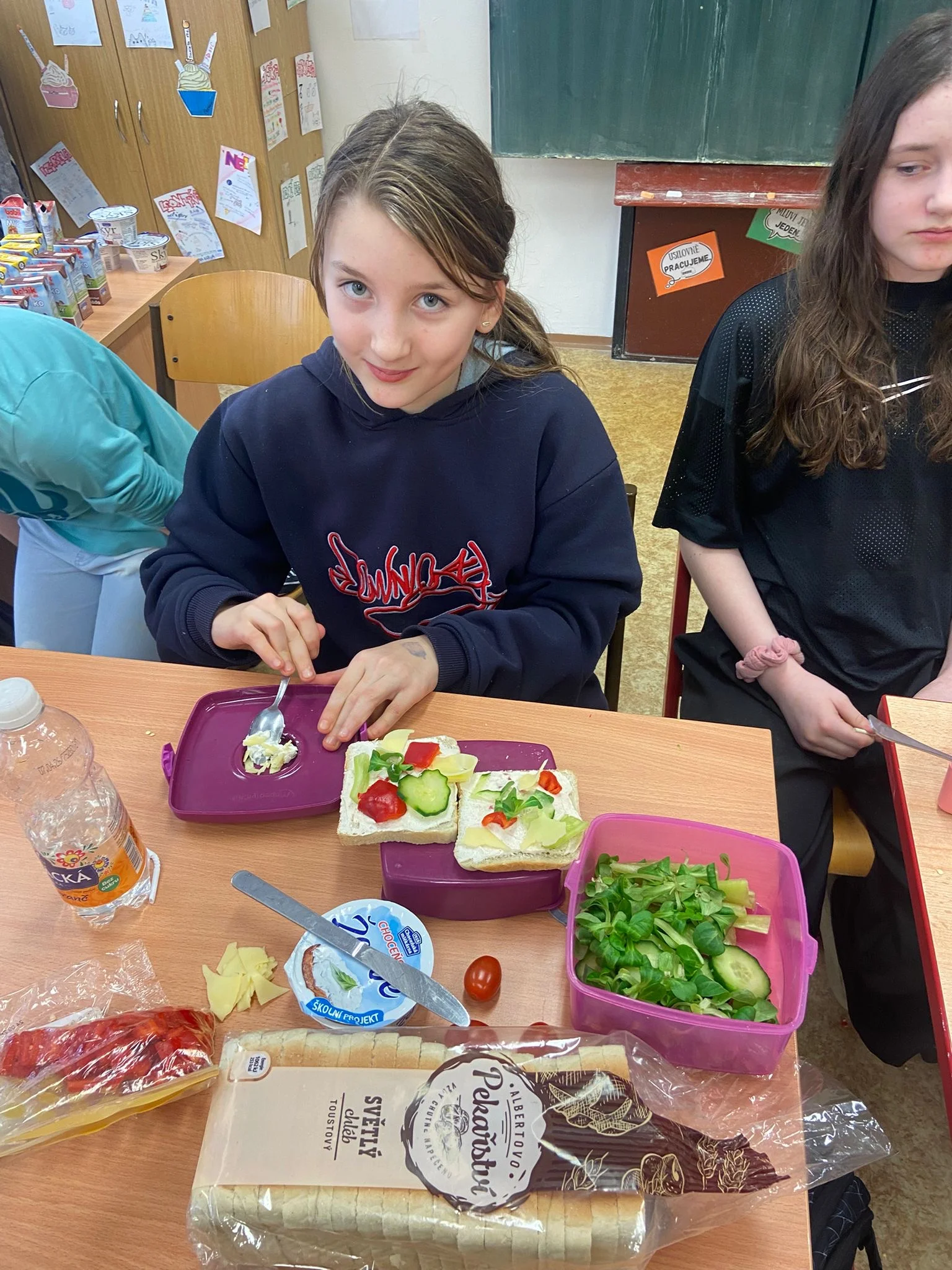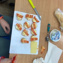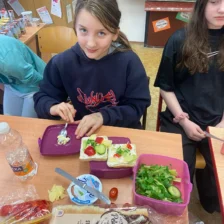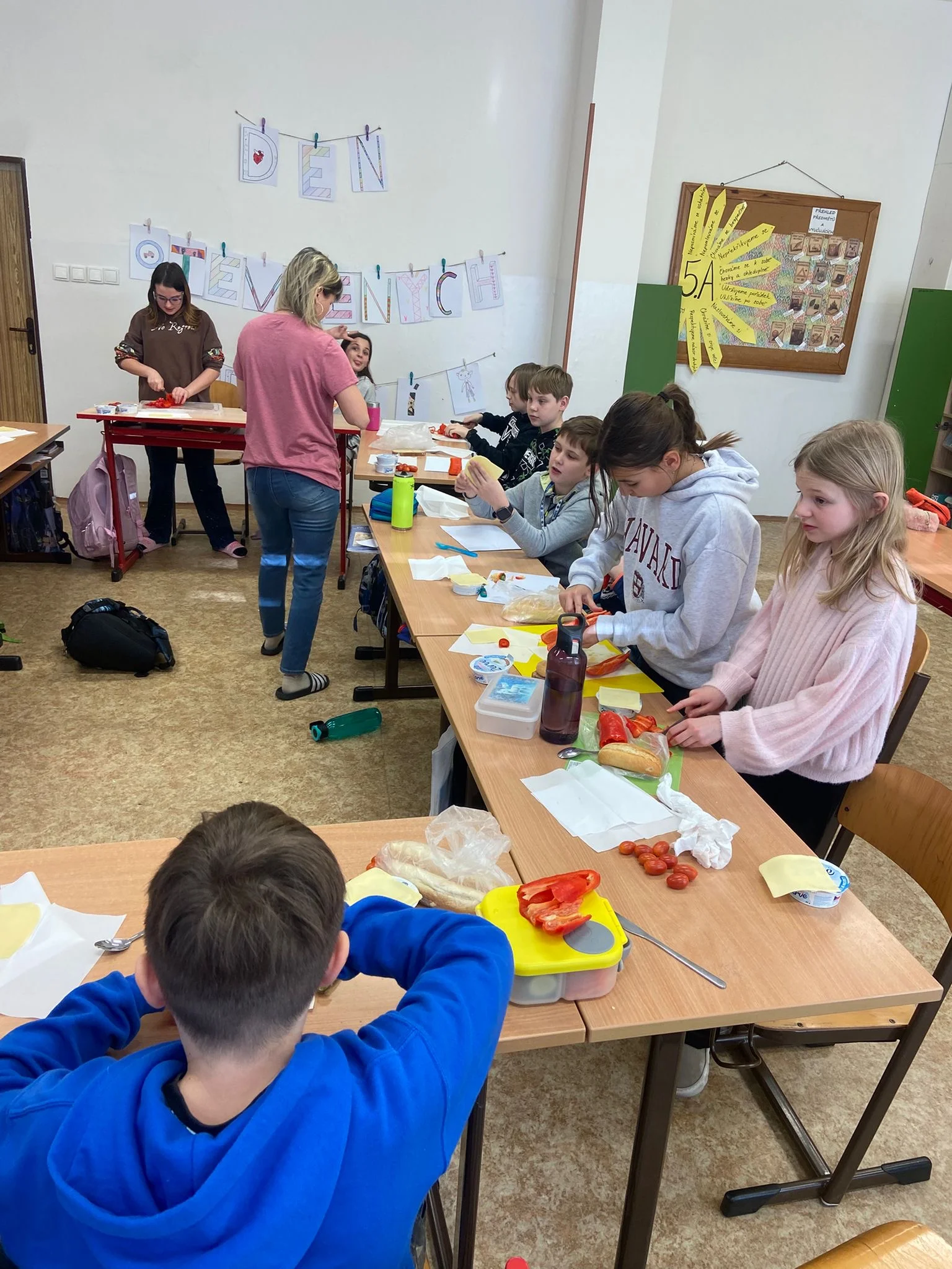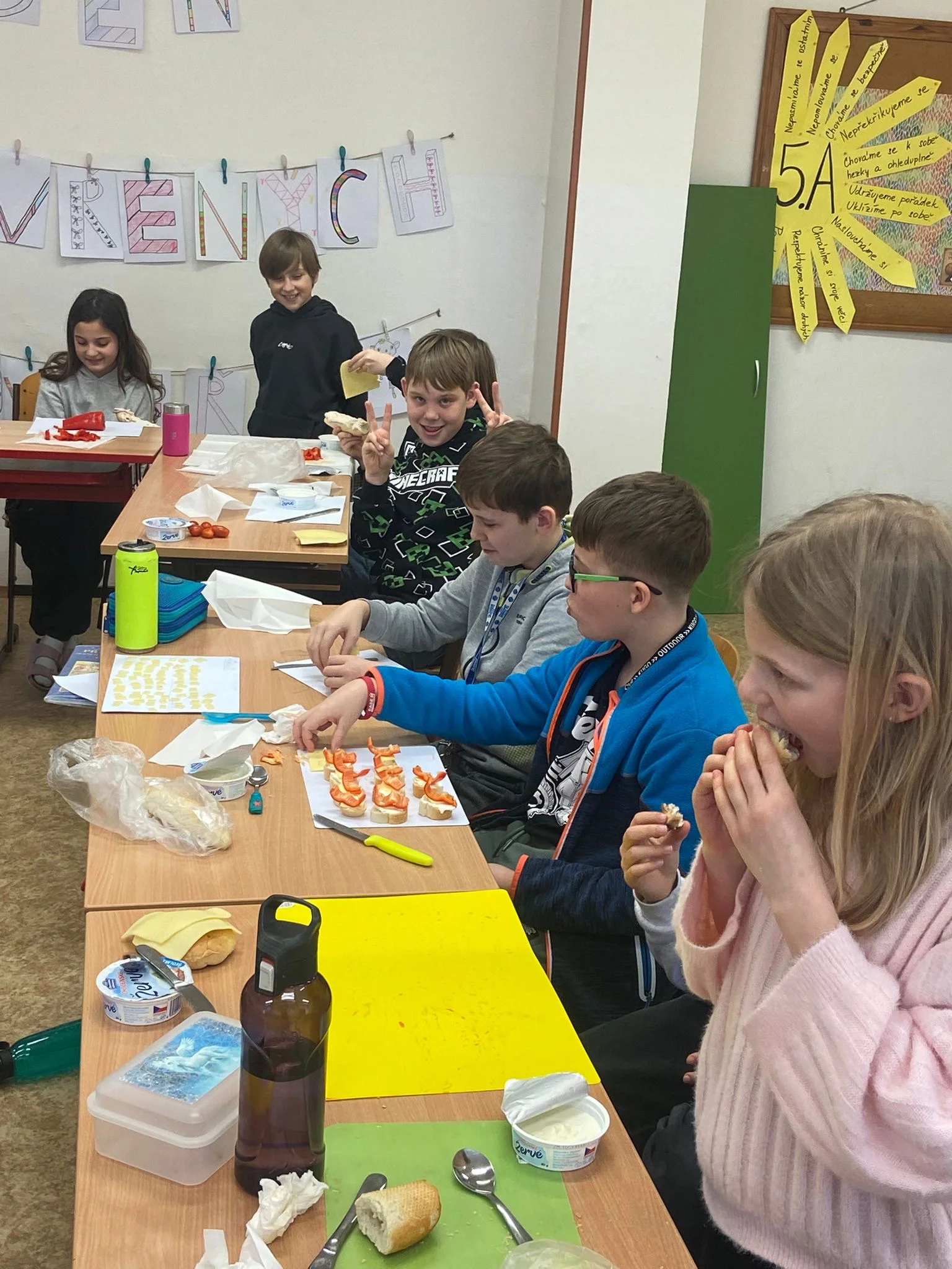 Dne 20. 1. 2026 si 5. A vychutnala mléčné produkty. Umíchali jsme si budapešťskou pomazánku, vytvořili jednohubky a saláty, vypili ochucená mlíčka. Všem moc chutnalo!