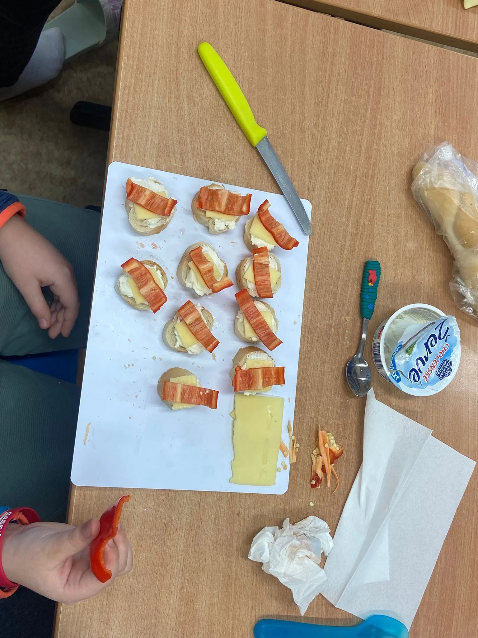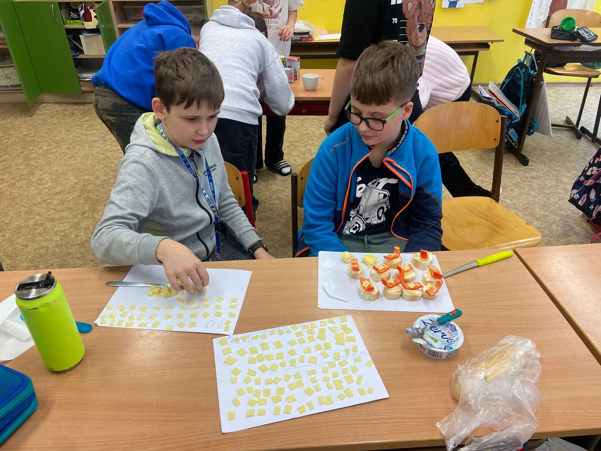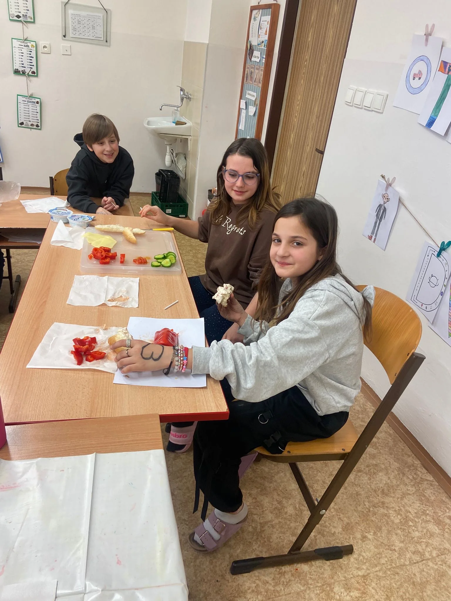 Dne 20. 1. 2026 si 5. A vychutnala mléčné produkty. Umíchali jsme si budapešťskou pomazánku, vytvořili jednohubky a saláty, vypili ochucená mlíčka. Všem moc chutnalo!