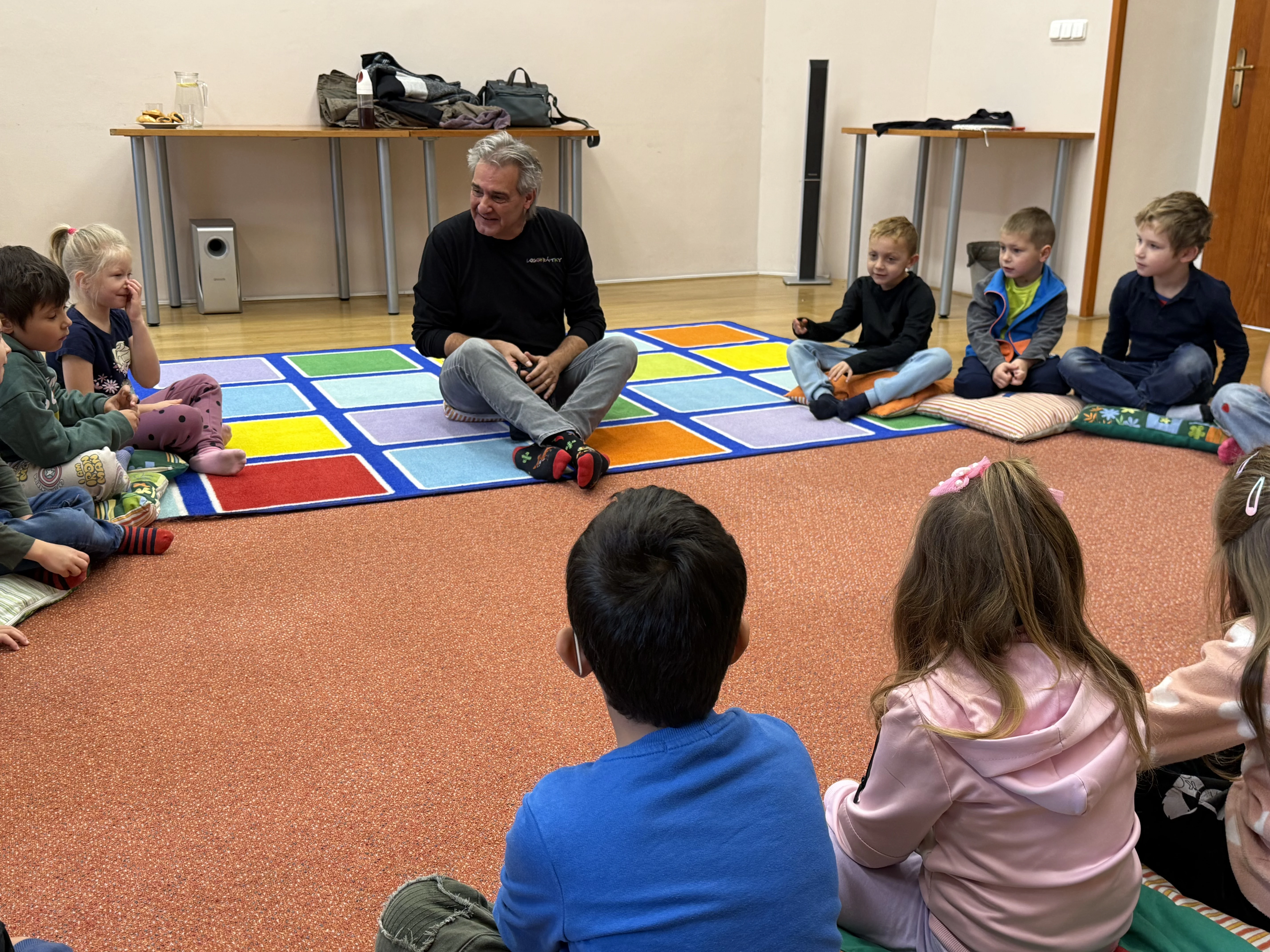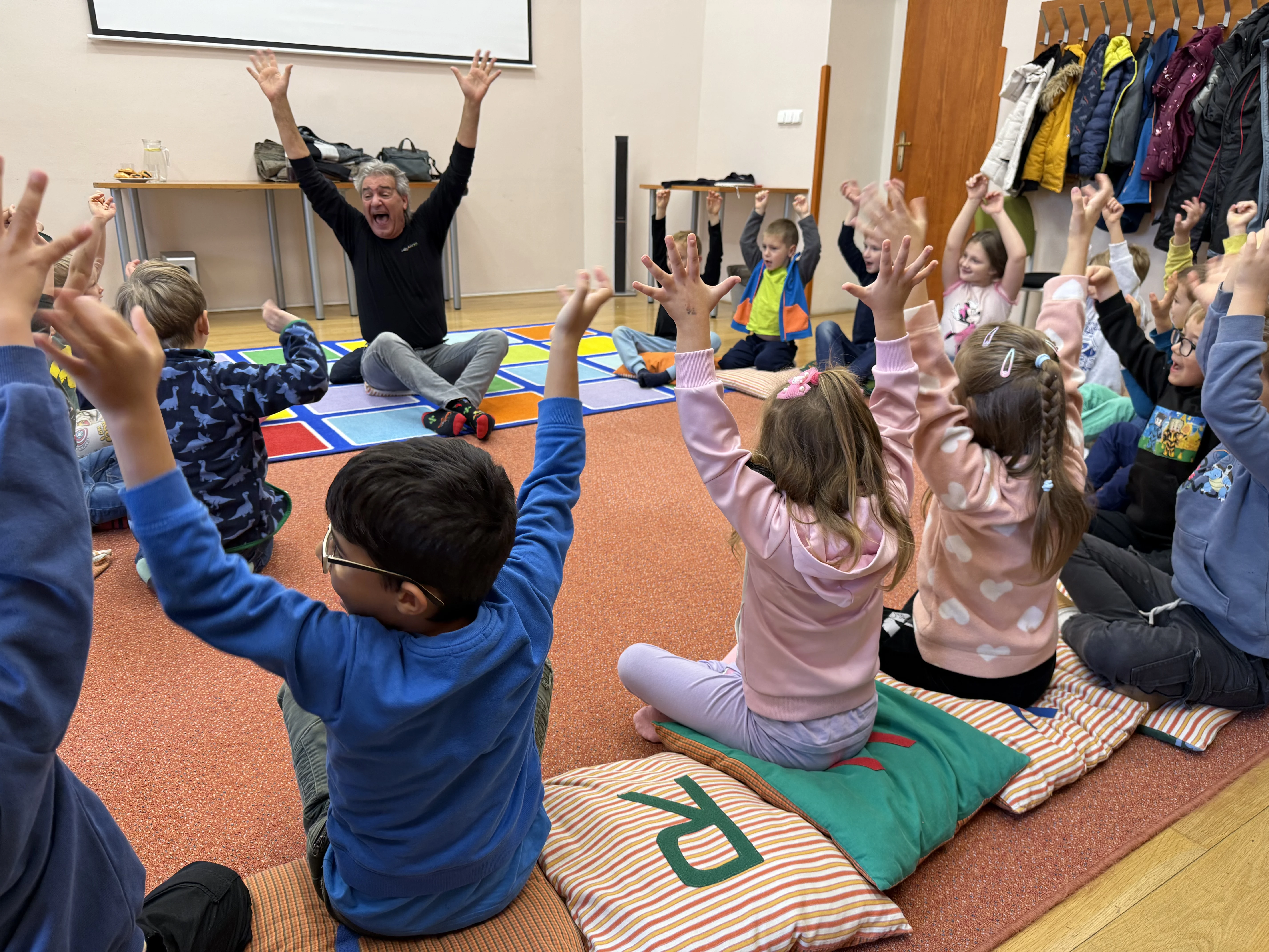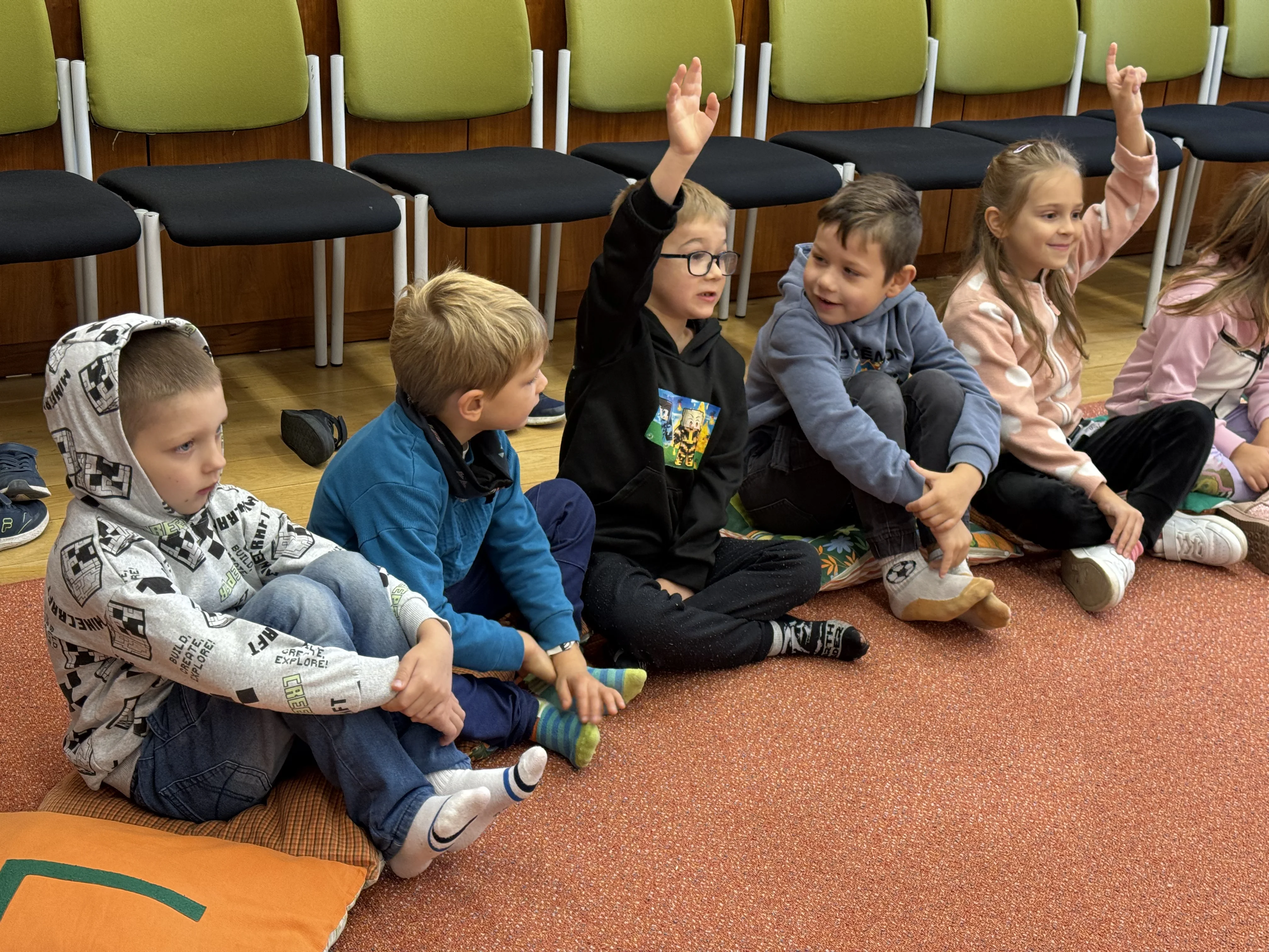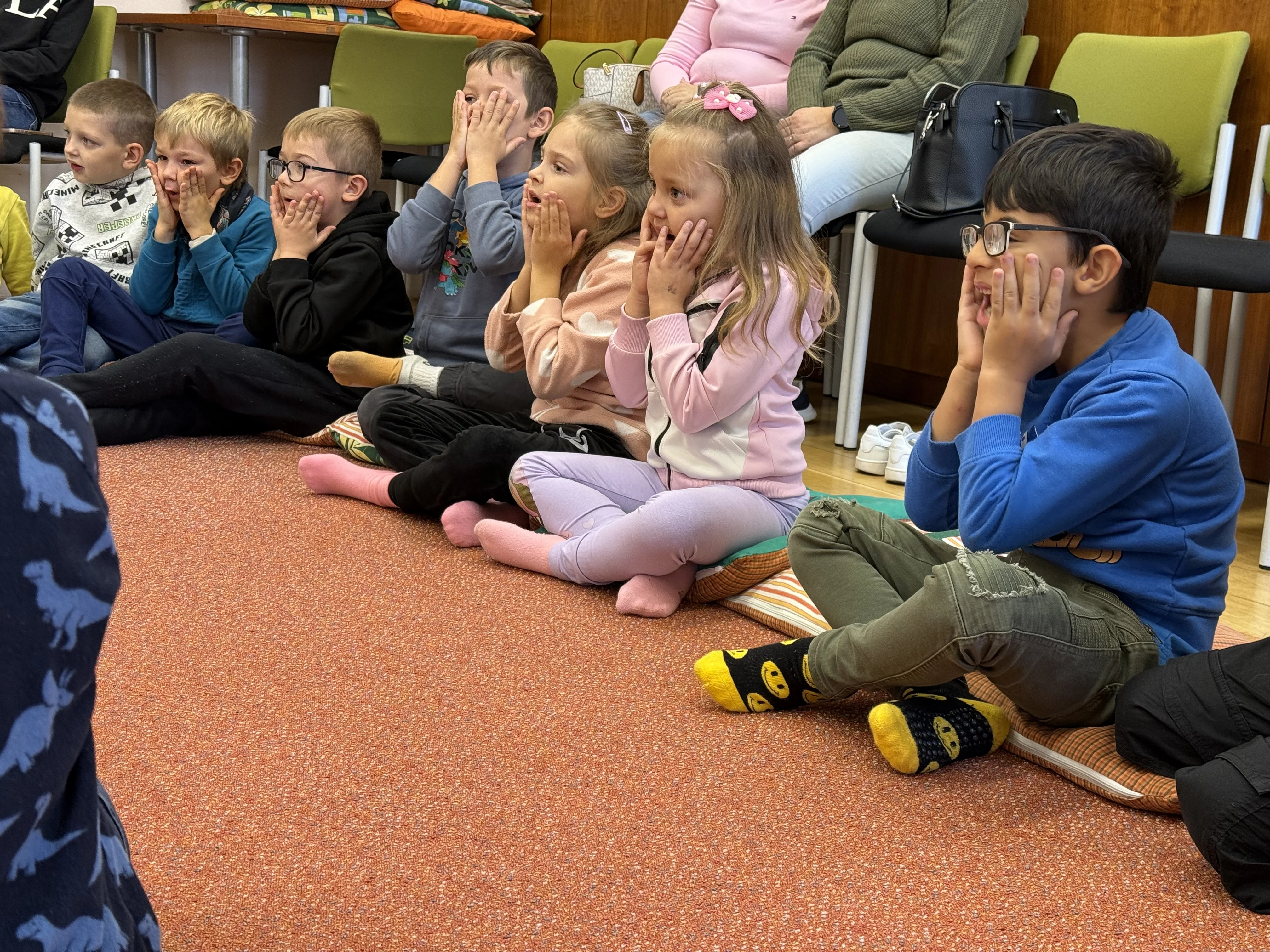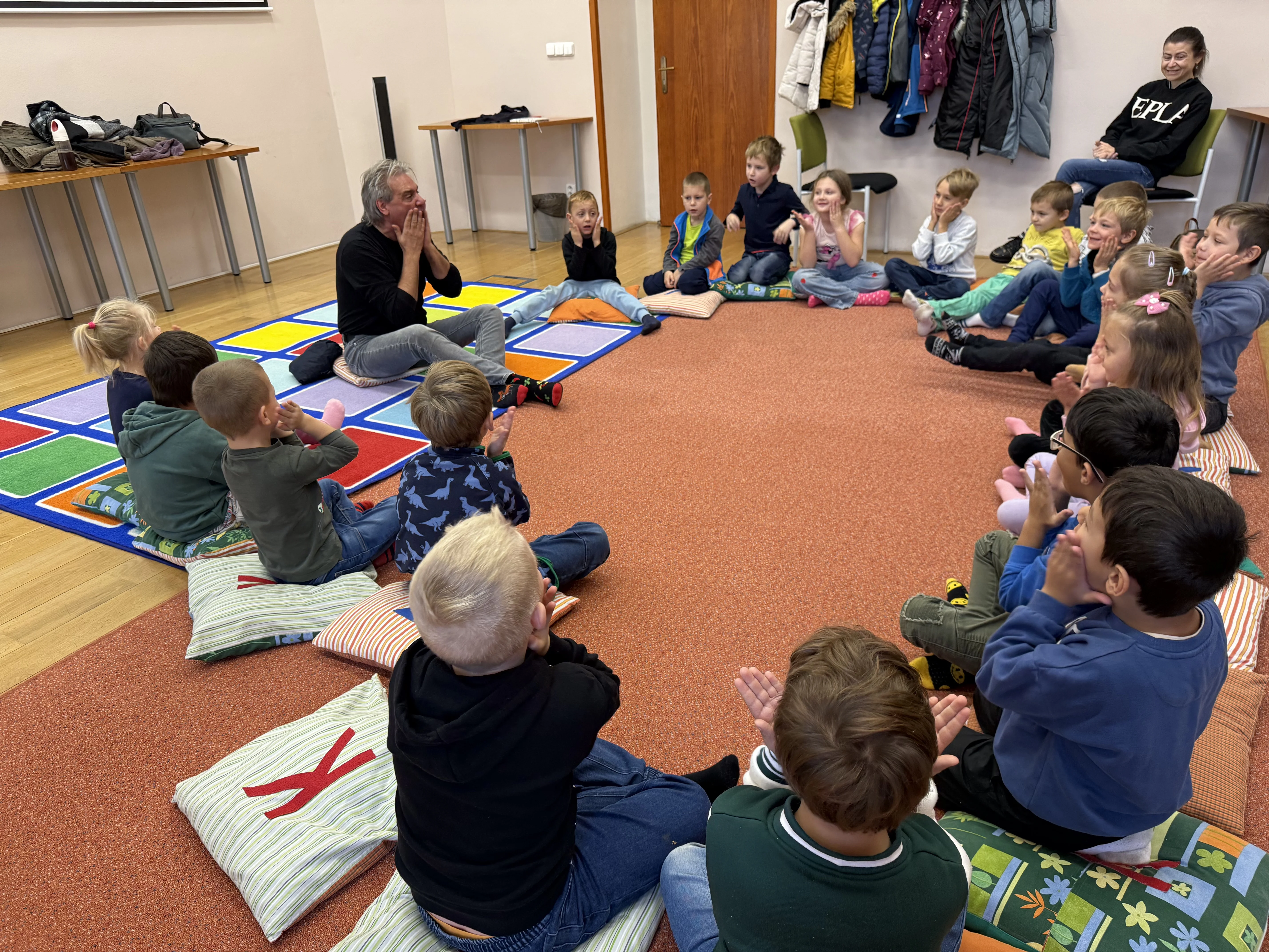 Dne 20.10.2025 jsme s dětmi navštívili městskou knihovnu v Lounech, kde proběhl zábavně-vzdělávací program „Pondělní parádičky“ se Slávkem Bourou.