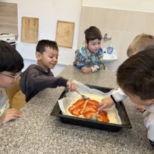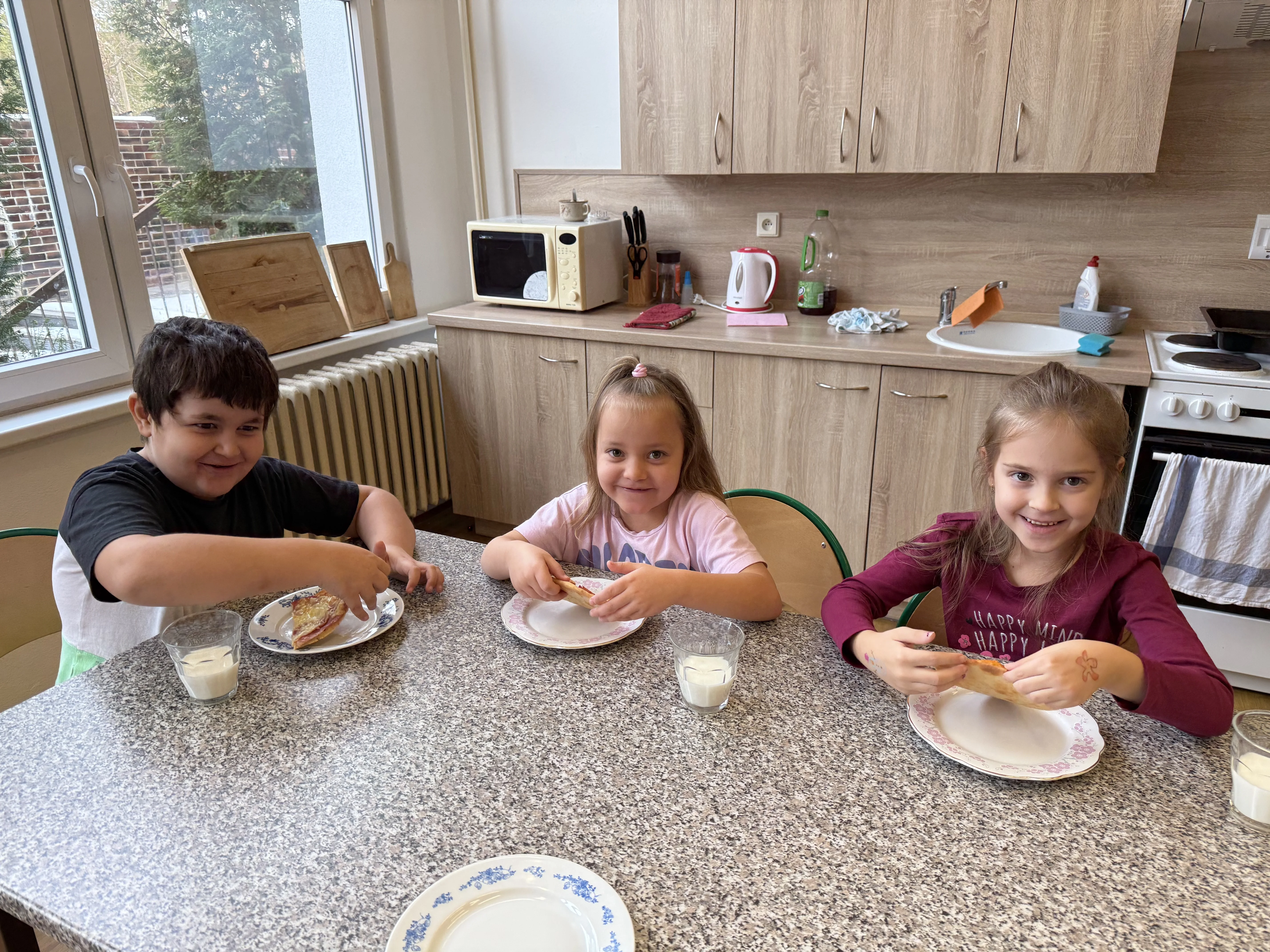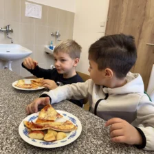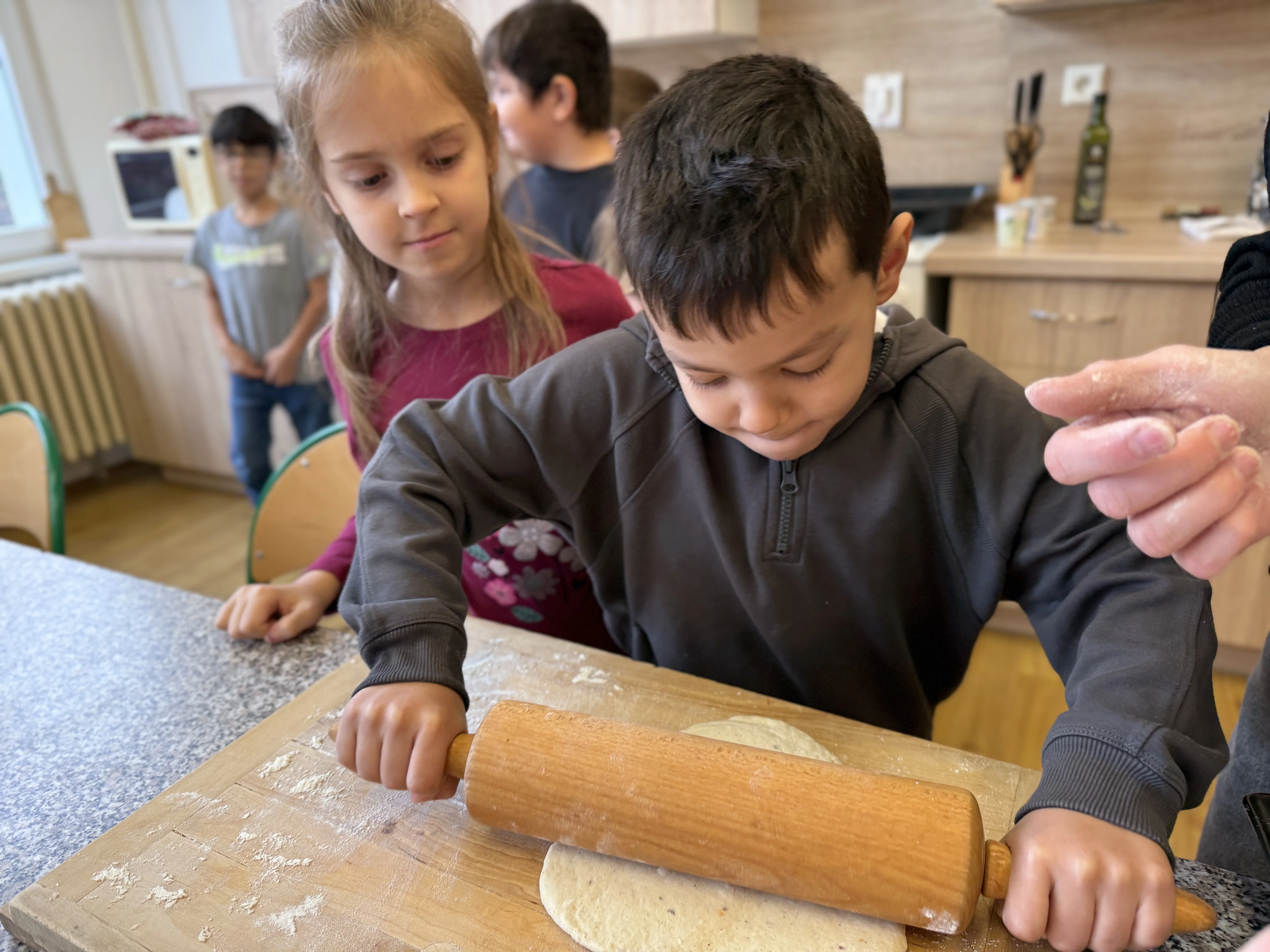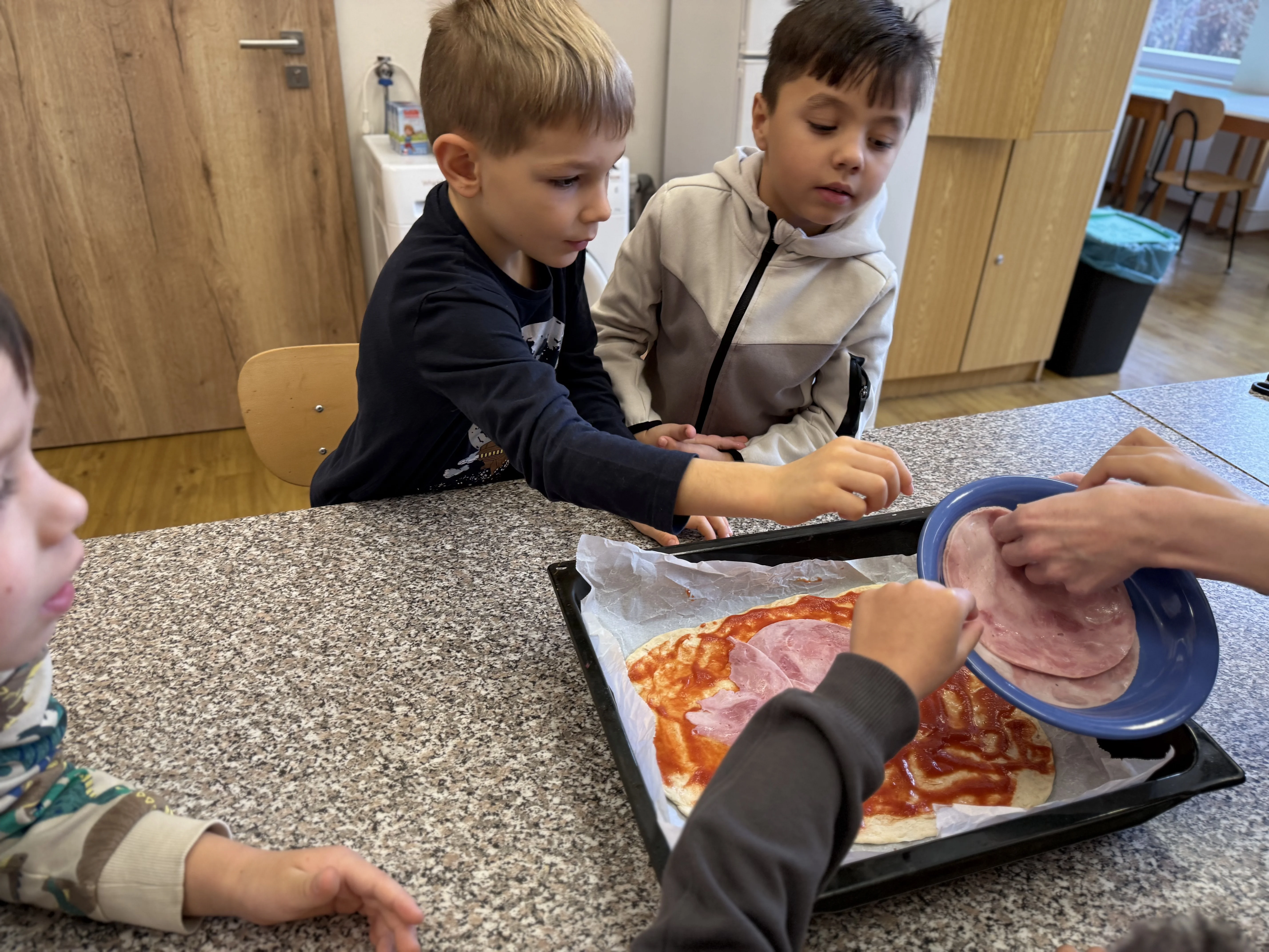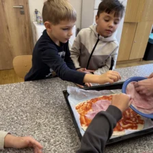 Dne 28.11.2025 si děti z přípravné třídy, v rámci programu Skutečně zdravá škola, připravily zdravou variantu mini pizzy. Podílely se na práci s těstem i na zdobení sýrem a kvalitní vysokoprocentní šunkou.