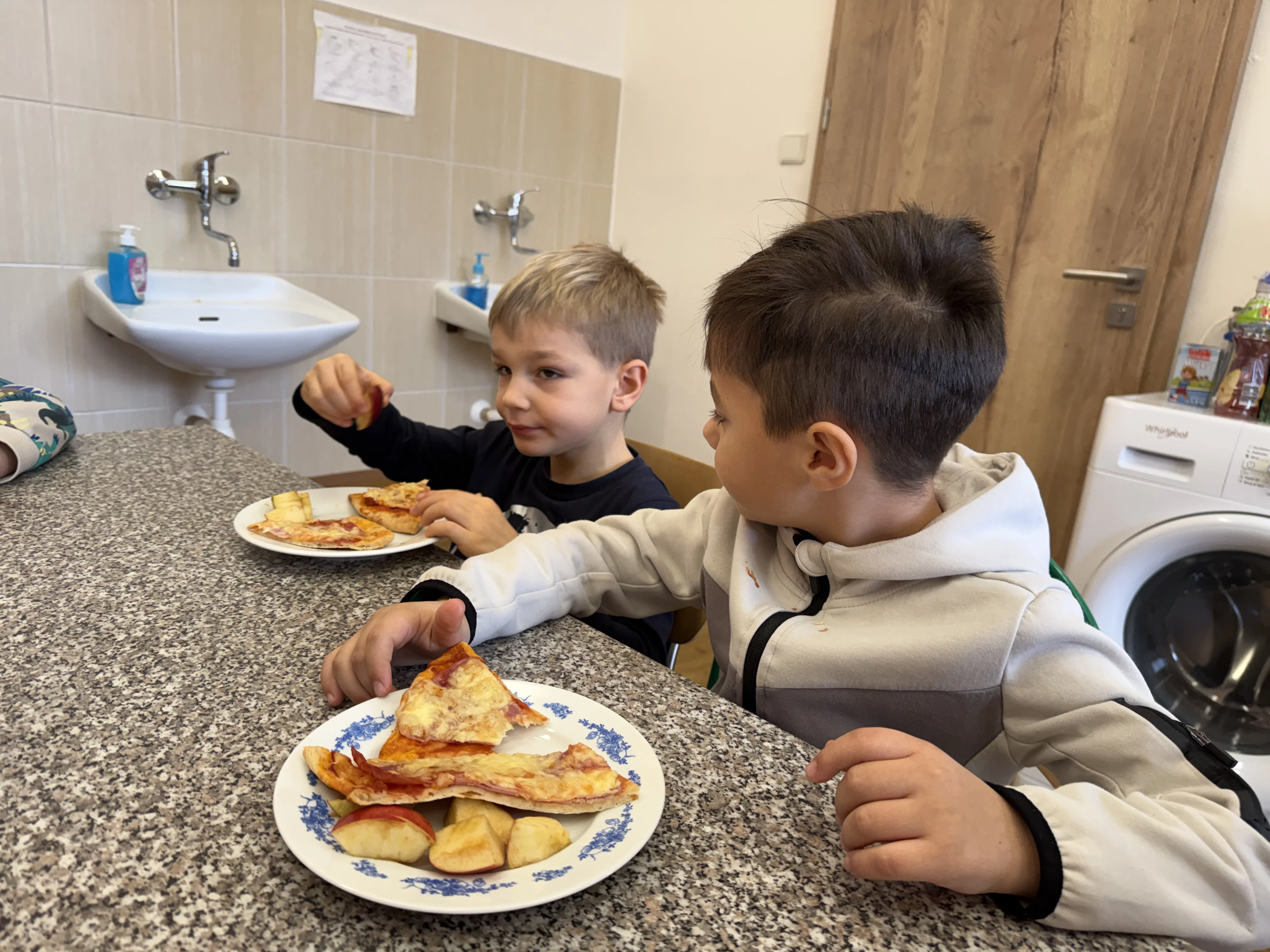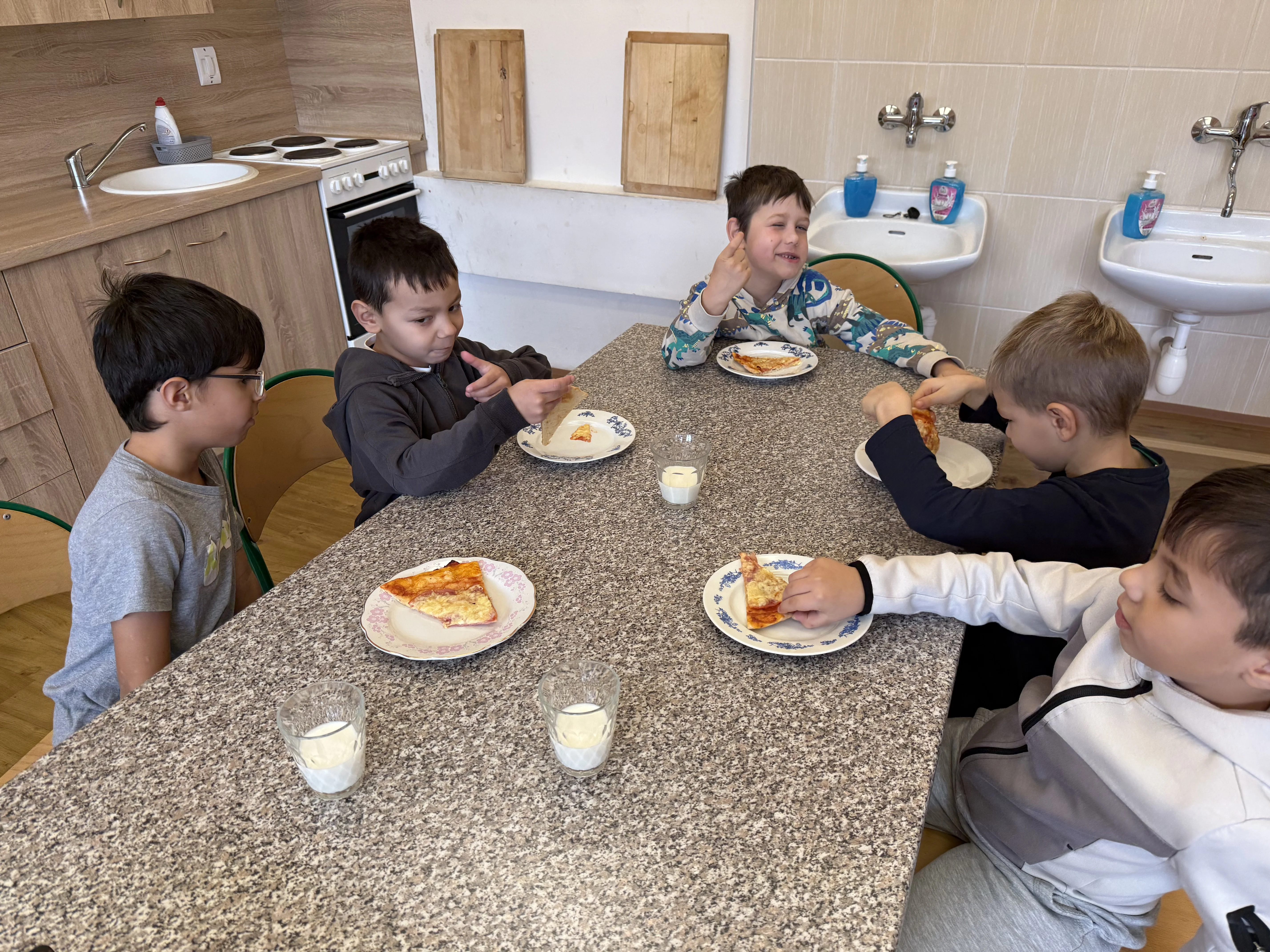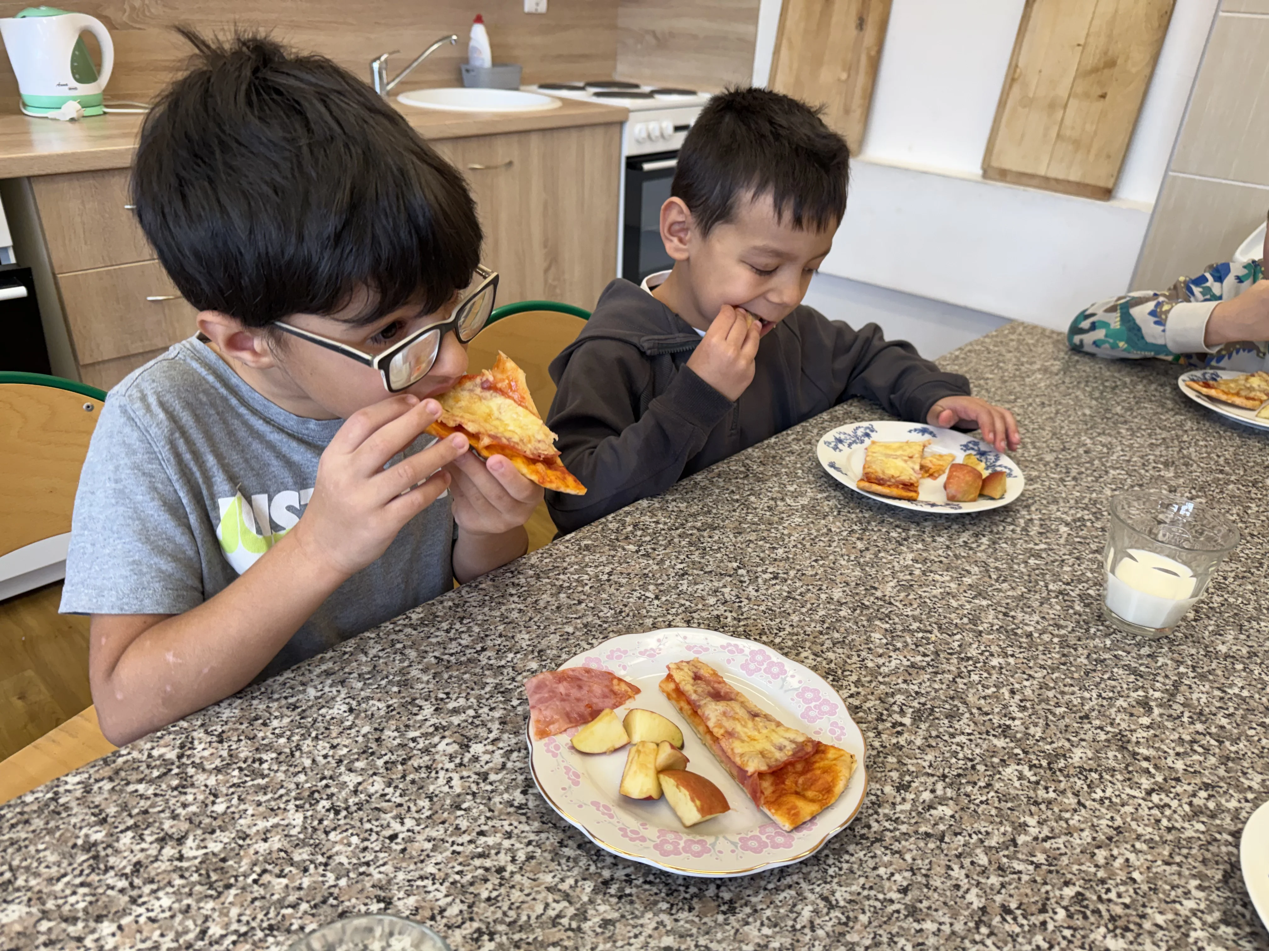 Připravené mini pizzy dětem chutnaly a společné vaření proběhlo s velkým nadšením.