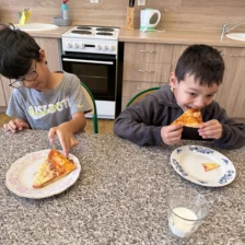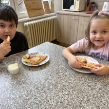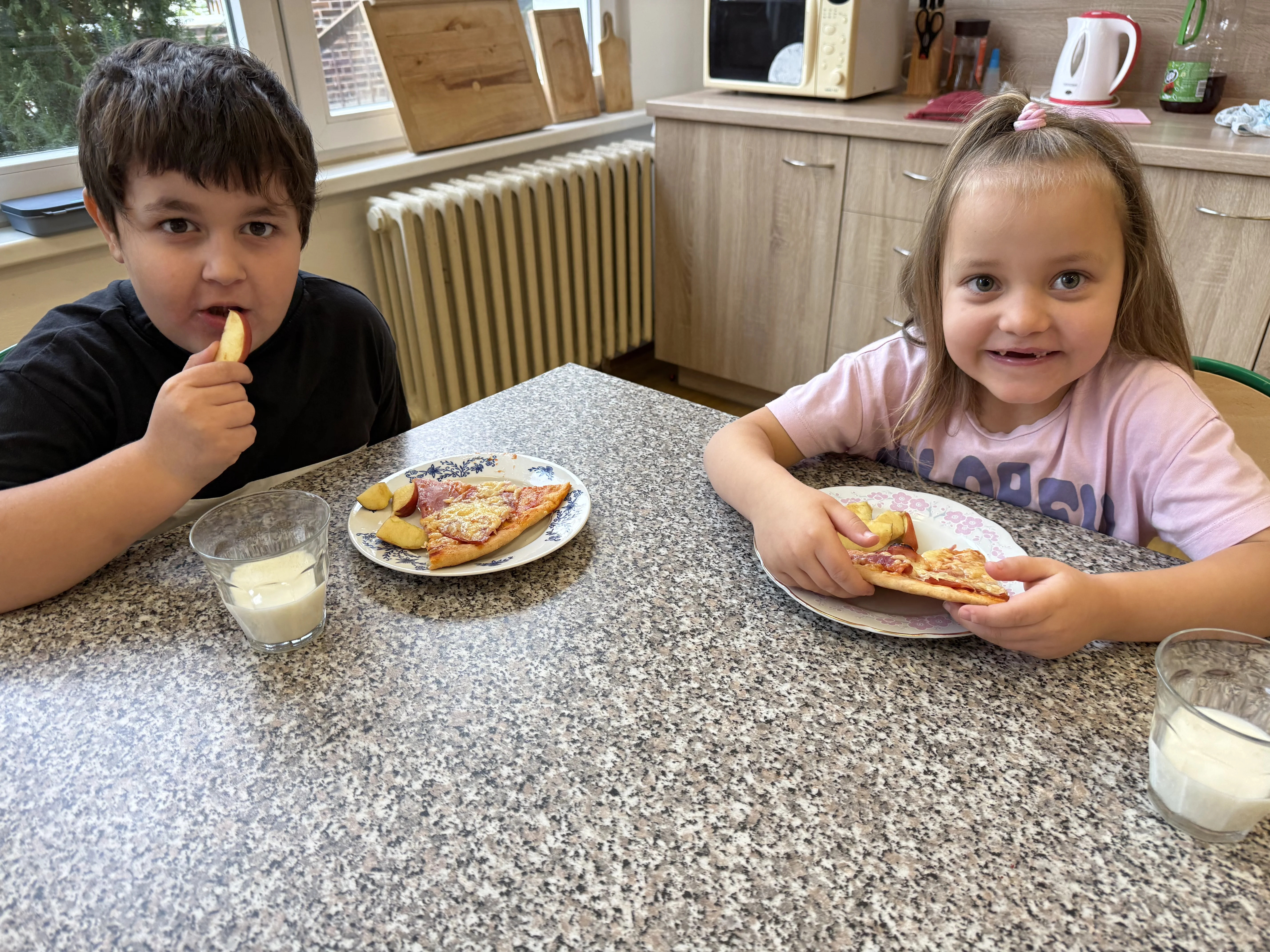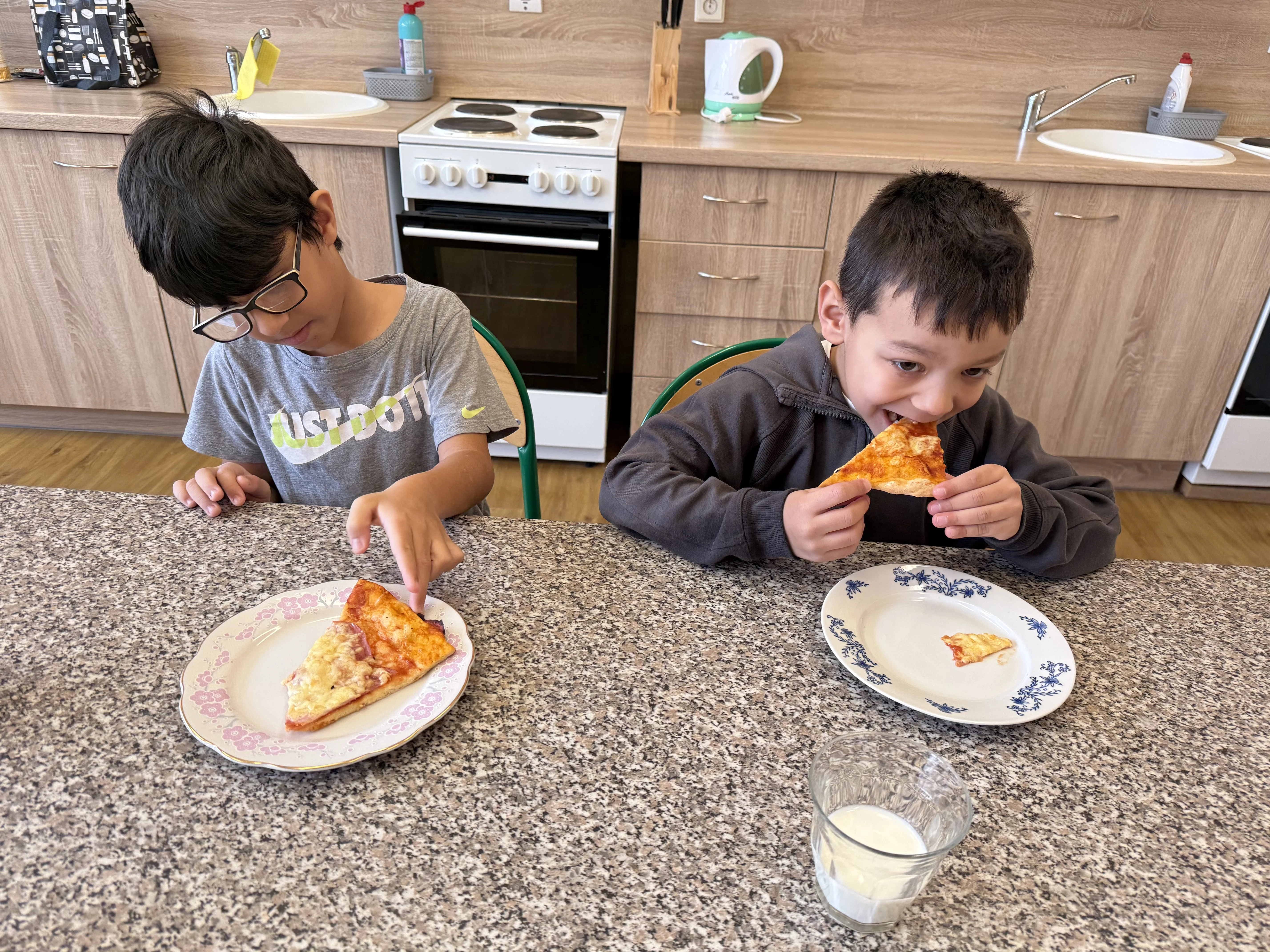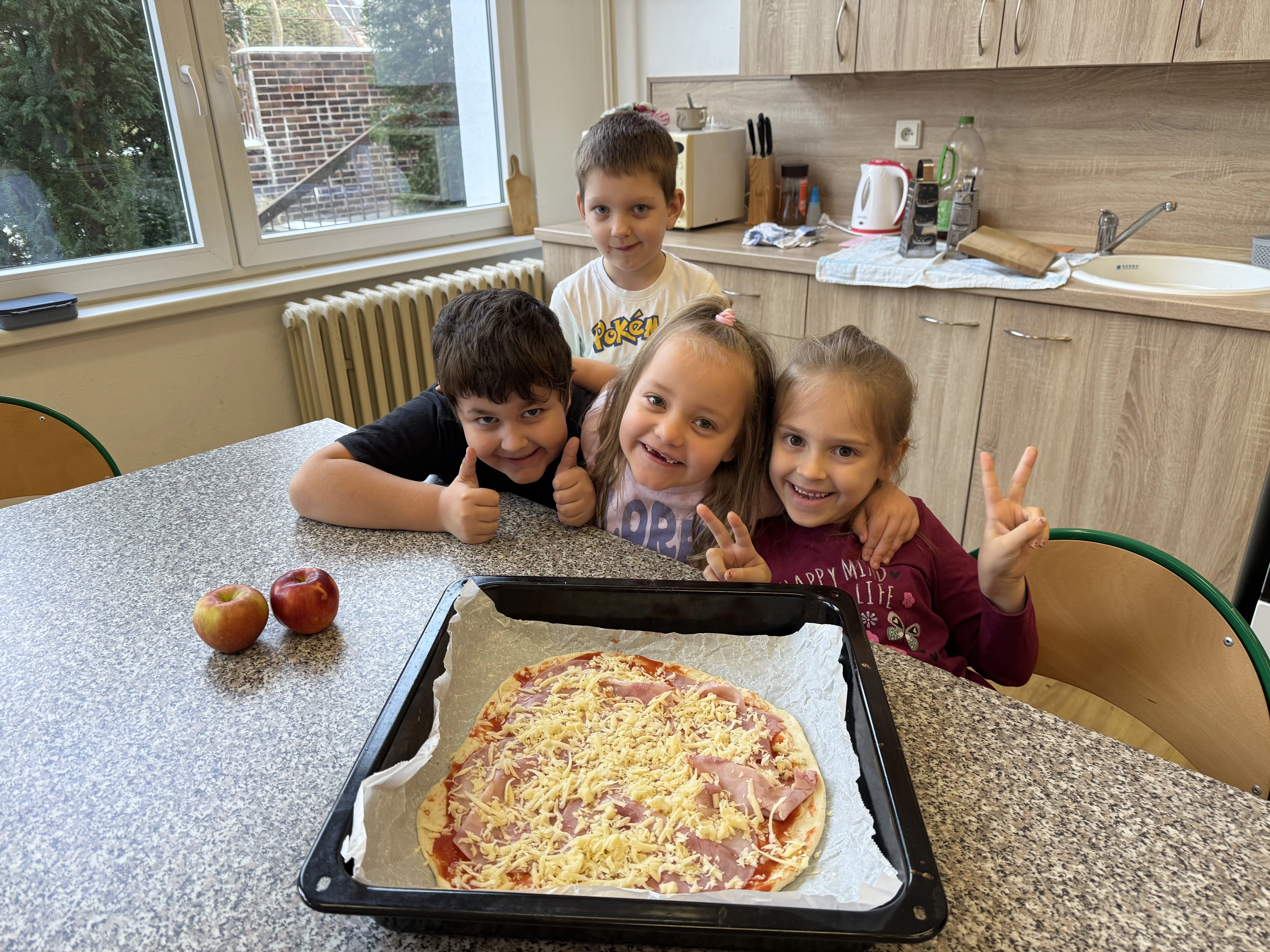 Připravené mini pizzy dětem chutnaly a společné vaření proběhlo s velkým nadšením.